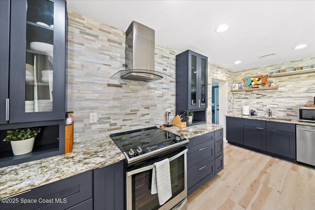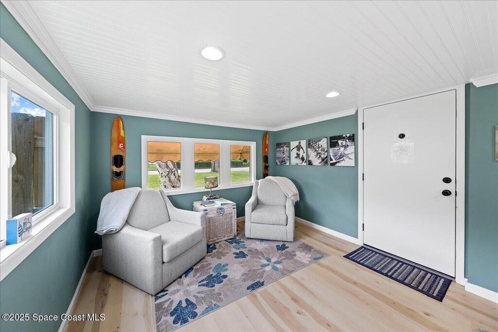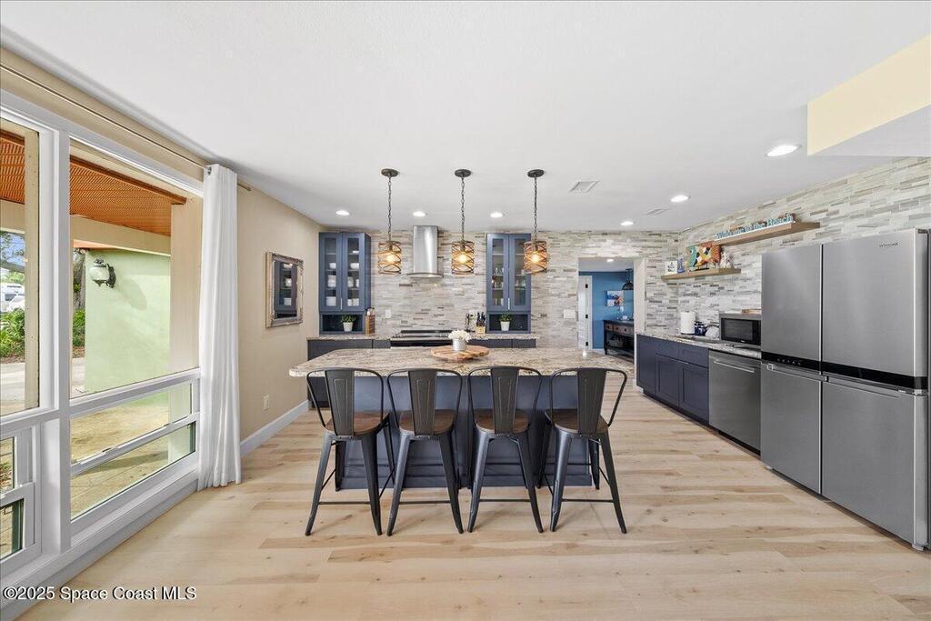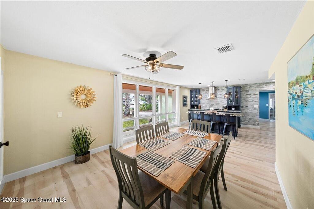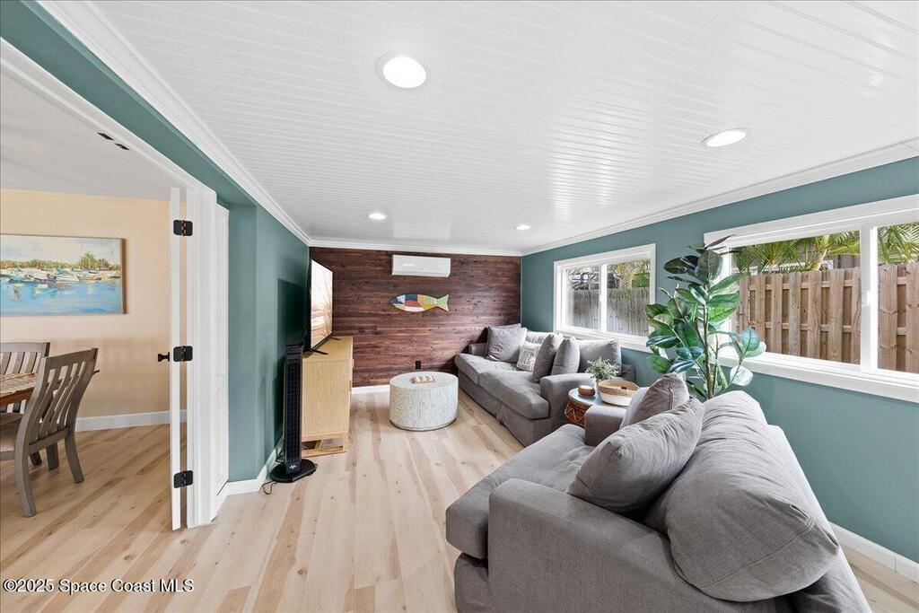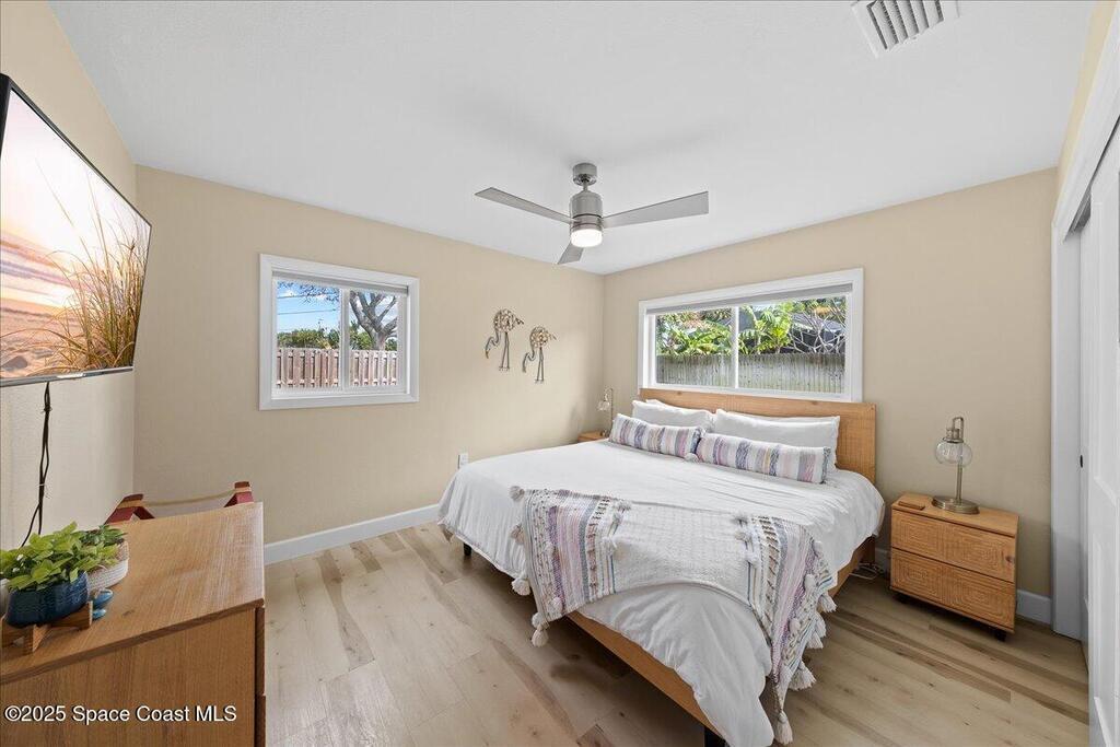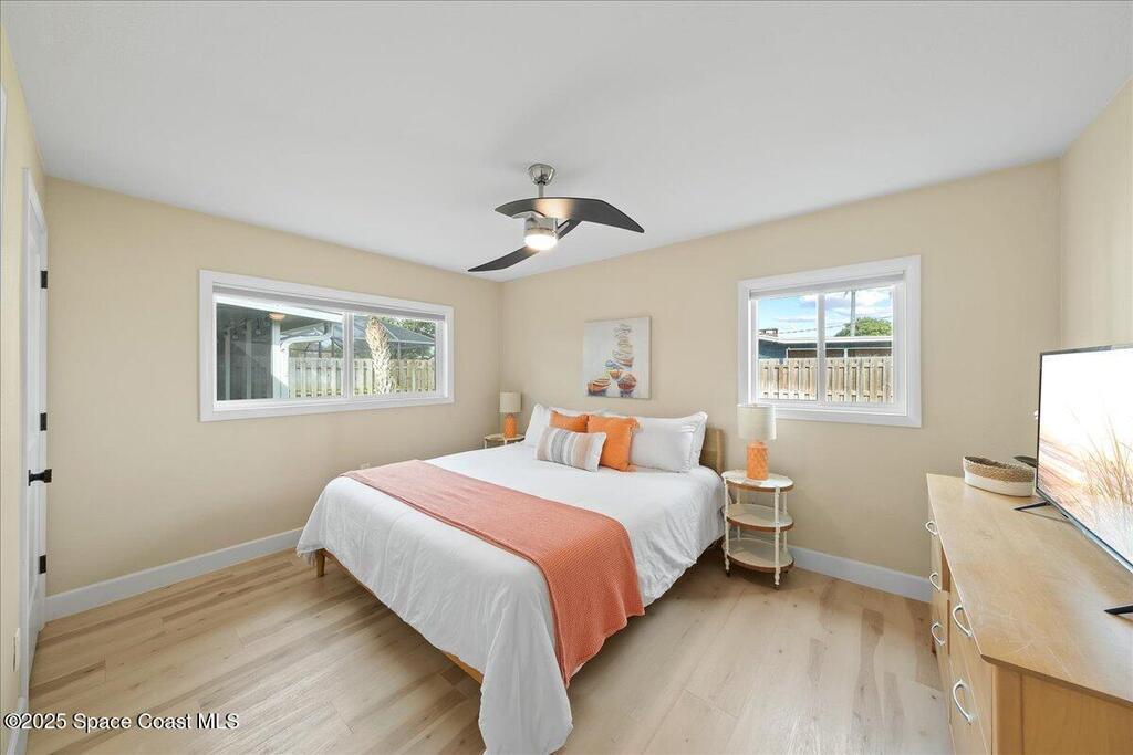 Priced to sell! This updated mid-century 3BR/2BA property offers a blend of modern upgrades and classic coastal architecture. The interior features bright, open living spaces with refreshed finishes, an updated kitchen, updated bathrooms, and a functional layout suited for both everyday living and hosting. The home is minutes from the ocean, local shops, dining, and riverfront recreation. The neighborhood provides kayak and paddleboard access to the Banana River, where wildlife such as dolphins and manatees are commonly seen, and sunsets can be enjoyed from the water. The fully fenced, expansive backyard offers significant outdoor potential with space for a pool, outdoor kitchen, and RV/boat parking. The property is competitively priced based on current market conditions, offering strong value for buyers seeking beachside living with modern updates and ample outdoor space. Double pane, low-e windows, LVP flooring, complete rewire including electrical panel 2021.