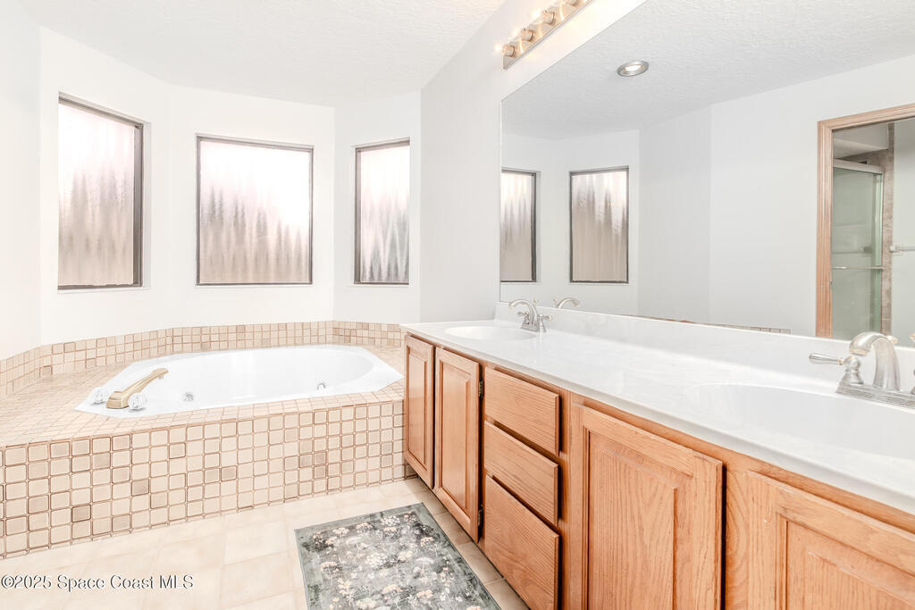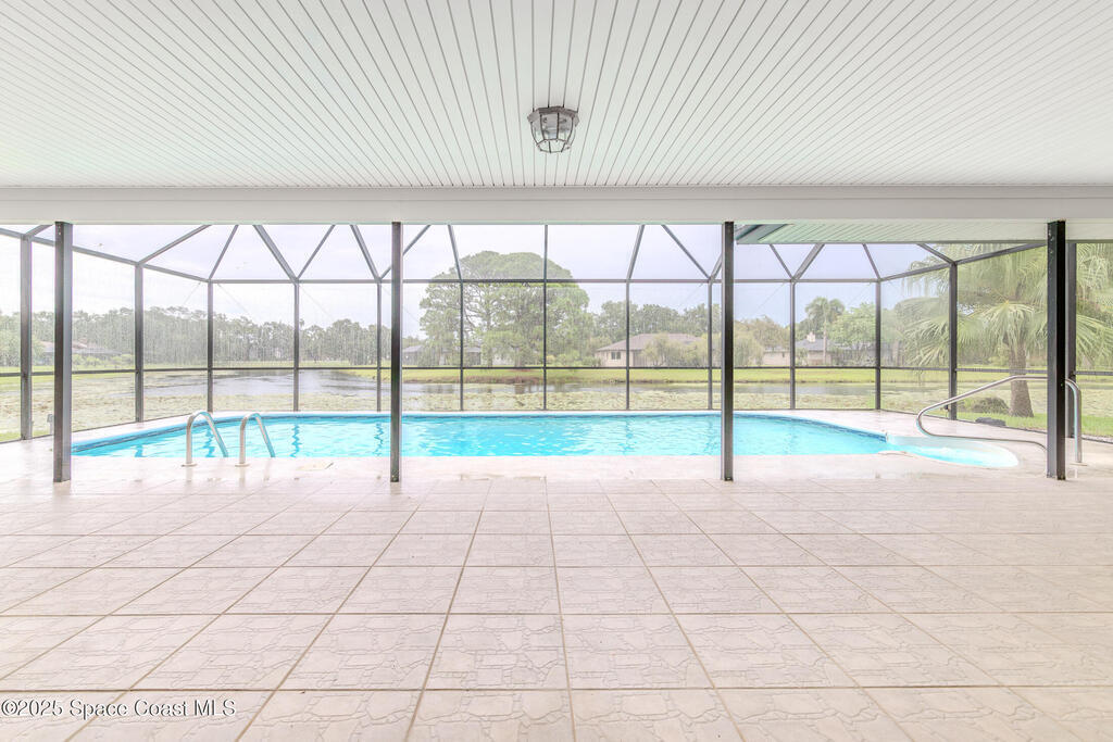 Significantly reduced price plus a $25,000 concession for updates. Located in Suntree's Crystal Lake subdivision with convenient access to amenities, this home features a 30-year roof (2016), new A/C, pool liner, open layout, screened pool and lake view, plus an oak tree out front. The upstairs master suite has a walk-in closet, double sinks, jacuzzi tub, and private water closet. Two upstairs bedrooms are separated from the master; a fourth bedroom downstairs can serve as an office or den. Ideal for both entertaining and family relaxation.