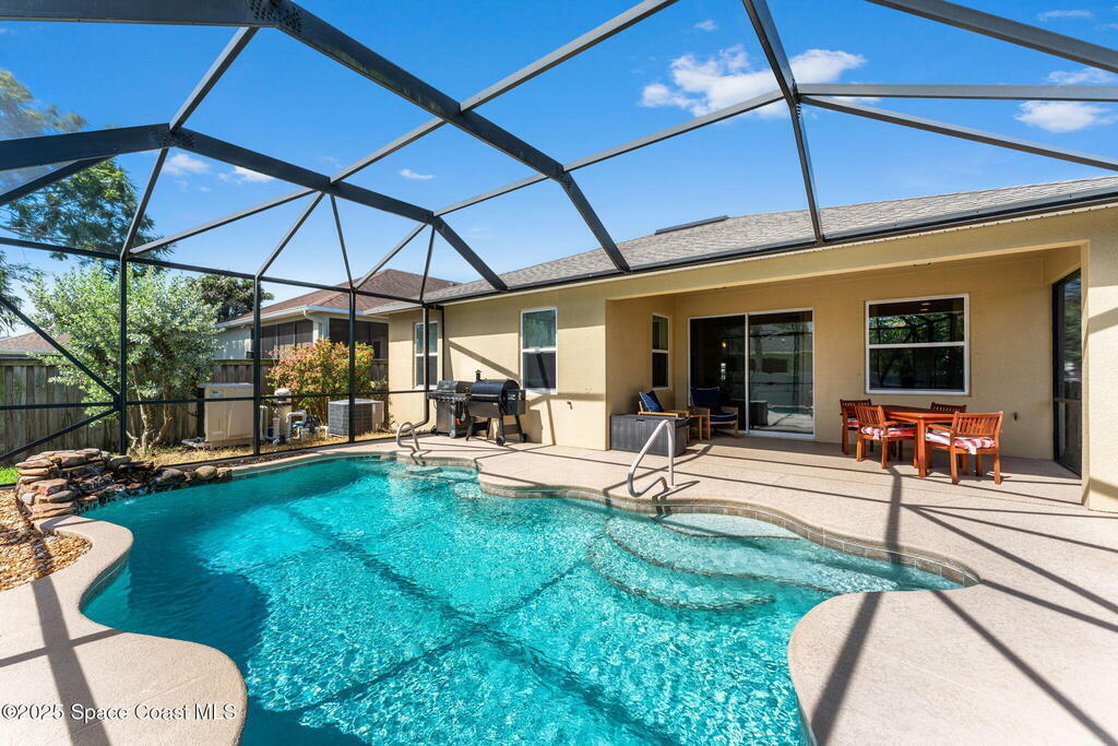Set in the sought-after Pineda Ridge community, this 3-bedroom, 2-bath home delivers 1,869 sq ft of style & comfort behind secure gated entry. The interior feels bright & open with vaulted ceilings, thoughtful built-ins, and an island kitchen that invites easy gathering. The primary suite boasts a walk in closet and an en-suite complete with a dual sink vanity & full tiled walk-in shower, while the split layout gives guests privacy of their own. Step outside to your private retreat, where a screened lanai frames the electric heated pool--perfect for year-round swimming and Florida sunsets. With abundant natural light, and a seamless indoor-outdoor flow, every detail enhances daily living. Best of all, the home's central position places you minutes from beaches, shopping, dining, and major roadways--making it a rare blend of comfort, convenience & lifestyle.