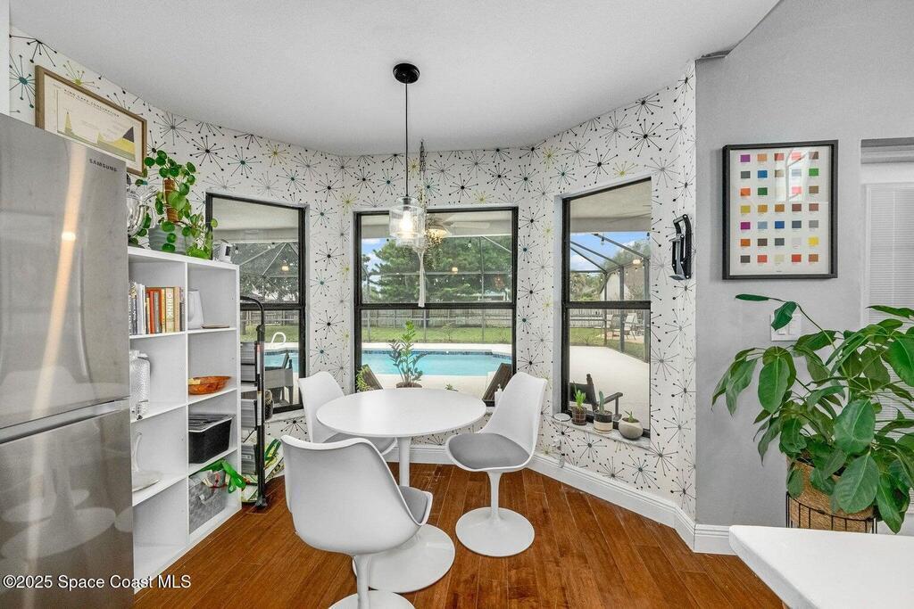**INCENTIVES AVAILABLE** Adventure awaits at this two-story oasis, perfect for outdoor enthusiasts and their gear. Nestled on an oversized lot, it boasts a fenced yard, RV carport with electrical hookup, and ample space for all your toys. Dive into the screened-in saltwater pool or gather around the fire pit under the stars. Inside, pleasantly updated, natural light pours through tall windows into the expansive living area, reaching up to sky-high ceilings, and blending effortlessly with a kitchen designed for social gatherings around a spacious eat-in bar. The master suite on the ground floor offers serene comfort, while upstairs, two additional bedrooms and a loft with a closet provide ample space for a growing family or guests. This home is a haven for those who love the great outdoors, offering the perfect blend of adventure and home comfort.