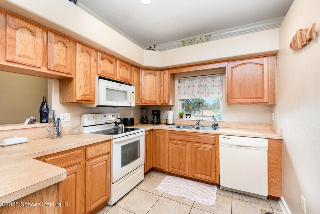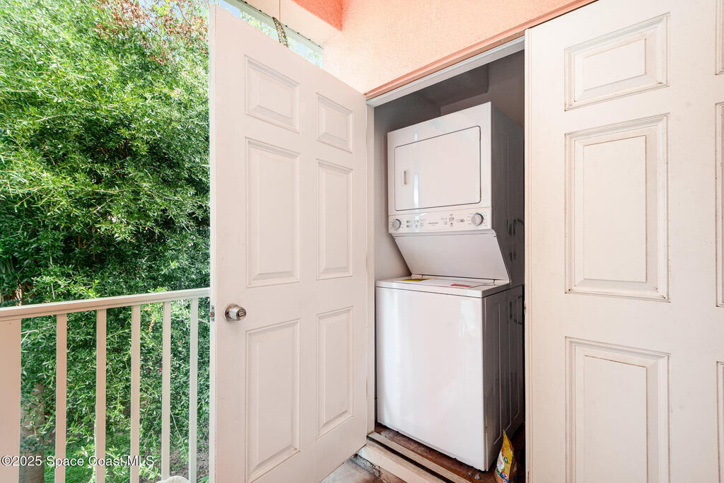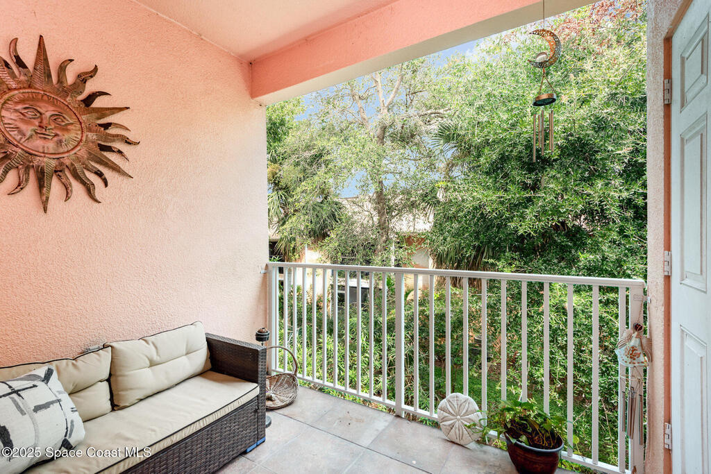 WOW! UNDER $200K for this amazing 3 bedrooms, 2 bathroom with a private garage located in the SPACE COAST. High ceilings and crown molding throughout the home adds a unique character. Open floor plan is perfect for entertaining several guests. The kitchen is large with plenty of room to add an island. Flows into the dedicated dining area that holds a large table, chairs & buffet. Living area has plenty of room for that huge sectional and portable fireplace or entertainment center. Opens to the private tropical balcony. The master bath en-suite has a jetted tub, separate shower, double sinks and plenty of storage including a walk-in closet. New water heater 2024. Sparkling community pool & tropical grounds located on a dead-end street with low traffic. Location is close to: shopping, medical, Kennedy Space Center, Space X & Blue Origin, Port Canaveral cruises, parks, rivers, and beaches. SEA BREEZES & ROCKET LAUNCHES AWAIT! Ask about rental potential!
