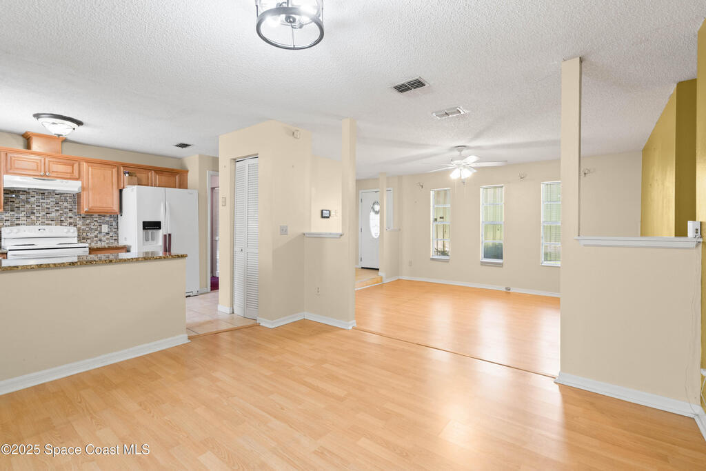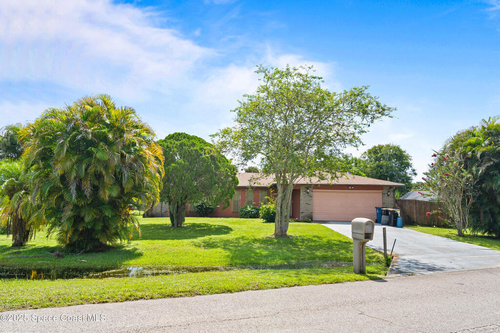 Welcome to your charming 3-bedroom, 2-bathroom home in the heart of SE Palm Bay. This delightful property is situated on a spacious .3-acre corner lot, offering plenty of room for outdoor activities, gardening, or simply relaxing in your private backyard oasis. Step inside and be greeted by a warm and inviting living space, perfect for entertaining guests or enjoying a quiet evening in. The open floor plan seamlessly connects the living room to the dining area and kitchen, creating a fluid and functional layout. The three generously sized bedrooms provide comfortable retreats for everyone in the family. The master suite is a true sanctuary, complete with an en-suite bathroom. The two additional bedrooms are bright, airy. This home offers the convenience of city water and sewer, ensuring a hassle-free living experience. The large, fenced-in backyard provides a safe and private space for children and pets to play. Don't miss the opportunity to make this beautiful property yours!
