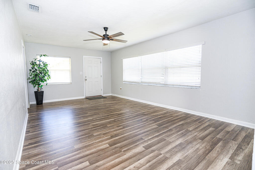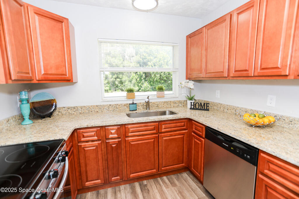 Great location & charm for this 3-bedrm home, w/lots of updates.Nested on a oversized .38 acre in a quiet cul de sac in the heart of Melbourne is perfect as a starter home or winter escapes.This concrete block home features newer Roof in 2020, & HVAC in 2022, new soffits 2025. All New plank flooring in kitchen, living & dining areas. Ceramic tile in bedrooms.No carpet. Tastefully remodeled kitchen w/Brand New stylish Wood cabinets,Granite tops & S.S. appliances. Enjoy a bright layout w/a spacious living area,& comfortable bedrooms. Freshly painted Interior w/soft colors. Outside laundry/utility room.Long driveway perfect for off street parking & all your toys.The serene backyard offers plenty of room ideal for relaxing, gardening or pets to play. Unbeatable location just minutes from shopping, fine restaurants, schools, parks, Patrick Space Force, & a quick drive to beautiful beaches.Easy access to major roadways & airports.This home offers the perfect blend of comfort & convenience.