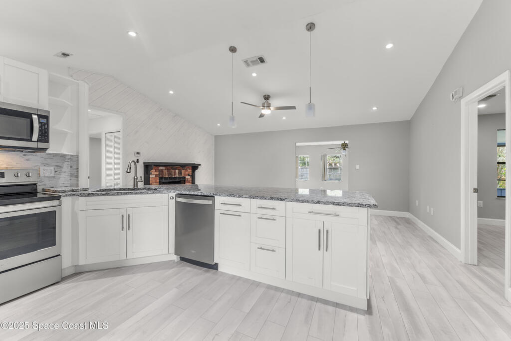 ******BACK ON THE MARKET DUE TO FINANCING FALLLING THROUGH********NEW ROOF INSTALLED!!!!! READY TO GO- don't miss your second chance!!This newly renovated 3-bedroom, 2-bath home in SE Palm Bay perfectly blends modern style with everyday convenience. Step inside to an open-concept design highlighted by luxury vinyl plank flooring and crisp, neutral finishes that make every space feel fresh and inviting. The chef-inspired kitchen showcases sleek quartz countertops, stainless steel appliances, and soft-close cabinetry, while a versatile flex room adds the perfect touch for a home office or second living space. Outside, the fully fenced backyard offers privacy and endless possibilities for entertaining or relaxing. Ideally located near shopping, dining, I-95, and just minutes from the beach, this home is truly move-in ready. NEW A/C 2025 and Roof 2018.