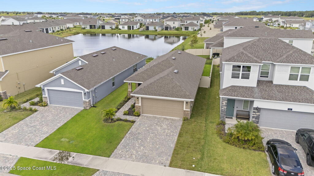 Incredible low price for this charming nearly new lakefront 3 bed 2 bath home with freshly painted interior, white shaker cabinets, spacious living area, breakfast bar and covered patio. You'll love the convenience of an interior laundry room, a walk-in closet in the primary bedroom, additional overhead lighting, and ceiling fans. Fall in love and move right in - this home comes with WASHER & DRYER, REFRIGERATOR, WINDOW BLINDS, NO CARPET, PAVER DRIVEWAY & BACKYARD FENCE. Waterstone is a beautiful gated community with lush landscaped streets and walking paths and offers great amenities too, including pool, playground, barbeque area and pickelball courts. NOTE: Some photos have virtual staging to show the space and spark your imagination!