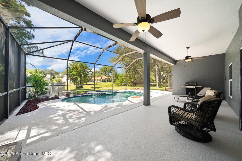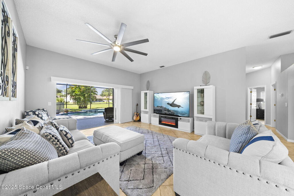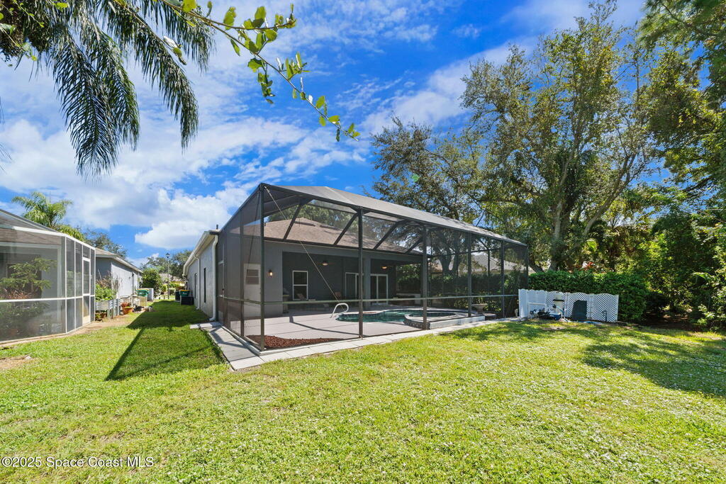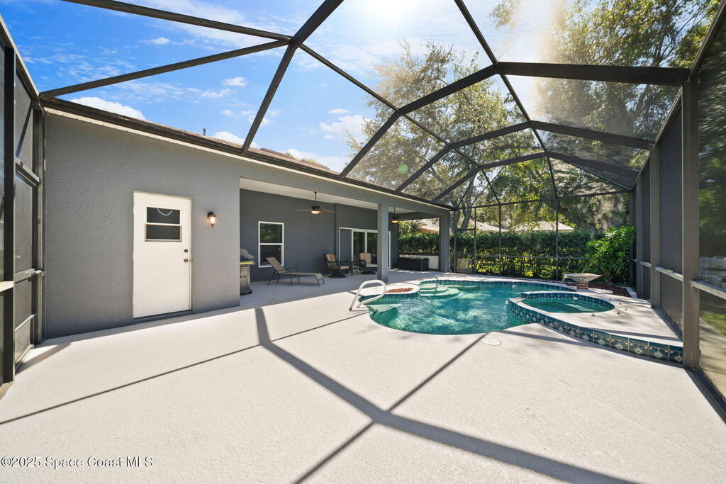 72 hr Kickout Clause. Located in the desirable Suntree Forest community, this 4-bedroom, 3-bath POOL home offers a spacious layout with modern updates throughout! Recent upgrades include brand-new 2025 impact windows and doors, 2020 roof, new 2023 AC, and a full home re-plumb in 2022. The renovated kitchen features granite countertops, ample cabinetry, and bar seating that opens to the expansive family room. The primary suite features an updated en-suite with granite countertops, walk-in glass shower, and a large walk-in closet. In addition to the primary, one bedroom has its own private bathroom, perfect for guests! Beautiful ceramic tile runs through the main living areas and new luxury vinyl floors in all bedrooms. A dining room and an additional living space provide plenty of room for entertaining and everyday living. French doors lead to the 4th bedroom, which could also be used as an office, flex room or den. Triple sliders open to the oversized screened-in lanai with a pool,