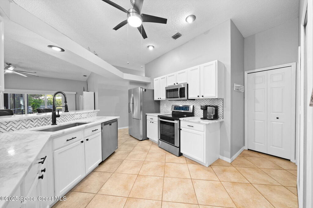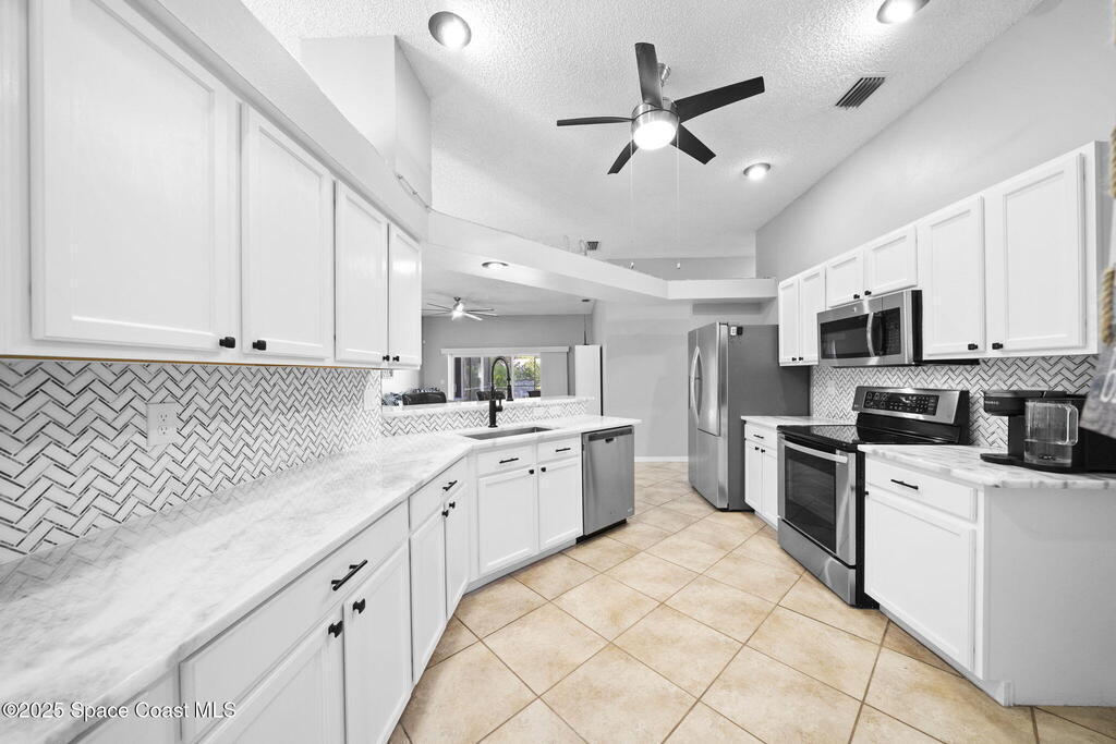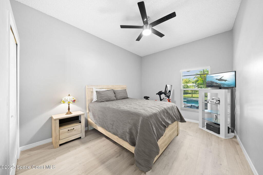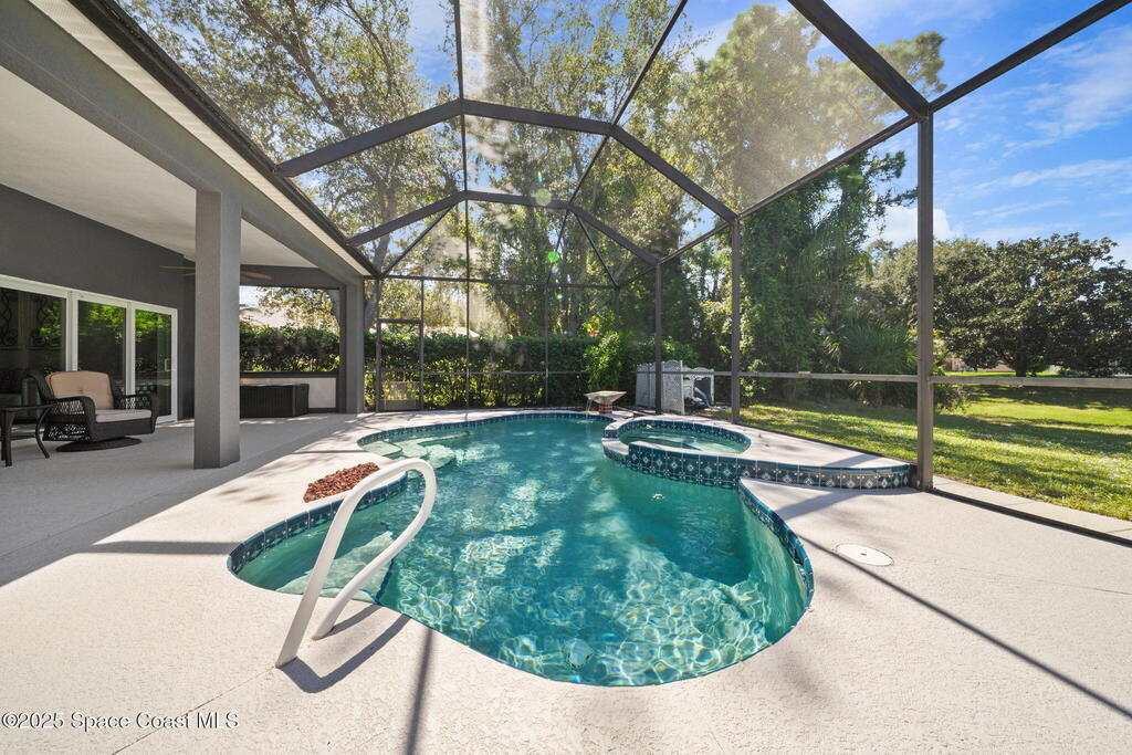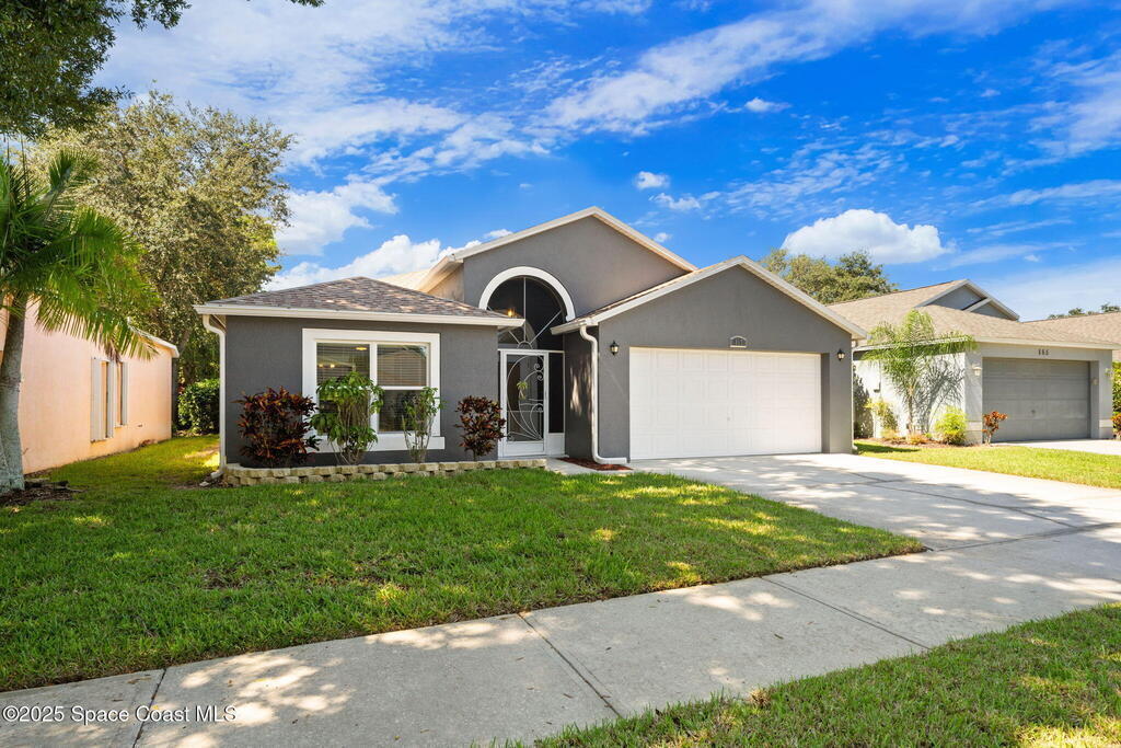 72 hr Kickout Clause. Located in the desirable Suntree Forest community, this 4-bedroom, 3-bath POOL home offers a spacious layout with modern updates throughout! Recent upgrades include brand-new 2025 impact windows and doors, 2020 roof, new 2023 AC, and a full home re-plumb in 2022. The renovated kitchen features granite countertops, ample cabinetry, and bar seating that opens to the expansive family room. The primary suite features an updated en-suite with granite countertops, walk-in glass shower, and a large walk-in closet. In addition to the primary, one bedroom has its own private bathroom, perfect for guests! Beautiful ceramic tile runs through the main living areas and new luxury vinyl floors in all bedrooms. A dining room and an additional living space provide plenty of room for entertaining and everyday living. French doors lead to the 4th bedroom, which could also be used as an office, flex room or den. Triple sliders open to the oversized screened-in lanai with a pool,