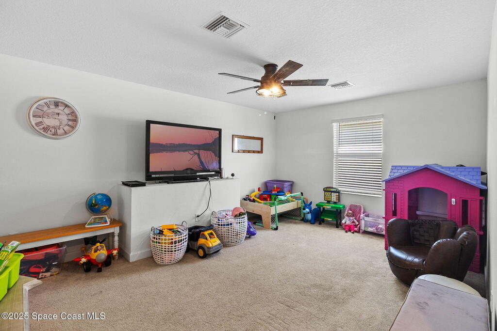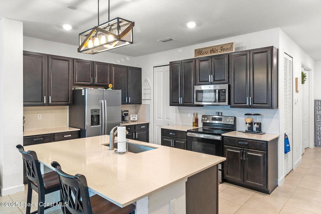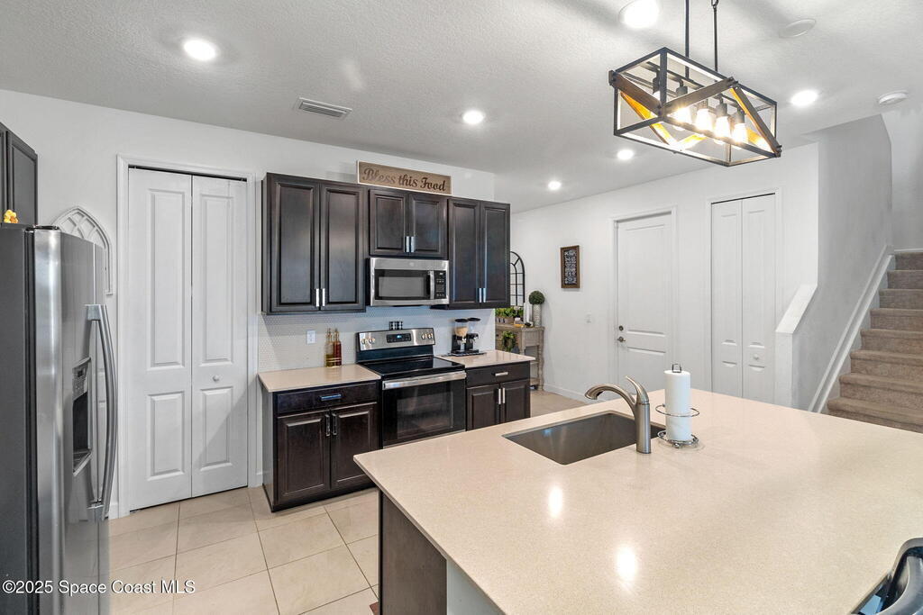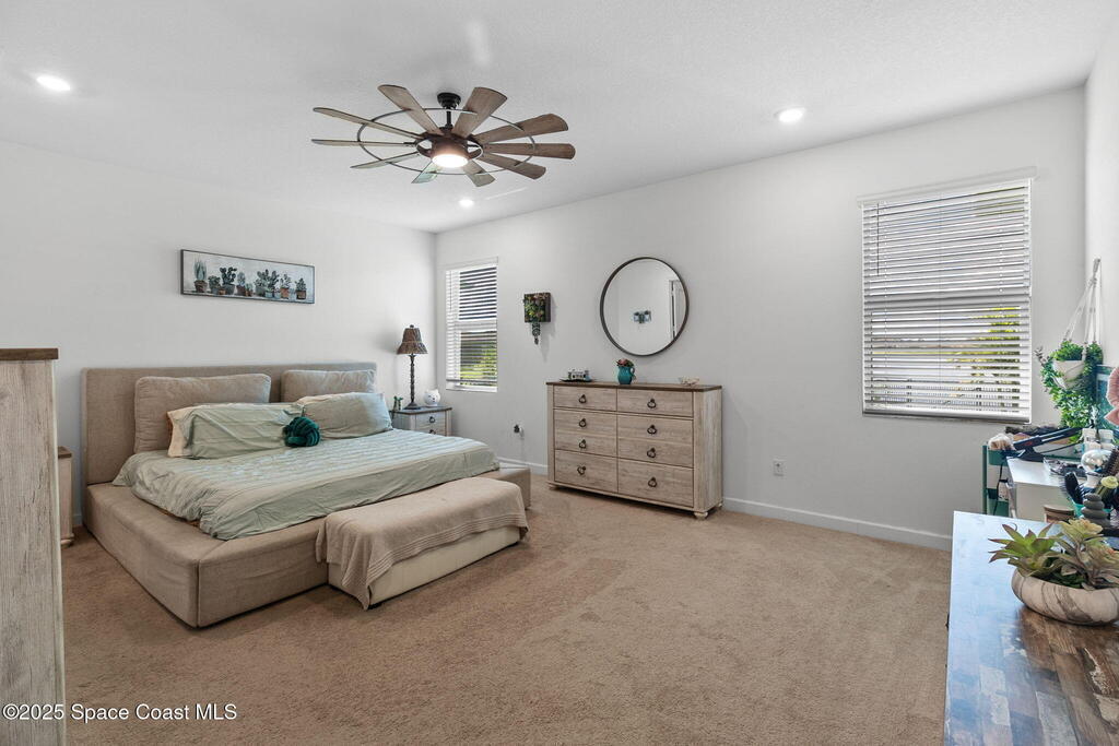 This waterfront home offers 5 bedrooms plus a den in an open, airy layout designed for lounging and entertaining. The first-floor primary suite overlooks the lake and flows to a spa-like ensuite bath and a huge walk-in closet, while a second upstairs family room provides extra living space. Enjoy breathtaking sunsets from your backyard and nearby lake views that set a magical mood. The kitchen features quartz countertops, marble window sills, and 42'' cabinets, with impact windows delivering quiet interiors, energy efficiency, and easy storm prep. Four additional bedrooms provide ample space for guests, family, or work-from-home setups. Outside and in the community, residents can stroll to the pool, take part in an active schedule of neighborhood events and movie nights, and savor the tranquil waterfront setting. Location is ultra-convenient--easy access to Melbourne via St. John's Heritage Pkwy, with a variety of shopping and dining options just 10-15 minutes away.
