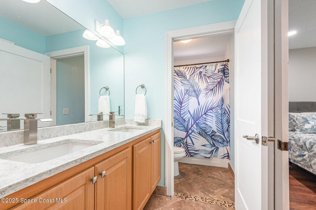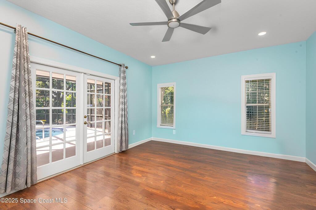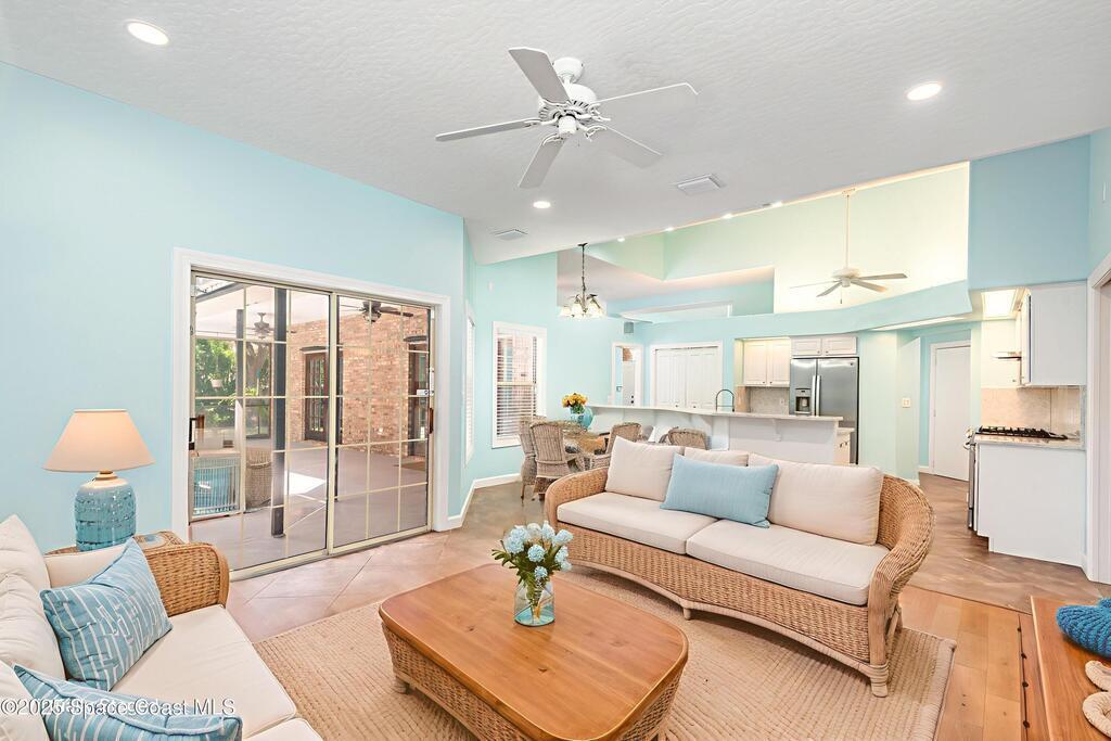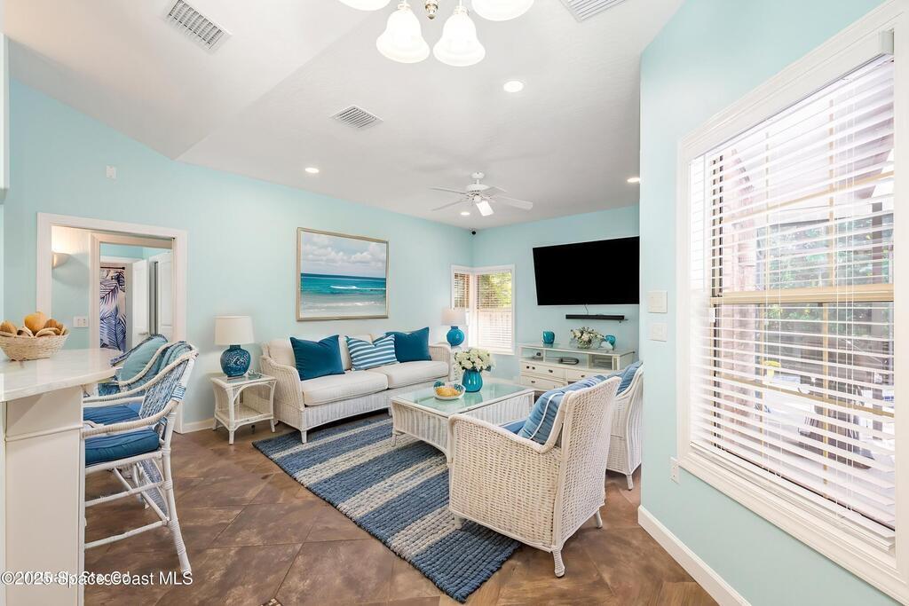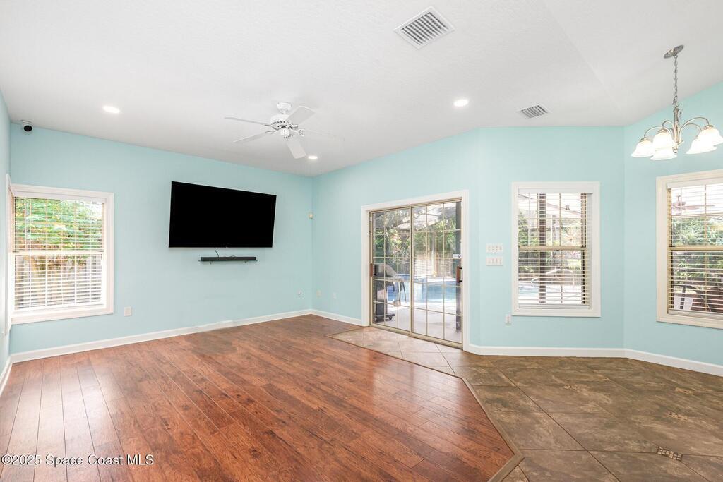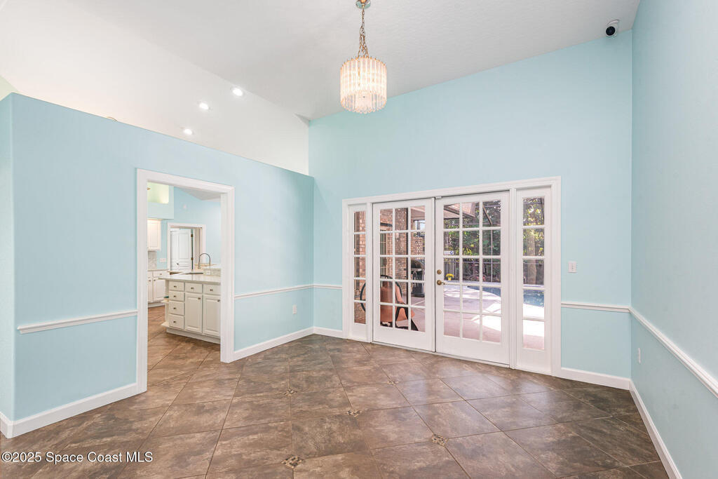 **MAJOR PRICE REDUCTION** This is the one you've been waiting for! Stunning SUNTREE/VIERA BRICK CUL-DE-SAC home with COASTAL VIBES on a PRIVATE, WOODED lot. You'll love the large, RENOVATED KITCHEN with QUARTZ COUNTERTOPS, SS APPLIANCES, and GAS RANGE with HOOD. Casually dine at the kitchen's BAR or BREAKFAST NOOK, or choose the DINING ROOM with its GLASS FRENCH DOOR views to the pool. The house features VAULTED CEILINGS, LIVING ROOM with a GAS FIREPLACE, and TONS OF NATURAL LIGHT. Includes a WHOLE-HOUSE BRITA WATER FILTRATION SYSTEM. The primary suite offers DOUBLE WALK-IN CLOSETS, GARDEN TUB, a shower with DUAL SHOWER HEADS, and GLASS FRENCH DOORS that open to the pool deck. NEW AC SYSTEM (2024) AND DUCTWORK. One guest bedroom is SEMI ENSUITE with direct access to the guest bathroom. NEW RECESSED LIGHTING and SELECT FANS throughout. Enjoy the POOL or SPA in your PRIVATE WOODED BACKYARD with HALF-YARD PRIVACY FENCE. BRAND NEW GAS POOL HATER. Roof (2020). A-RATED SCHOOL DISTRICT.