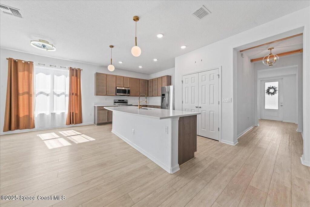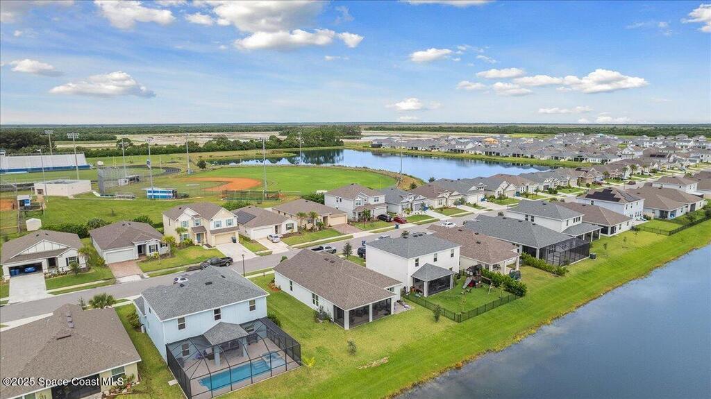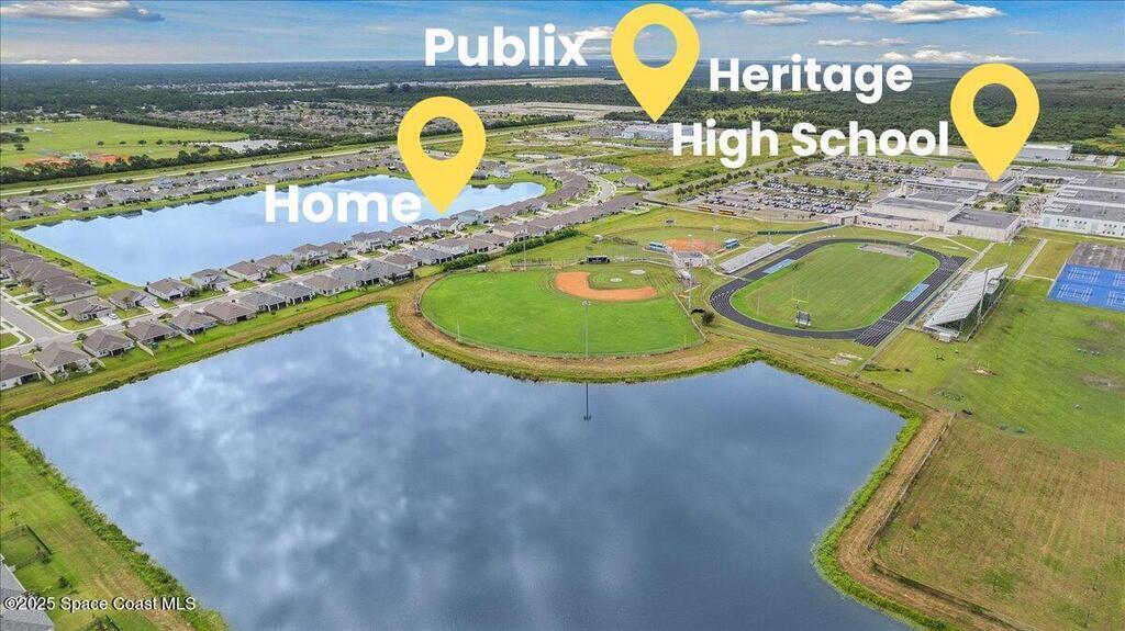 If you've been waiting, this is it. Priced to sell with a motivated seller.Walk into this home and instantly be greeted with peaceful lake views stretching across the back of the property. Situated on a larger lot in a newer, quiet community just minutes from Publix, Heritage High, I-95, shopping, and dining.The open layout is ideal for entertaining, while the split floor plan provides privacy. Features include 9.5-ft ceilings, 8-ft doors, 42-inch cabinets, quartz kitchen counters, and granite bath finishes.Built to higher construction standards with energy-efficient elements including HERS rating, blower door testing, and jumper ducts.Recent upgrades include gutters, relocated A/C, and an extended screened porch with pavers--perfect for enjoying the water views year-round. Community pool within walking distance.Don't wait. Act Now!