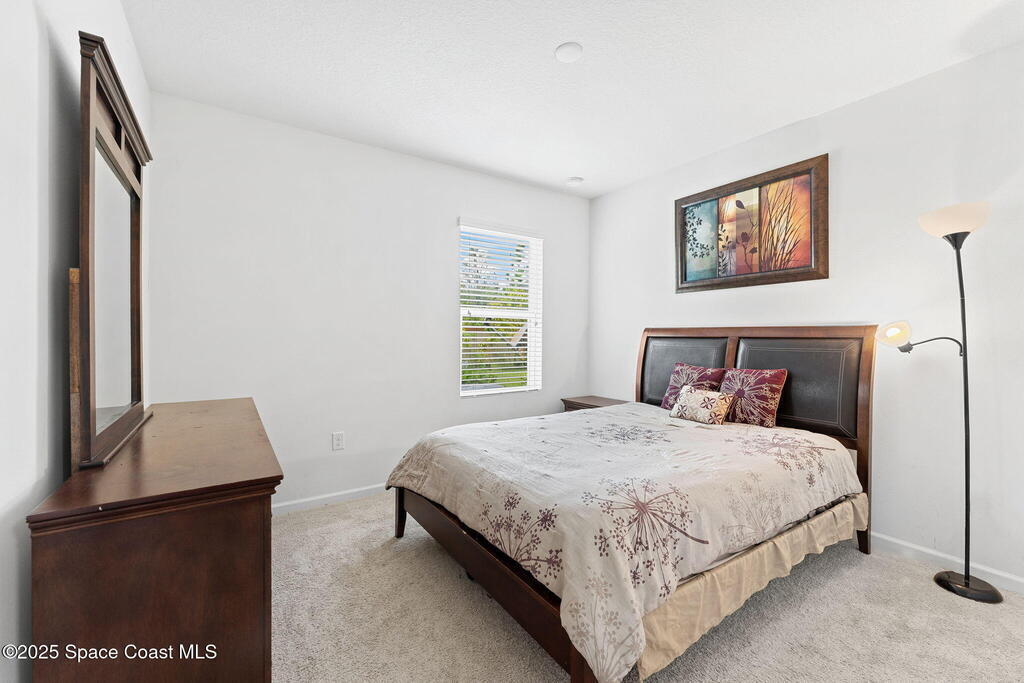 Bold & Spacious Living Awaits Offering 5 bedrooms, 3 full baths & an upstairs flex room, this back corner lot home blends modern flow with functional design. The open kitchen stands out with espresso cabinetry, bright counters, stainless appliances, central island & walk-in pantry, connecting seamlessly to dining & living areas. A first-floor bedroom & full bath provide ideal space for guests or multi-gen living. Upstairs, the primary suite impresses with dual sinks, walk-in shower & dual walk-in closets, complemented by 3 additional bedrooms, full bath with double vanity & a versatile flex space ready for movie nights, workouts or play. Tile & carpet flooring run throughout, while the laundry is smartly positioned upstairs. Outdoor living features a welcoming covered front porch, rear patio & expansive backyard offering both privacy & potential for a pool, garden or open lawn. A two-car garage completes the picture, delivering the space, versatility & lifestyle today's buyers demand.