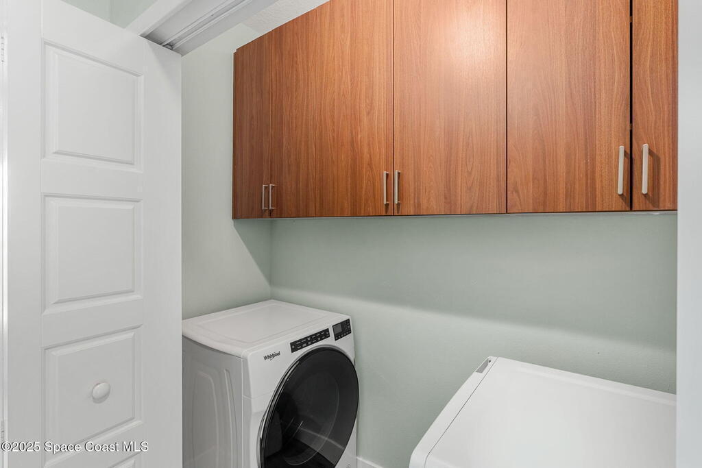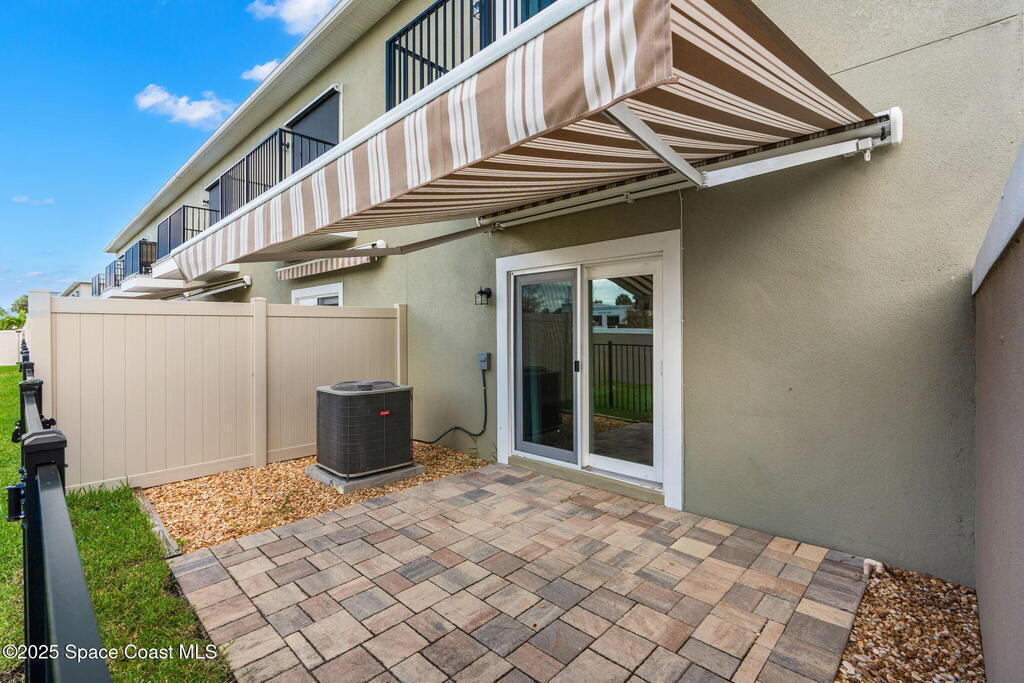 This stunning 2023-built townhouse combines sleek design, modern finishes, and thoughtful features, making it the perfect investment property or relaxed Florida retreat. With 1,246 sq. ft. of living space, this 2-bedroom, 2.5-bath home is filled with natural light that highlights its open-concept layout and luxury vinyl plank flooring.The kitchen is a chef's delight, boasting quartz countertops, soft-close cabinetry, stainless steel appliances, and a washer and dryer that convey with the home for added convenience. Impact-rated windows (up to 185 MPH) provide both safety and peace of mind during Florida's storm season.Step outside to your private, fenced paver-stone patio with an electric awning; perfect for enjoying sunny afternoons. Privacy fencing between units, and a Tesla/electric vehicle charger in the garage add even more value.Nestled in a peaceful gated community just minutes from downtown restaurants, shops, and the beach, this home offers a low HOA of only