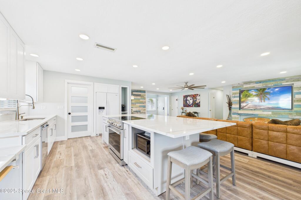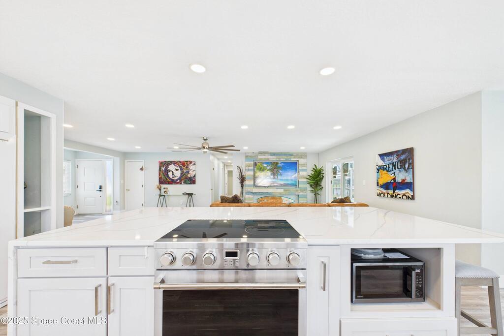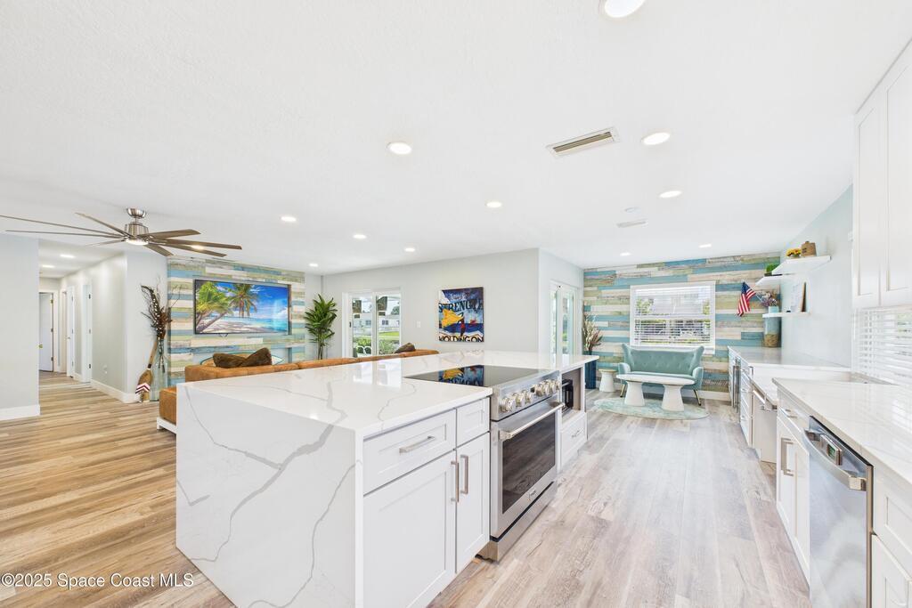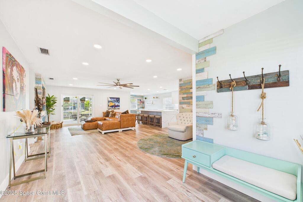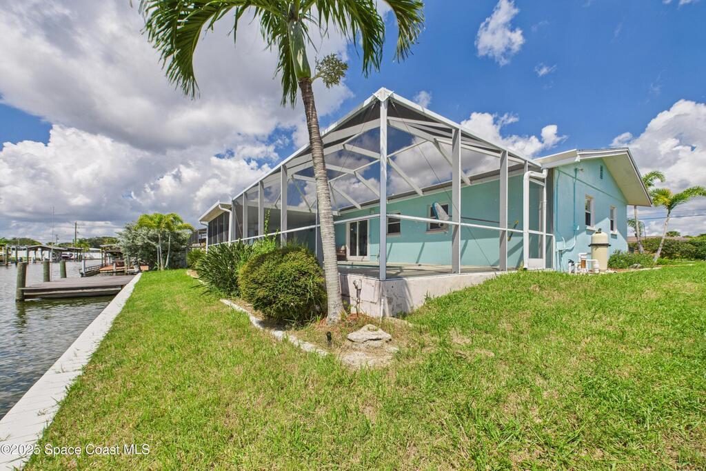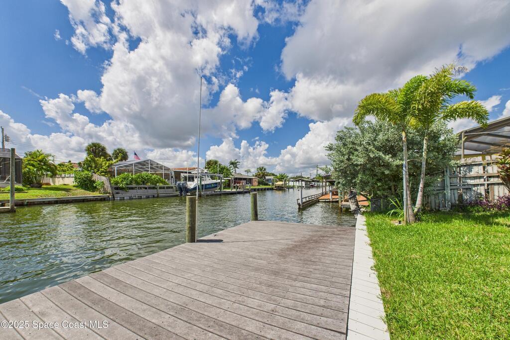 Canal-Front Pool Home in East Merritt Island This 4-bed 2-bath home offers 80 feet of deep-water frontage with quick access to the Banana River, Canaveral Locks, and the Atlantic Ocean. A newer vinyl seawall and Trex dock are already in place, making this property ready for boating and waterfront living.The home has been updated with NEW hurricane impact windows and sliders (2025), NEW flooring throughout, NEW water heater, and a newer roof (2018) for peace of mind. The interior features an open floor plan with water views from multiple rooms, a completely remodeled kitchen with quartz countertops, and a wine bar/fridge.Step outside to a screened pool, large covered lanai, and wide canal views the perfect setting for entertaining or enjoying Florida's year-round sunshine. Located on a private dead-end street with no HOA and no through traffic, just minutes from restaurants, parks, and sandbars. From your backyard, you'll enjoy launches, sunrises, and sunsets! Don't miss it.