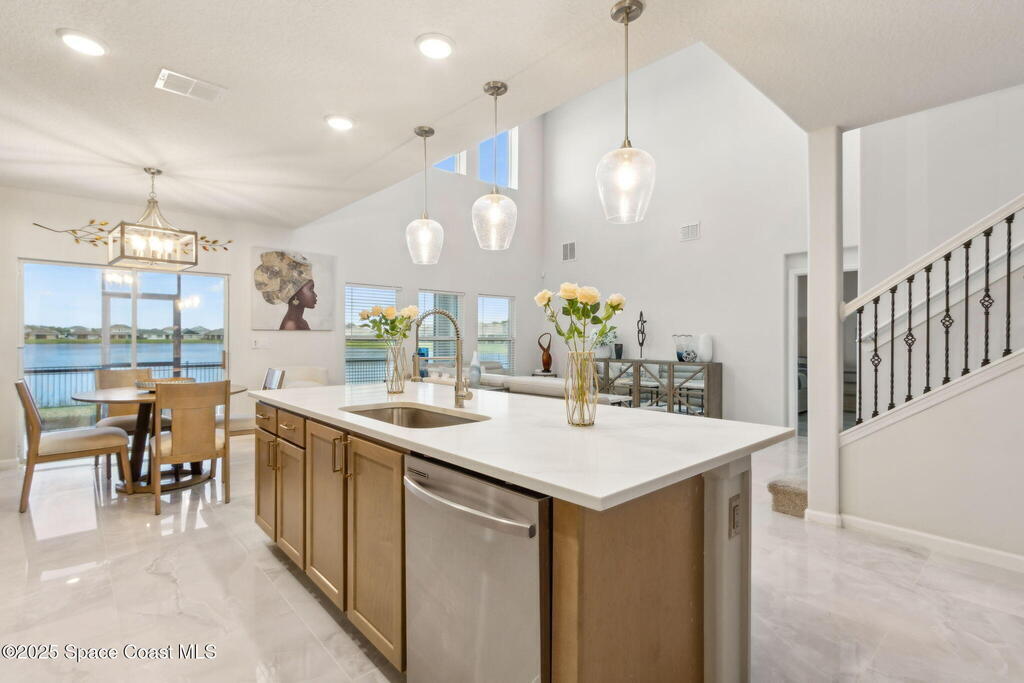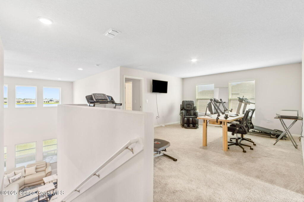 Seller offering up to $10,000 toward Buyer's closing costs, prepaid items, and/or interest rate buy-down. VA assumable loan at 5.12%, subject to terms. Enjoy family life at its finest in this meticulously designed home, blending upscale amenities (a chic cinema which includes Troy Black Power Reclining Sofa with blue lighting underneath and spacious loft) with a lived-in warmth that make everyone feel at home. 5-bedroom, 4-bath layout with spacious living areas and thoughtful design throughout. The primary suite is conveniently located on the first floor, featuring serene water views and a luxurious ensuite bath. A guest bedroom or home office and a second full bath are also located on the main level, providing flexible living options. Upstairs, you'll find two bedrooms connected by a Jack-and-Jill bath, plus and additional bedroom with a private en-suite bath. Whether you need space for family, guest, or hobbies, this stunning home delivers modern style,