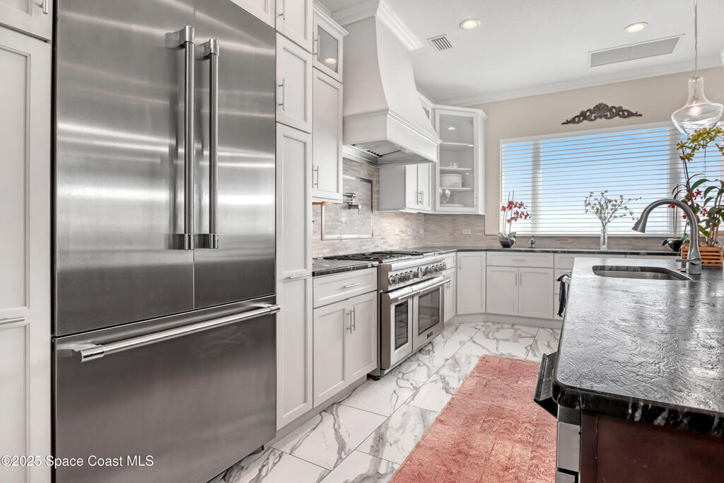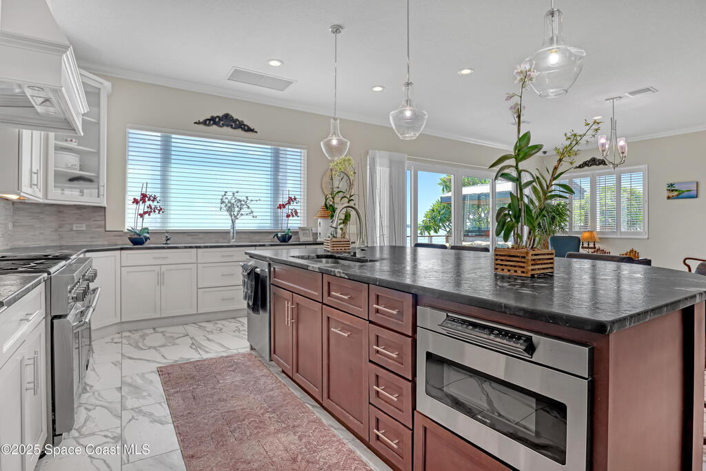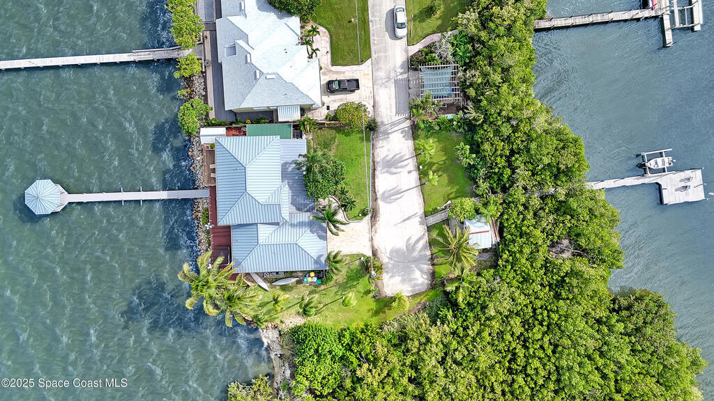 One-of-a-kind Peninsula Waterfront Estate on Two Premium Lots.Welcome to a rare peninsula-tip estate on coveted Milford Point Drive in Merritt Island.Fully renovated in 2017, this 4,000+ sq. ft. residence combines classic coastal elegance w/modern upgrades.The property boasts direct river access, deep-water dockage,frontage on two waterways, one lot facing the open river and a second on a protected canal. Step inside to an open-concept plan filled w/ natural light:5 Bedrooms,4 Baths,Include 3 Master Suites/In law Suite & Office.Property has amazing Air BNB Potential! Impact-rated (hurricane-protected)doors & windows w/ plantation shutters frame water views from nearly every room.The entertainer's kitchen opens to the main living area & features Thermador double ovens w/ 6 gas burners, as well as generous prep/storage space.Direct river frontage with deep-water access.Two premium lots one on the open river,one on the quiet canal,12,500-lb boat lift and dock on Deep Water Pelican Creek.