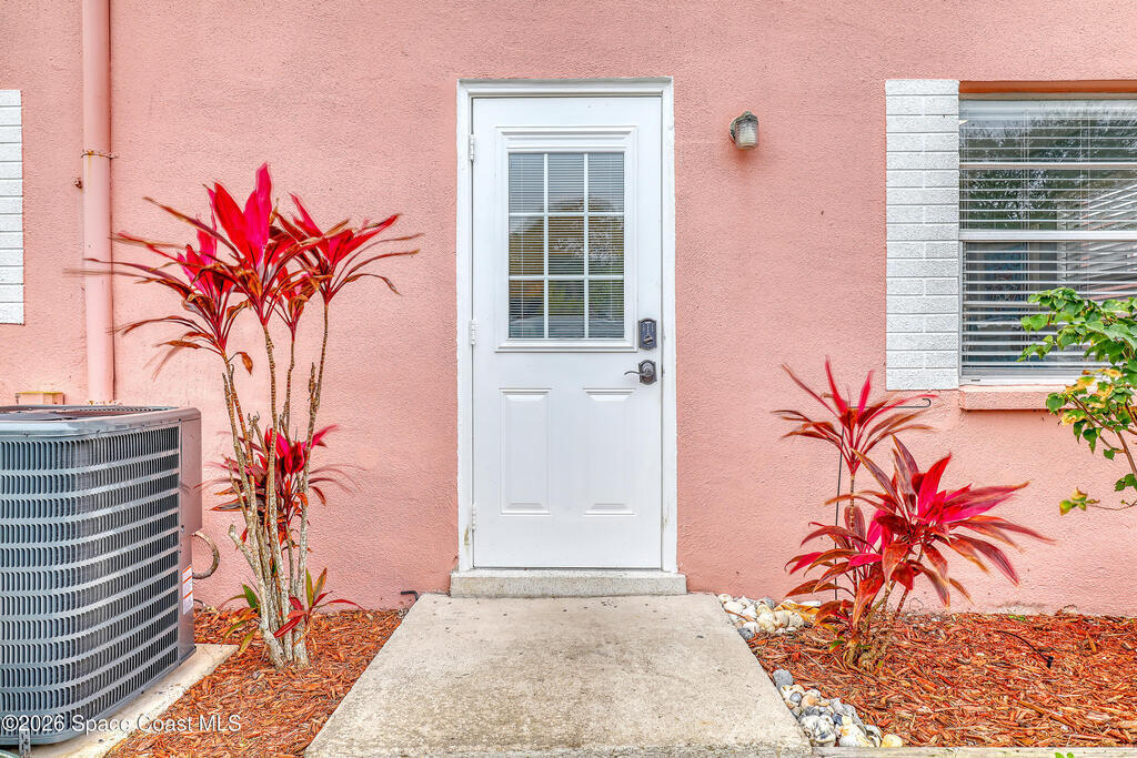 Feel the ocean breeze in this tastefully updated beachside condo, perfectly situated in a gated community just a short distance from the shore! This desirable first-floor unit radiates pride of ownership with updates throughout, including: new flooring, baseboards, paint, closet doors, and fixtures. Stylish new vanity and modern finishes. 2019 instant hot water heater and updated 100-amp electrical panel.BONUS FEATURE: guests can arrive through the landscaped gated commons area or enjoy the convenience of direct access from the assigned parking space to your private kitchen entry--complete with a charming sitting area just outside the door of this private corner unit. 2018 roof and impact windows in the bedroom and bathroom for peace of mind.Enjoy the ultimate coastal lifestyle--just a short stroll to the beach, dining, cruise ships space center, surf shops and all that this sought-after area has to offer. And within 45 minutes from two major Airports (Orlando & Melbourne).