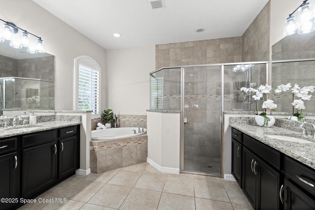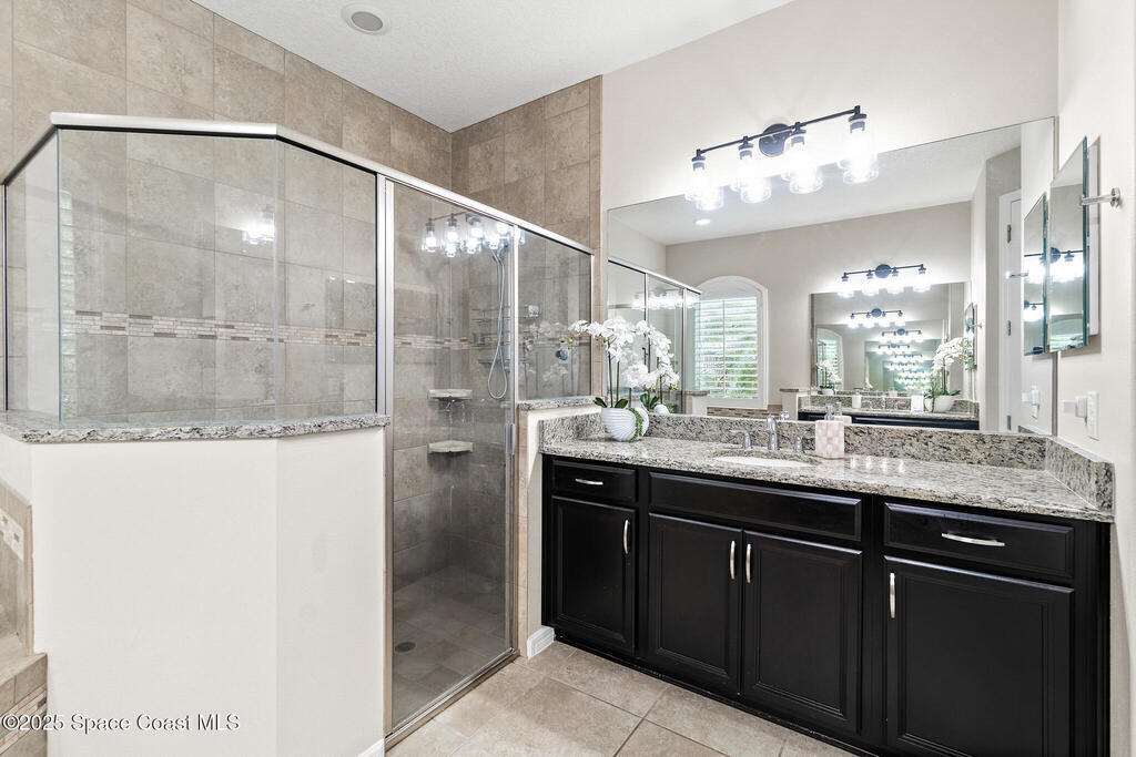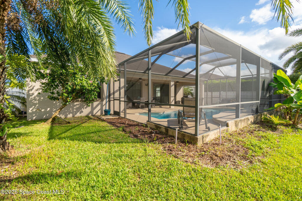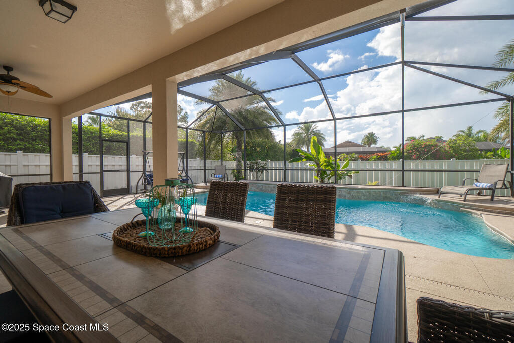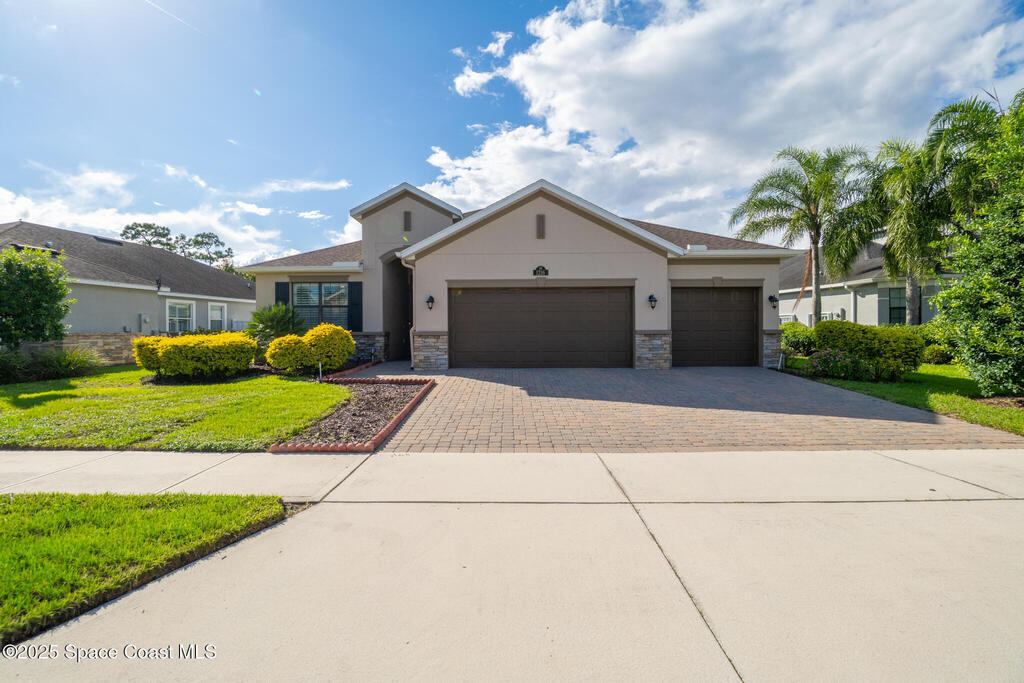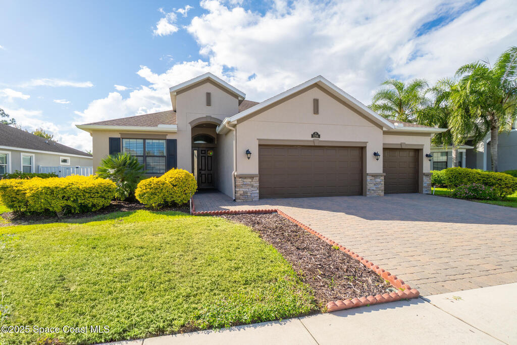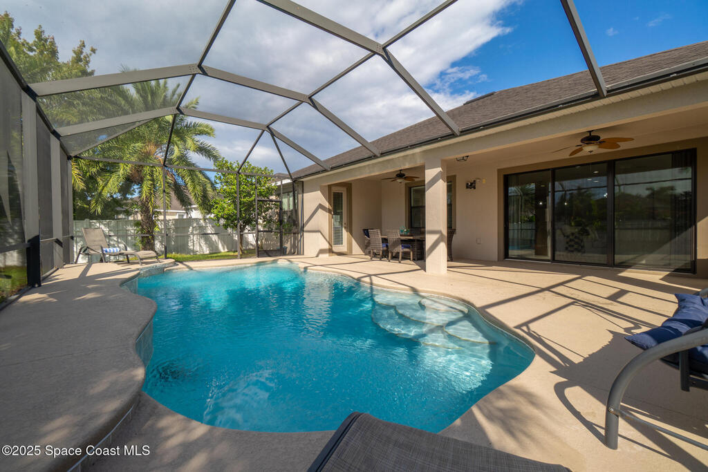 Welcome to this stunning pool home located in the friendly and convenient community of Strom Park, right in the heart of West Viera. Offering the perfect blend of elegance, comfort, and convenience, this residence features 4 spacious bedrooms, 3.5 bathrooms, a 3-car garage, and the rare advantage of two primary suites. A brand-new $10,000 air-conditioning system and nearly all new appliances have been recently added for peace of mind. As you approach, the beautiful accent stone and lush landscape set the tone for the sophistication within. Step inside and you'll be greeted by soaring tray ceilings, wood-trimmed details, crown molding, and 8' doors. Freshly painted common areas, plantation shutters, and honeycomb blinds enhance the home's character and style.At the heart of the home is the expansive kitchen, thoughtfully appointed with granite countertops, 42-inch cabinetry, under-cabinet lighting, a massive walk-in pantry, and new Samsung stainless steel appliances, including a