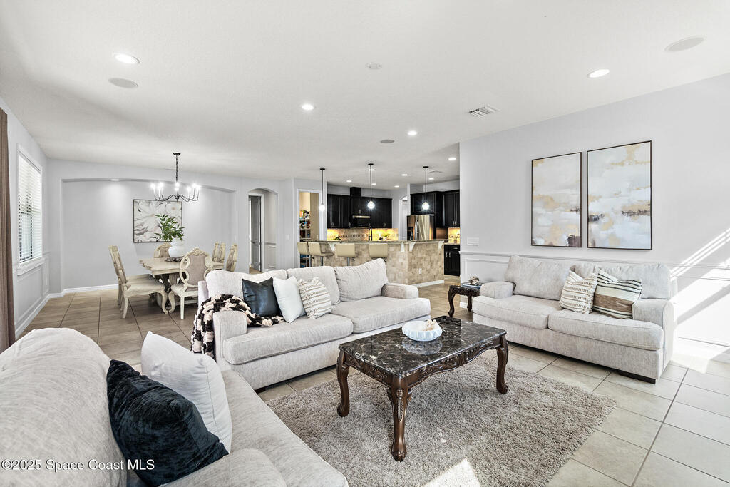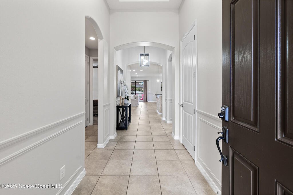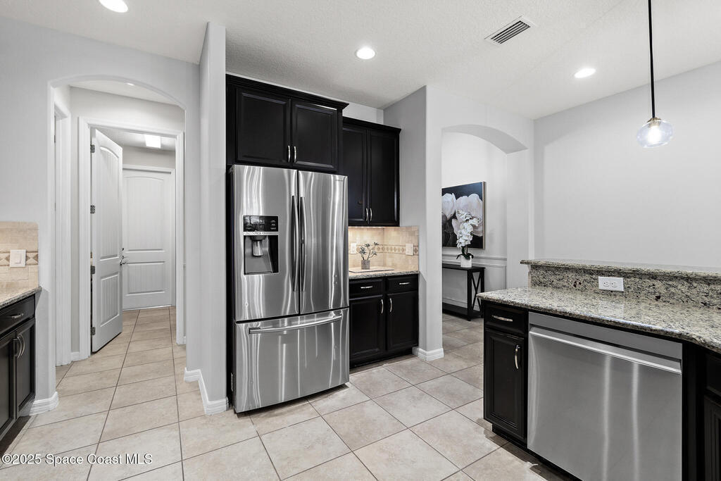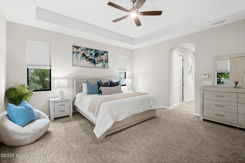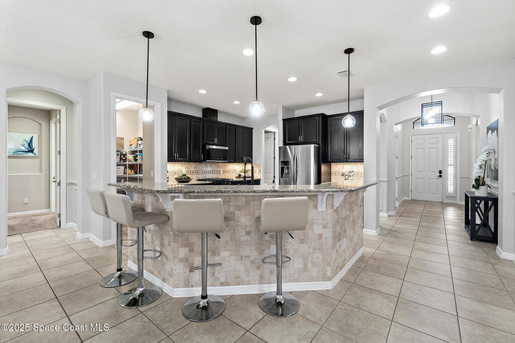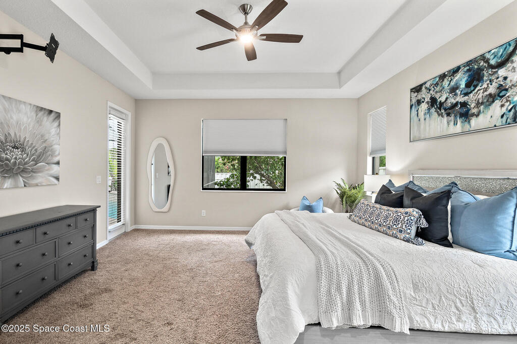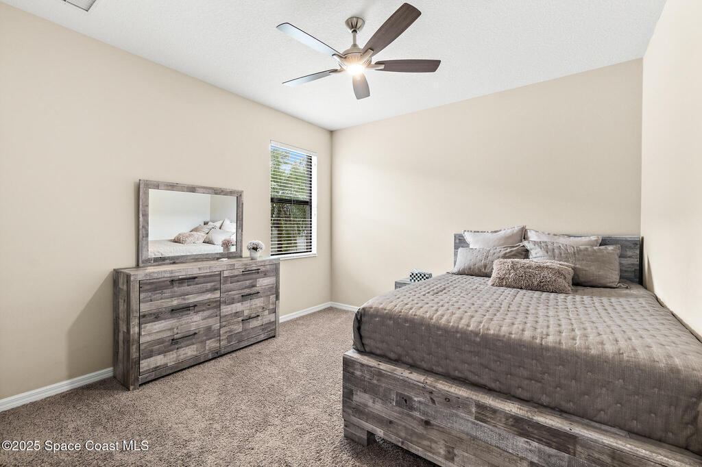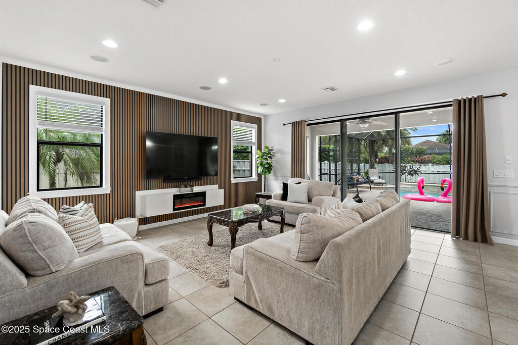 Welcome to this stunning pool home located in the friendly and convenient community of Strom Park, right in the heart of West Viera. Offering the perfect blend of elegance, comfort, and convenience, this residence features 4 spacious bedrooms, 3.5 bathrooms, a 3-car garage, and the rare advantage of two primary suites. A brand-new $10,000 air-conditioning system and nearly all new appliances have been recently added for peace of mind. As you approach, the beautiful accent stone and lush landscape set the tone for the sophistication within. Step inside and you'll be greeted by soaring tray ceilings, wood-trimmed details, crown molding, and 8' doors. Freshly painted common areas, plantation shutters, and honeycomb blinds enhance the home's character and style.At the heart of the home is the expansive kitchen, thoughtfully appointed with granite countertops, 42-inch cabinetry, under-cabinet lighting, a massive walk-in pantry, and new Samsung stainless steel appliances, including a