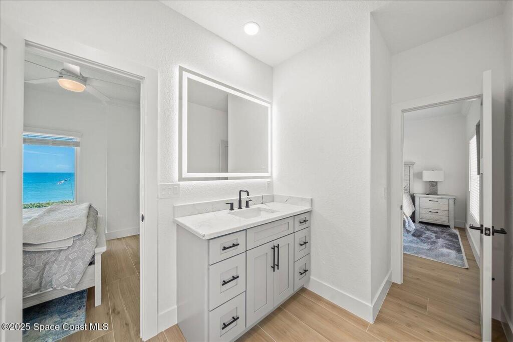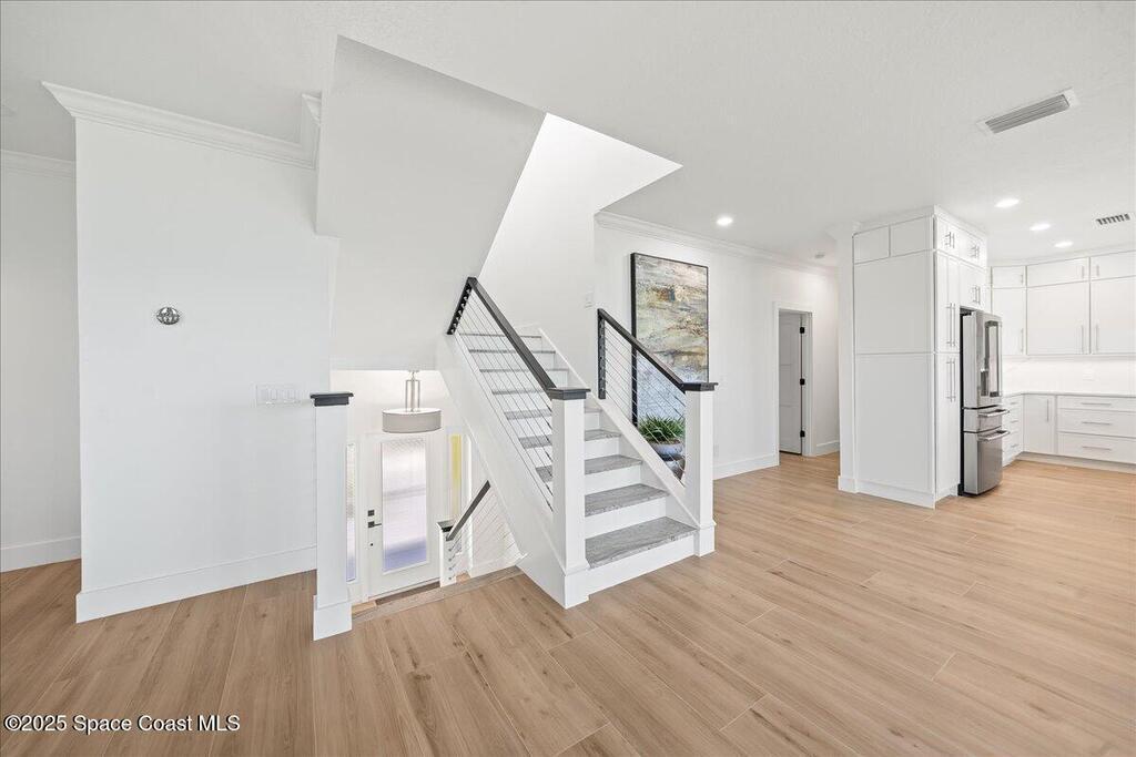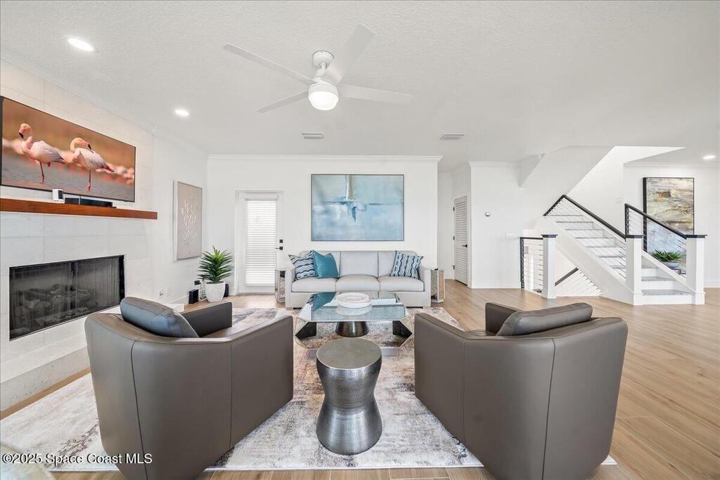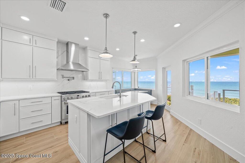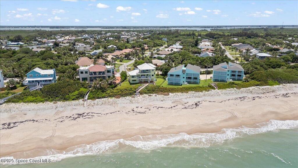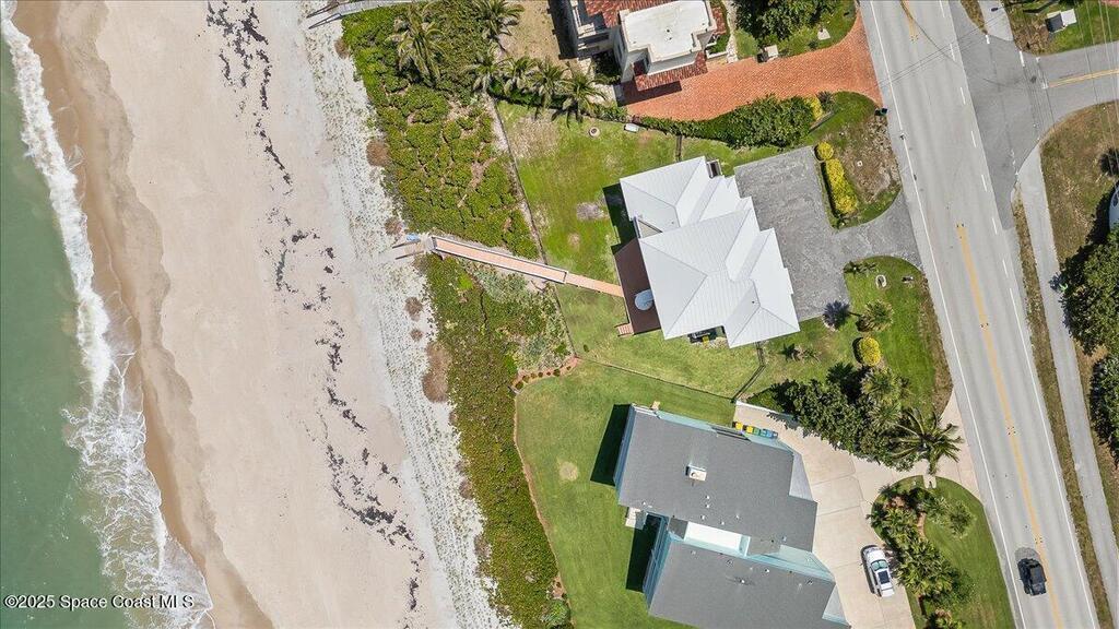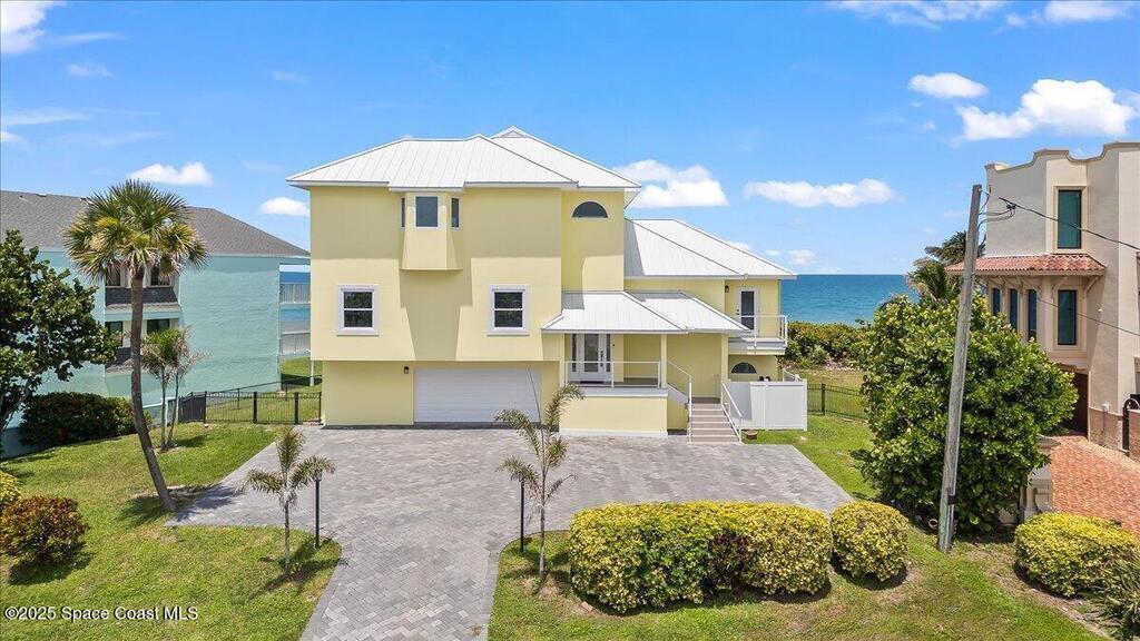 Experience the ultimate in oceanfront living with this rare coastal gem, completely renovated in June 2025, on Melbourne's private beaches. Set on .57 acres with 100 feet of direct ocean frontage, it offers privacy, space, and breathtaking Atlantic views. Watch sea turtles nest from your front yard and soak in the natural beauty. Just minutes from A-rated schools and boutique shopping, this location blends convenience with coastal charm. Inside, enjoy new porcelain floors, maple stair treads, fresh interior and exterior paint including railings, and a finished garage floor. Additional upgrades include new interior doors, light fixtures, vanities with quartz countertops, all-new showers, closet shelving, outlets, switches, a new water heater, water filtration system, and a freshly painted crossover. Roof and impact-rated windows/doors were replaced in 2017. A move-in-ready retreat where luxury meets nature beachfront living at its best.