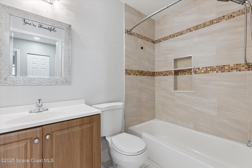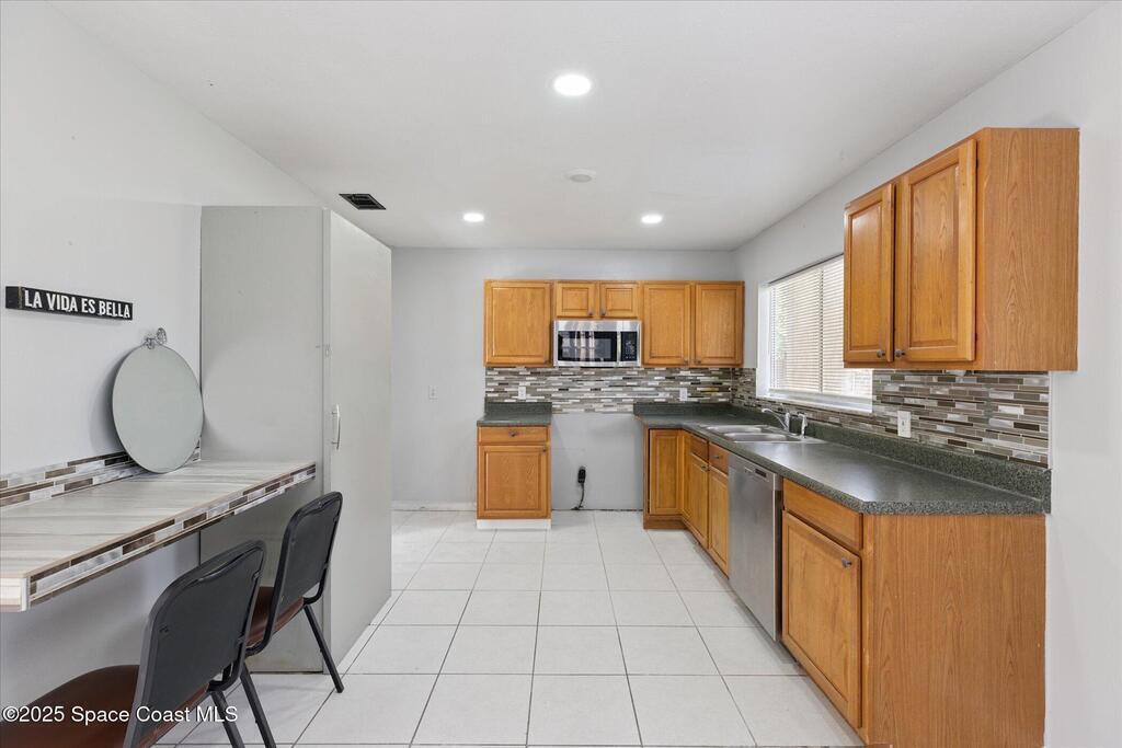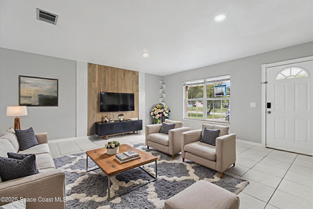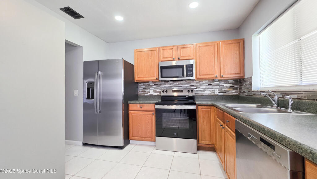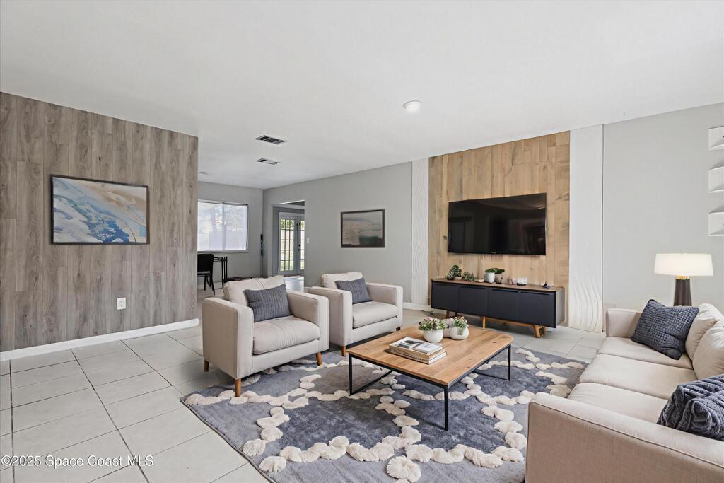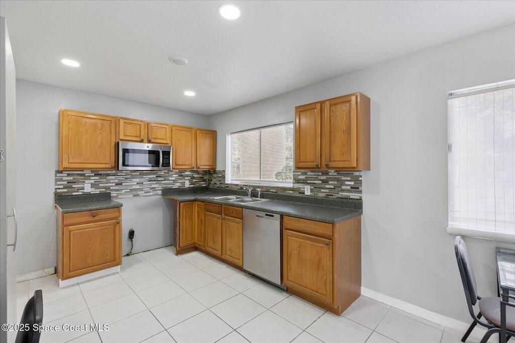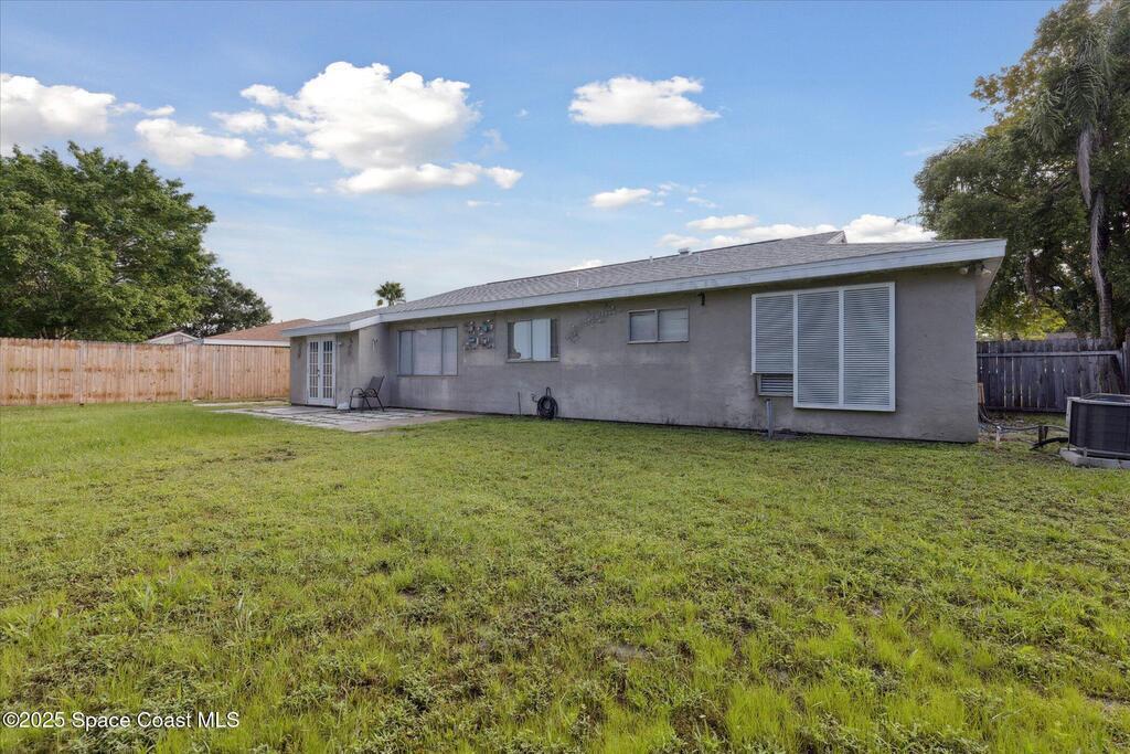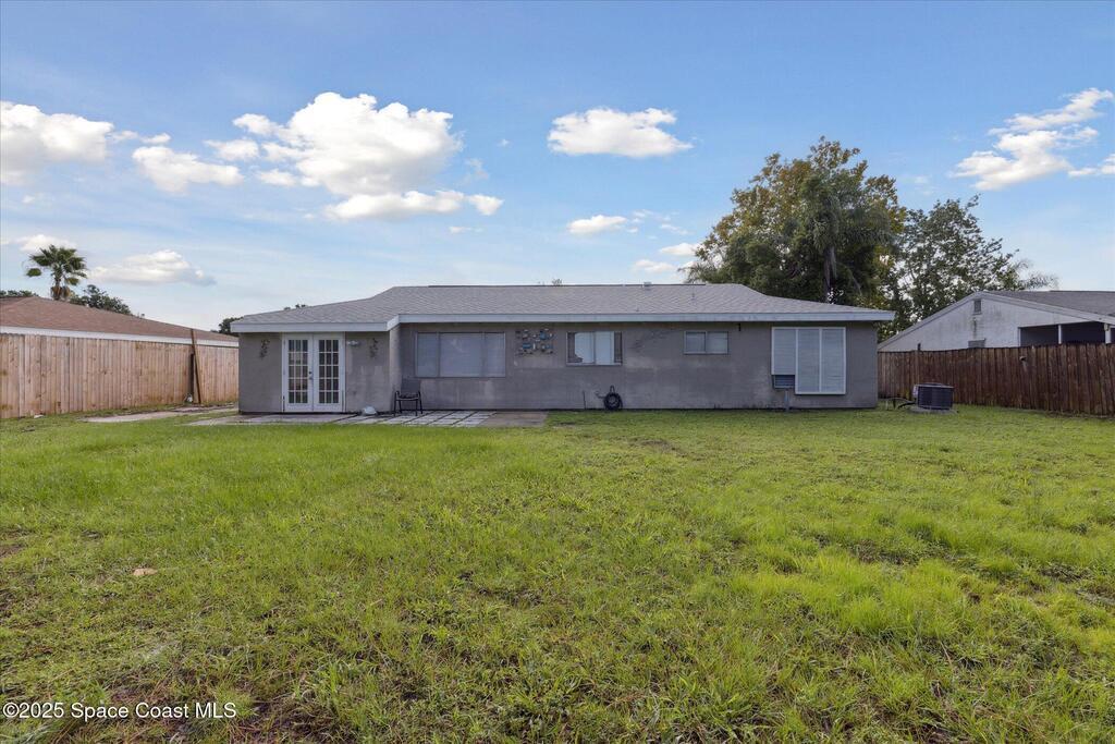 Welcome to this centrally located 3-bedroom, 2-bathroom, 1-car garage home in the heart of Palm Bay--close to shopping, restaurants, gyms, Hammock Landing mall, and with quick access to I-95.This home features a brand-new roof (2025) and is filled with natural light throughout. Step inside to find a welcoming living room that flows into the kitchen and dining area, while a spacious family room sits to the right, connecting directly to the garage. Double doors lead out to a large backyard with no rear neighbors, offering privacy and plenty of outdoor space. Three bedrooms on the left side of the home. The master bedroom has its own private bathroom. Two bedrooms feature durable vinyl flooring, and one has carpet.The kitchen includes a stainless-steel microwave and dishwasher, brand new refrigerator or stove. Separate laundry room Welcome home!