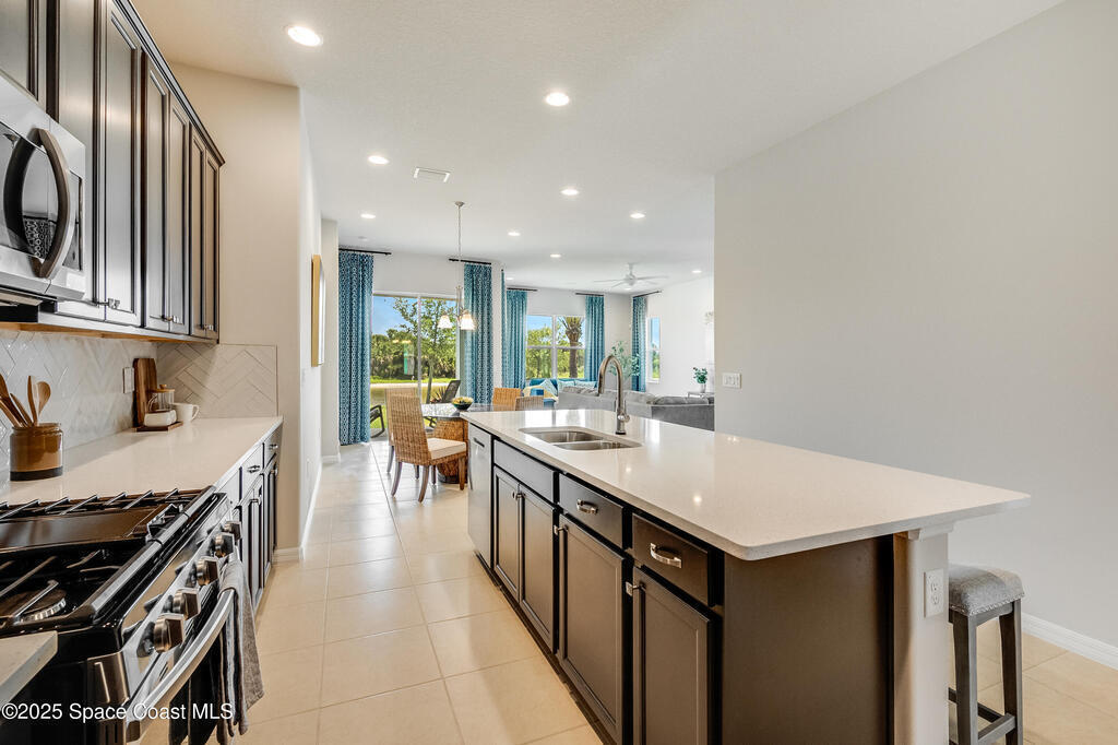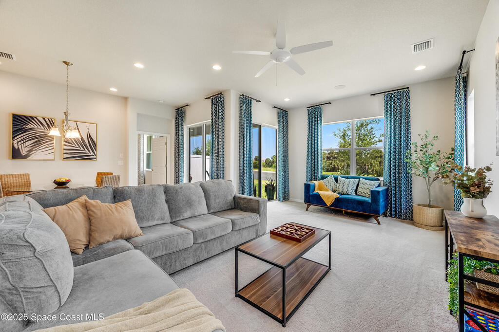 Previously showcased as a model home and now ready for its next chapter, this beautiful 3BR/2BA Saratoga II model features an open floor plan, spacious family room, and gourmet kitchen with quartz countertops, designer backsplash, and high-end SS appliances. On a premium lot with tranquil water and nature preserve views right in your backyard. Upgrades include recessed lighting, ceiling fans, ceiling speakers, and Sonos system throughout the home and lanai. HOA fees include landscaping, roof, internet and basic cable through Spectrum. Access to Addison Village amenity center with clubhouse, pools, gym, tennis courts, and more. Close to shopping, restaurants, and entertainment. Carefree living at its best.