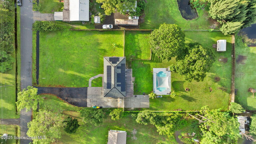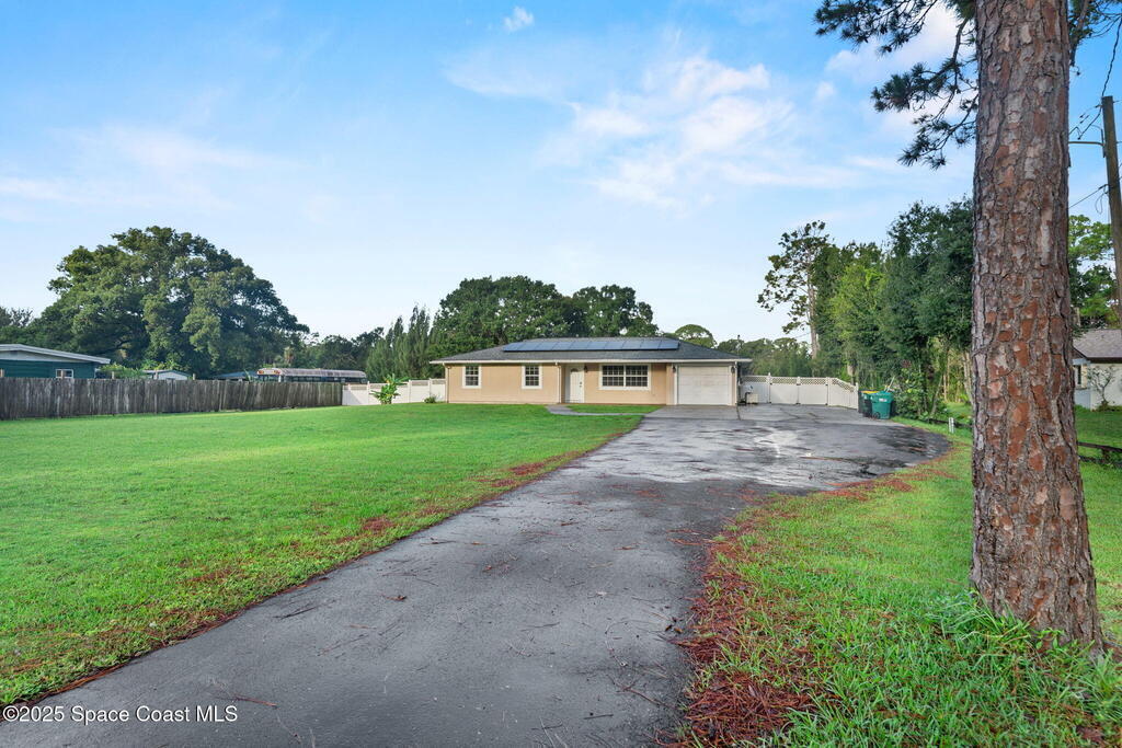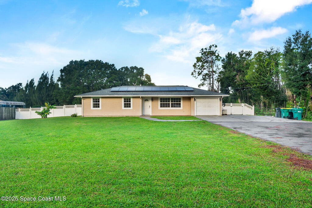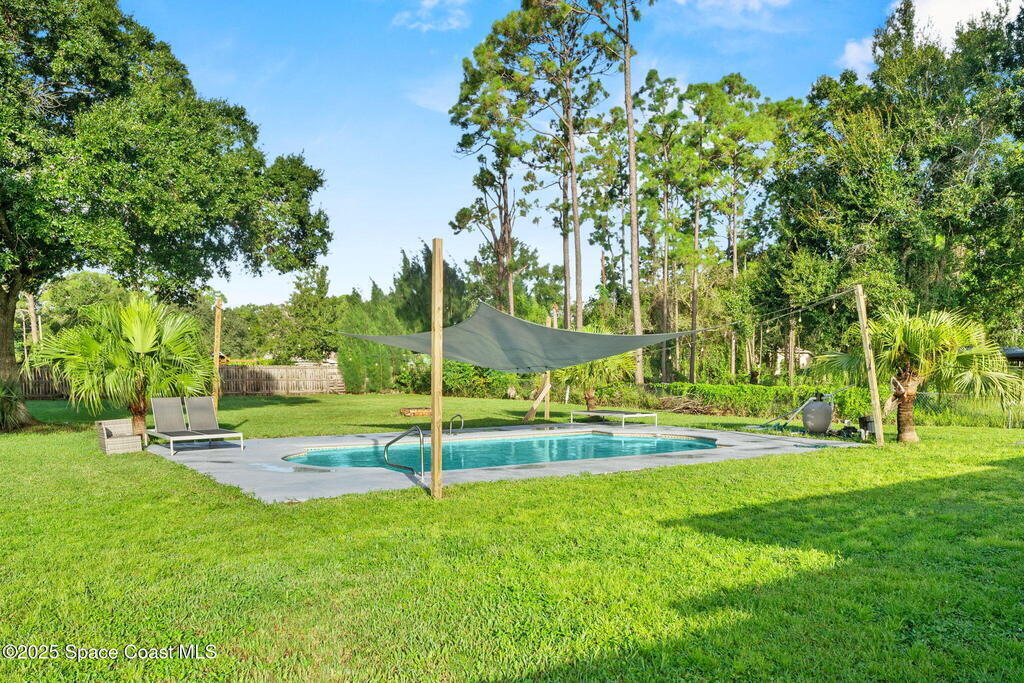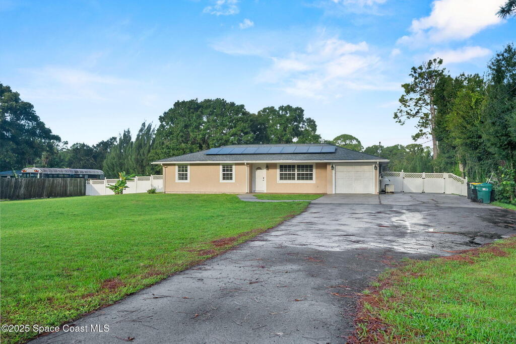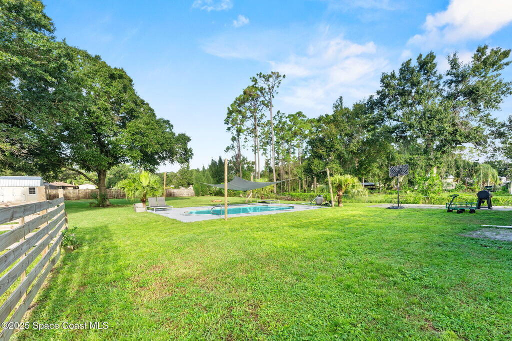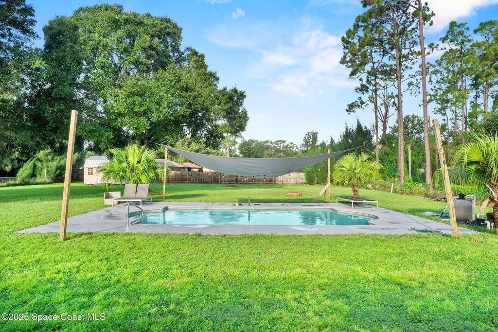SOLAR PANELS WILL BE PAID IN FULLWelcome Home! House has been professionally cleaned and is just waiting for you to move in! This 3-bedroom, 2-bathroom POOL (salt water) home is packed with upgrades and ready for its next owner. Enjoy energy savings with solar panels, and peace of mind with a new roof (1 year old), HVAC (2022), and a tankless hot water heater for endless hot showers.The 0.85 acres allows a large front yard AND the fully fenced backyard features a separate dog corral, perfect for pets while entertaining guests. An extended driveway with a double gate allows easy access to store a boat, vehicle, or trailer. Inside, you'll find fresh paint, a water softener, and storm shutters for added protection.The eat in kitchen has barn doors that lead to a flex room. The garage has been converted into an additional bedroom with a wall-unit AC, but can easily be returned to garage use if desired. The well (2 years old) provides reliable water service