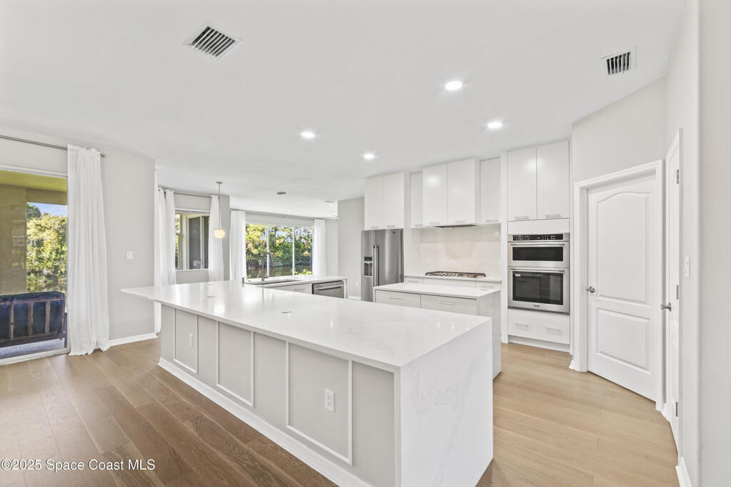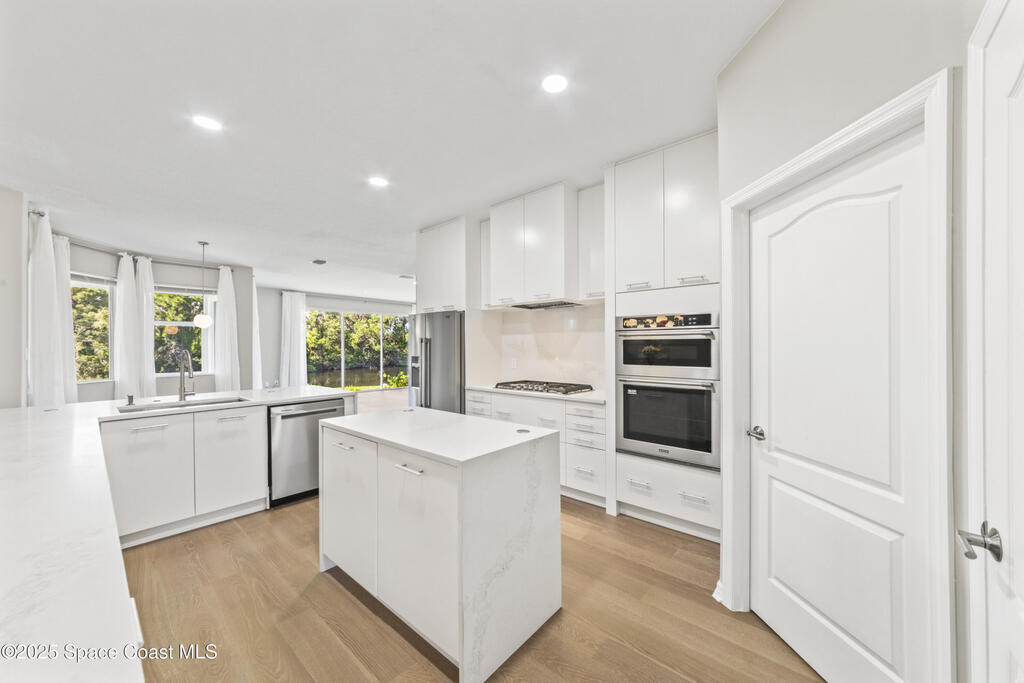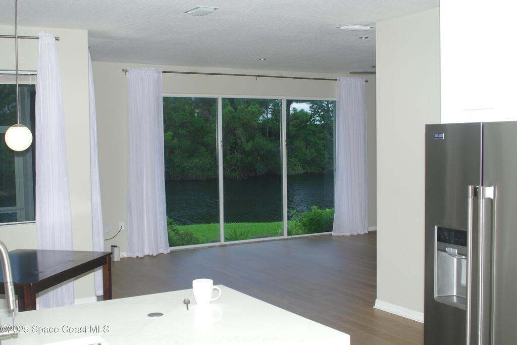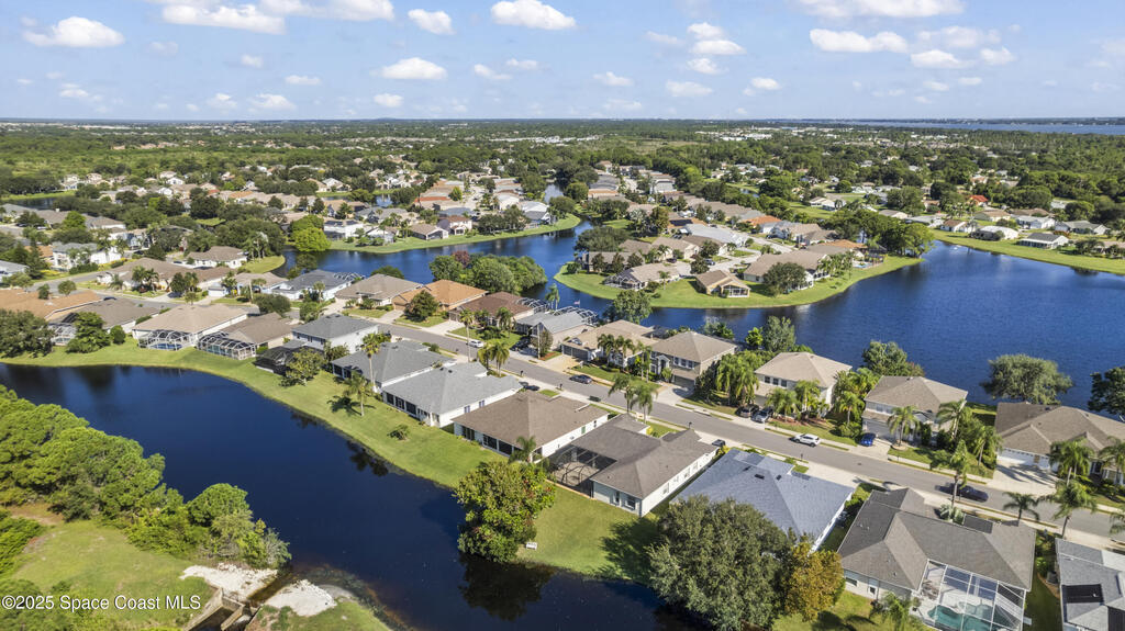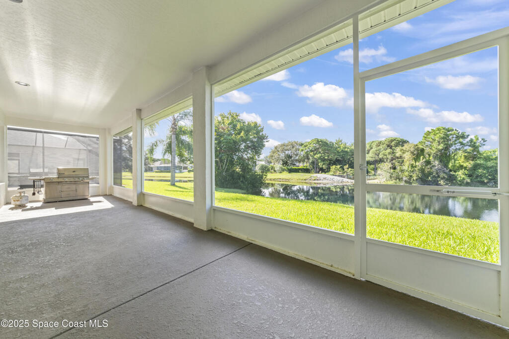 Fully renovated 4 bed/2 bath/3 car garage, 2,570 sq ft waterfront home in peaceful Suntree. Enjoy manicured landscaping & perennial flowers upon entry. Upgrades include wide plank oak hardwood floors, quartz countertops, & soft-close cabinetry. The chef's kitchen features stainless steel appliances, gas cooktop, large pantry, & wrap-around island. Bathrooms have microcement finishes--no grout to clean! The master suite offers a quartz-surrounded jetted tub & walk-in shower. Built-ins provide ample storage throughout. The finished garage includes built-in storage, a workshop area, & extra fridge. Details include wall moldings, electric fireplace, marble handles, & coordinated nickel finishes. Recent roof, water heater, & A/C. Shutters included. Low HOA offers pools, tennis courts, playground, & clubhouse. The lot faces a nature preserve with water views & beautiful sunsets. Enjoy wildlife from your screened porch in this move-in ready retreat, close to top schools & I-95.