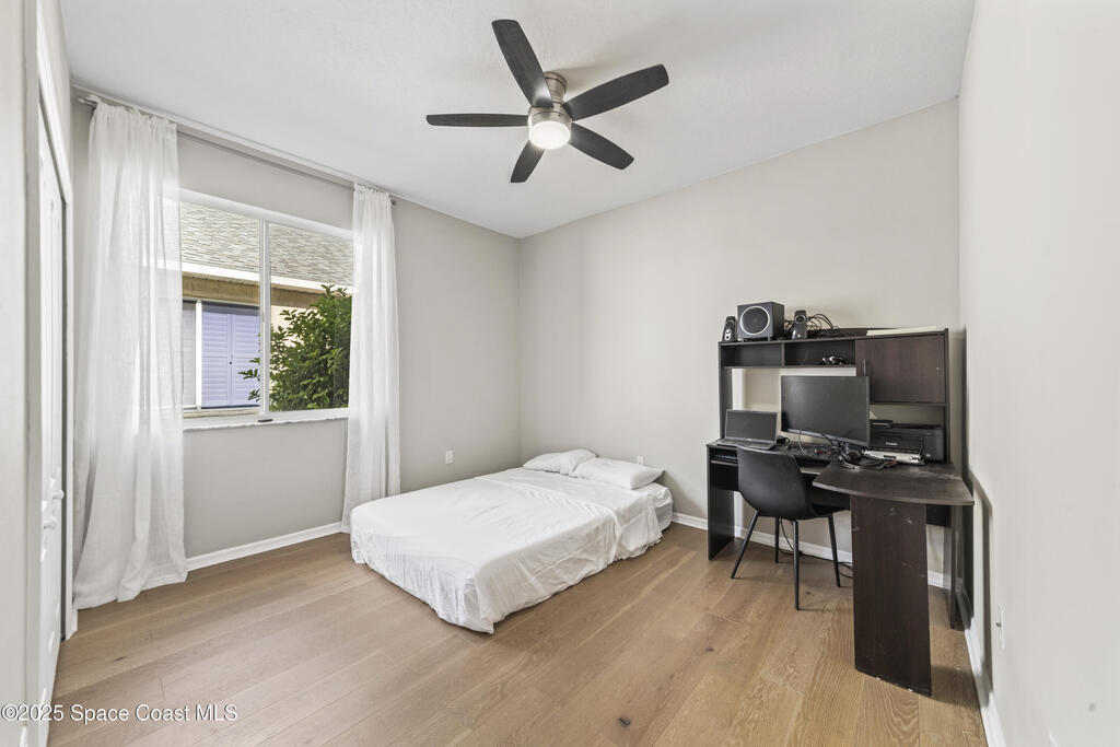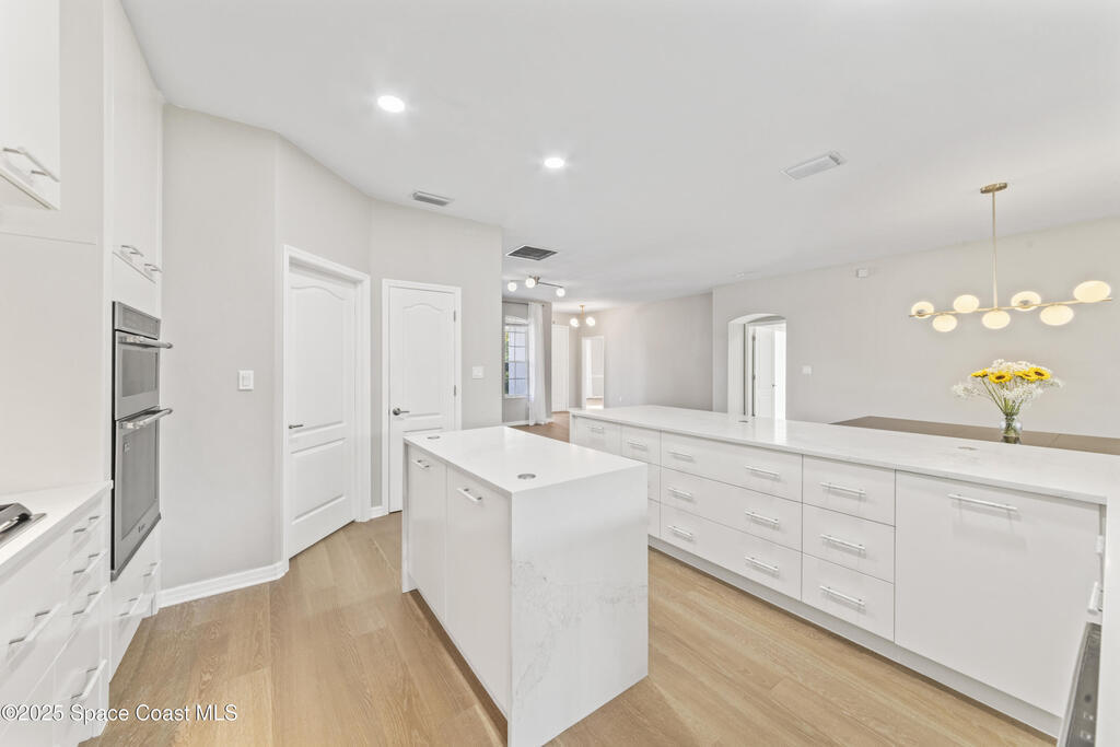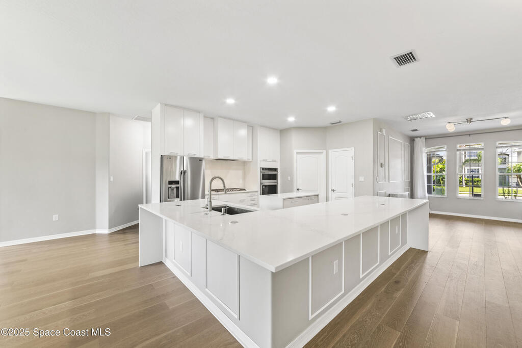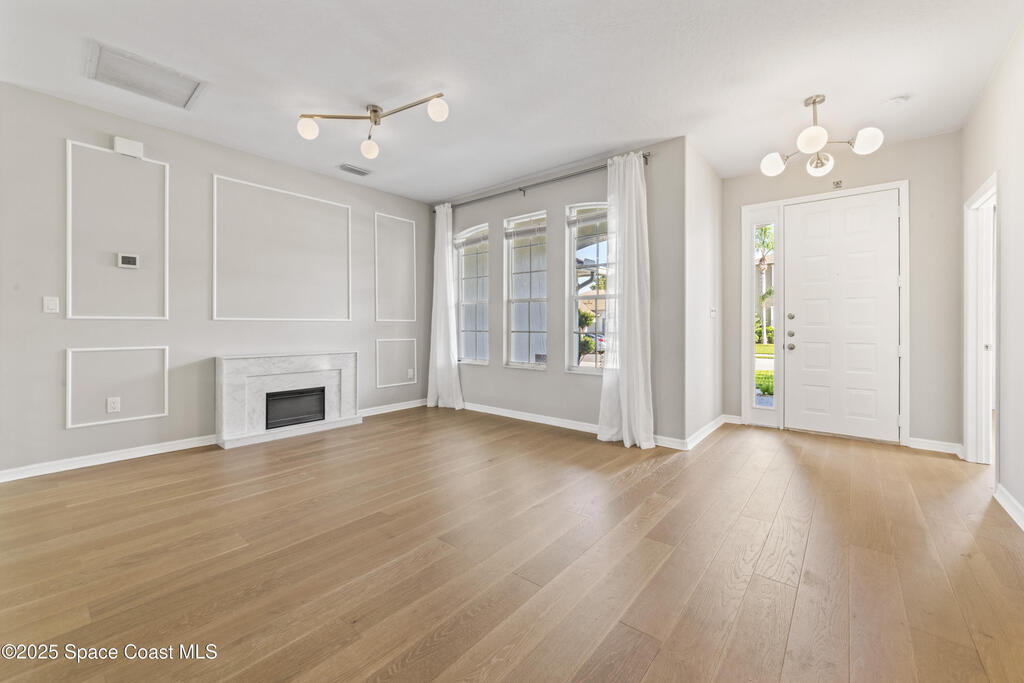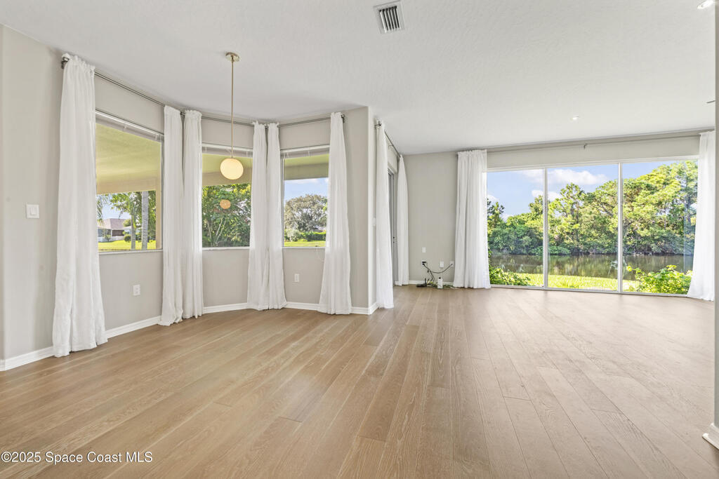 Fully renovated 4 bed/2 bath/3 car garage, 2,570 sq ft waterfront home in peaceful Suntree. Enjoy manicured landscaping & perennial flowers upon entry. Upgrades include wide plank oak hardwood floors, quartz countertops, & soft-close cabinetry. The chef's kitchen features stainless steel appliances, gas cooktop, large pantry, & wrap-around island. Bathrooms have microcement finishes--no grout to clean! The master suite offers a quartz-surrounded jetted tub & walk-in shower. Built-ins provide ample storage throughout. The finished garage includes built-in storage, a workshop area, & extra fridge. Details include wall moldings, electric fireplace, marble handles, & coordinated nickel finishes. Recent roof, water heater, & A/C. Shutters included. Low HOA offers pools, tennis courts, playground, & clubhouse. The lot faces a nature preserve with water views & beautiful sunsets. Enjoy wildlife from your screened porch in this move-in ready retreat, close to top schools & I-95.