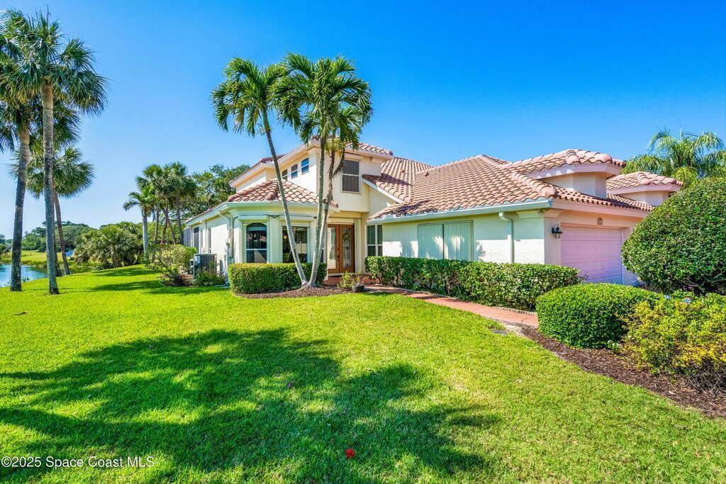 Welcome to Osprey Villas at Aquarina Beach & Country Club - where sweeping golf and water views meet resort-style living. Tucked at the end of a quiet cul-de-sac, this spacious 4BR/3BA villa offers one of the largest floor plans & effortless indoor-outdoor living. Enjoy golden sunsets & tranquil water views from almost everywhere. The main level features vinyl plank flooring, impact windows/sliders, a generous living/dining area, eat-in kitchen, owner's suite with direct access to the pool, guest room/den plus a full bath. Upstairs, 2 bedrooms, a guest bath, loft office, and media/bonus room create a perfect space for hosting family & friends. With a newer roof (2024), 2 car garage & panoramic views throughout, this home is a rare opportunity & ideal seasonal escape.Enjoy beach, golf, tennis, fitness, riverfront amenities in this gated ocean-to-river community offering resort-style living on Florida's Space Coast, where rocket launches & sea turtles hatchlings are part of the view.