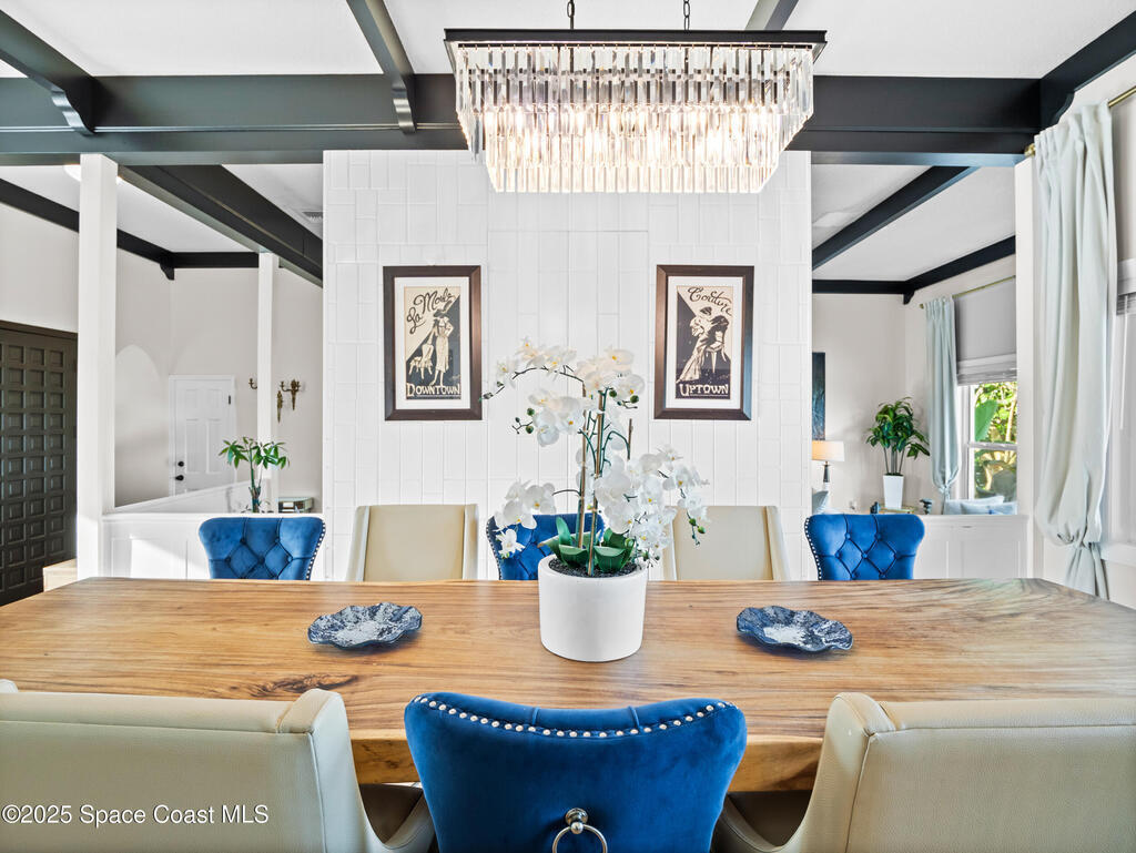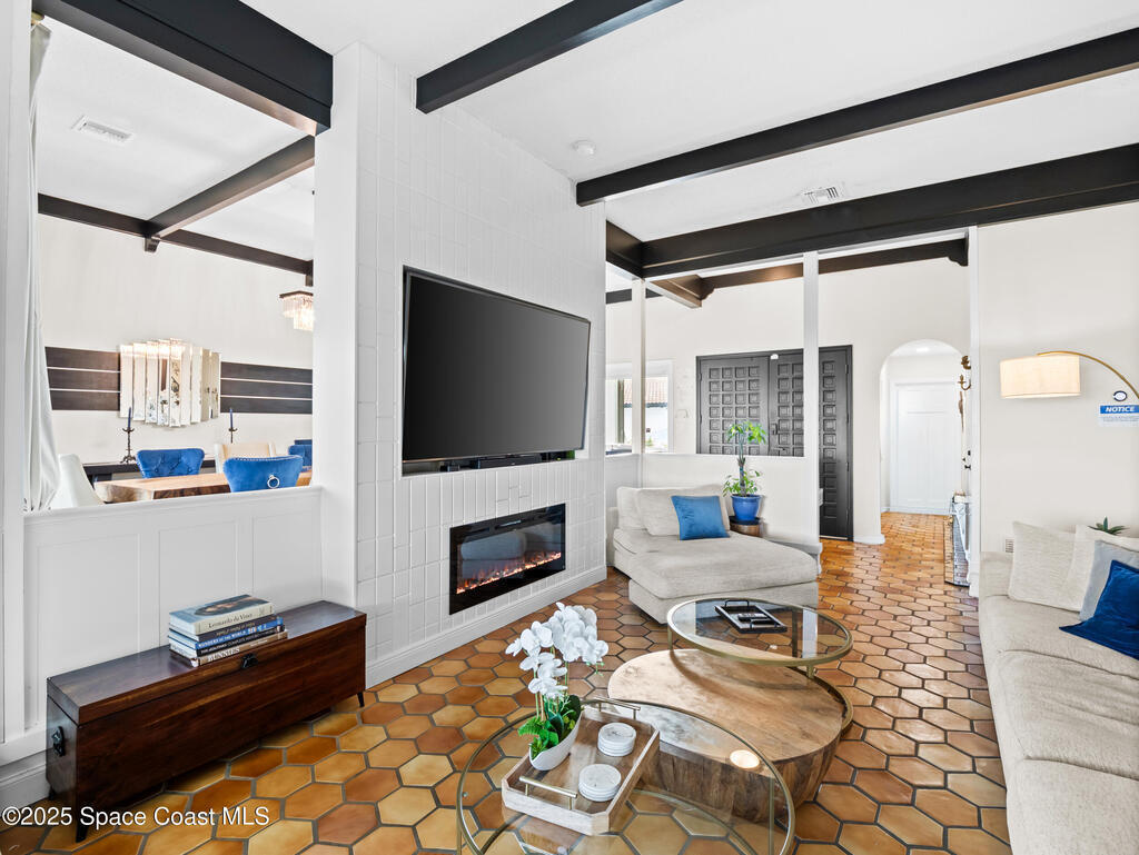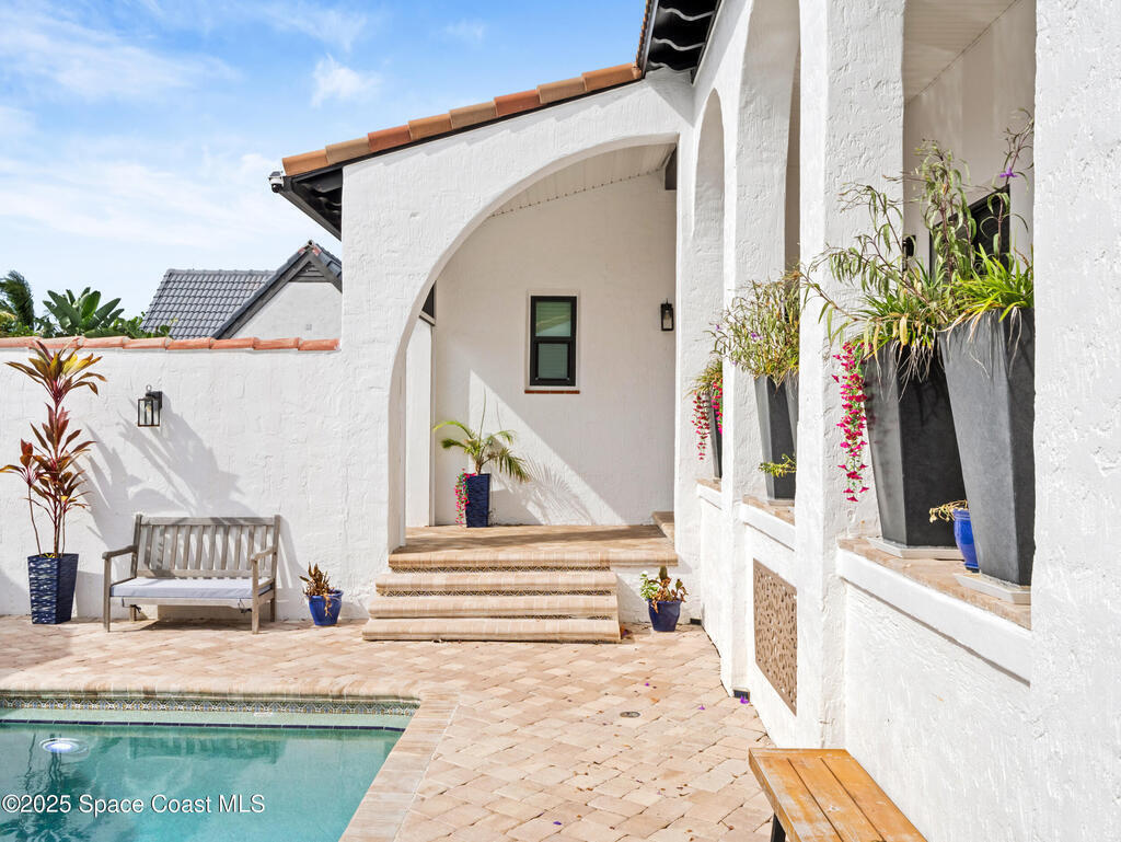 Direct Oceanfront Hacienda with Private Beach Access. Experience the ultimate coastal retreat with this one-of-a-kind Hacienda residence boasting 100 feet of direct ocean frontage in Cocoa Beach. Enjoy sweeping Atlantic views and your very own private beach access just steps from your backyard.The main home showcases timeless architectural design with soaring 10-foot ceilings, rustic wood beams, classic tile floors, and a warm fireplace in the family room. Recent updates include a beautifully renovated kitchen with quartz countertops and refreshed bathrooms, blending modern elegance with enduring charm. A private courtyard pool creates the perfect setting for entertaining, while a detached guest house offers additional space for family, friends, or guests. Currently operating as a licensed Airbnb, this property generates consistent income, making it an ideal combination of personal sanctuary and smart investment.