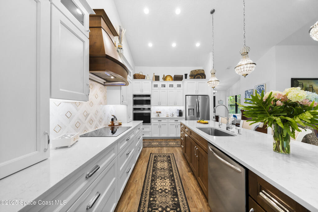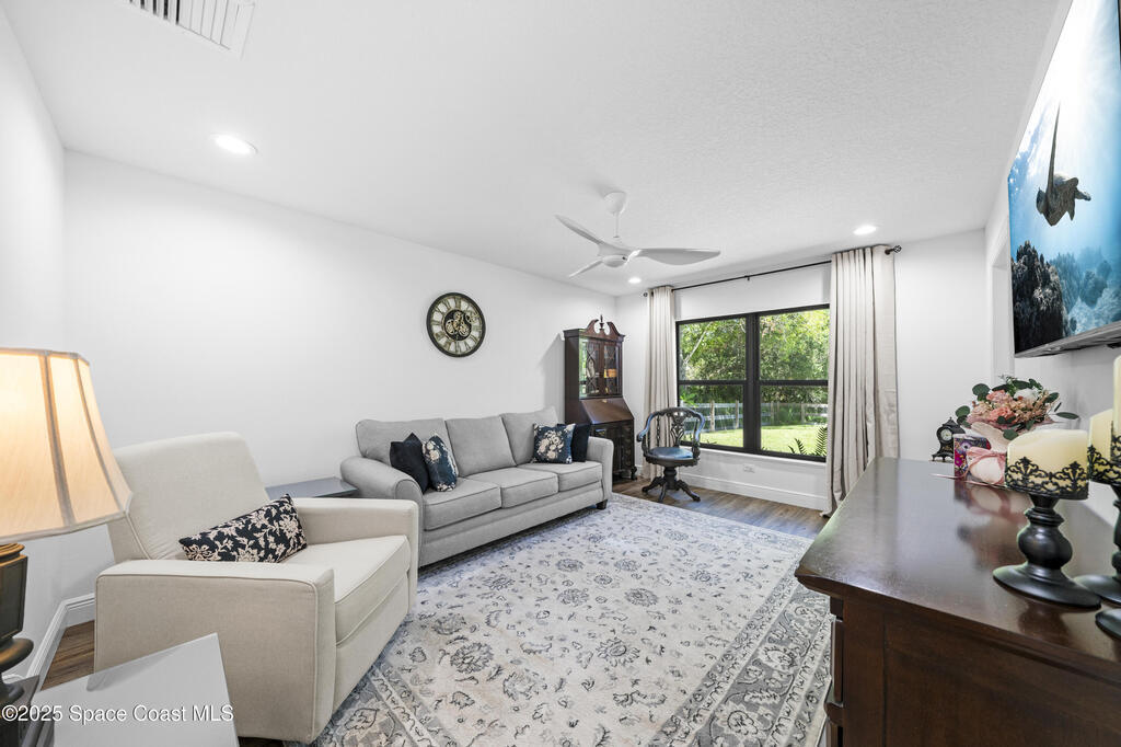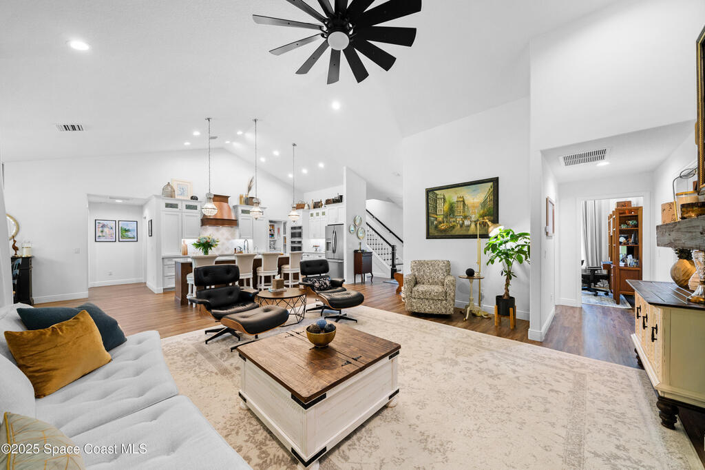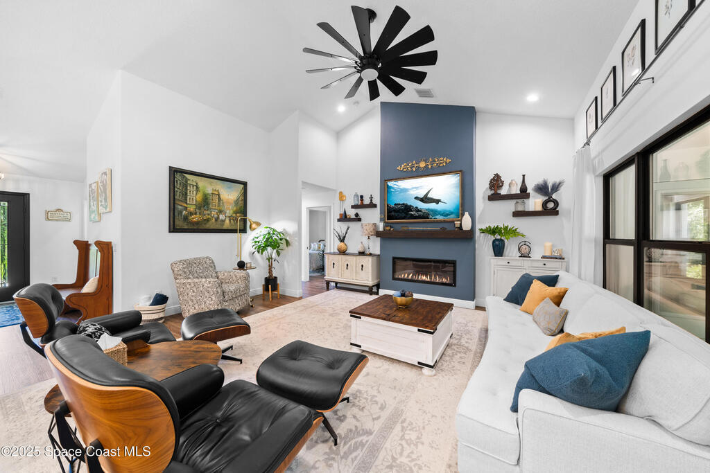 Welcome to this stunning 4-bedroom 4-bathroom(plus office)(plus multi-generational area), modern farmhouse built in 2023, offering 2,901 square feet of thoughtfully designed living space on over half an acre of Florida beauty. Set amid native pines and palms, this home effortlessly combines clean, contemporary lines with natural textures, making it equally suited for relaxed family living and elegant entertaining. Step inside the expansive great room where vaulted ceilings, rich wood-look flooring, and a dramatic fireplace create an airy, welcoming ambiance. The gourmet kitchen is a chef's dream, featuring an oversized quartz island, induction stove top, custom range hood, and abundant cabinetry. A dedicated office with French doors provides a private and light-filled workspace for working from home or studying. Designed with flexibility in mind, the home features a true multi-generational suite with a private bedroom, full bath, and its own living room. Hurricane Windows.
