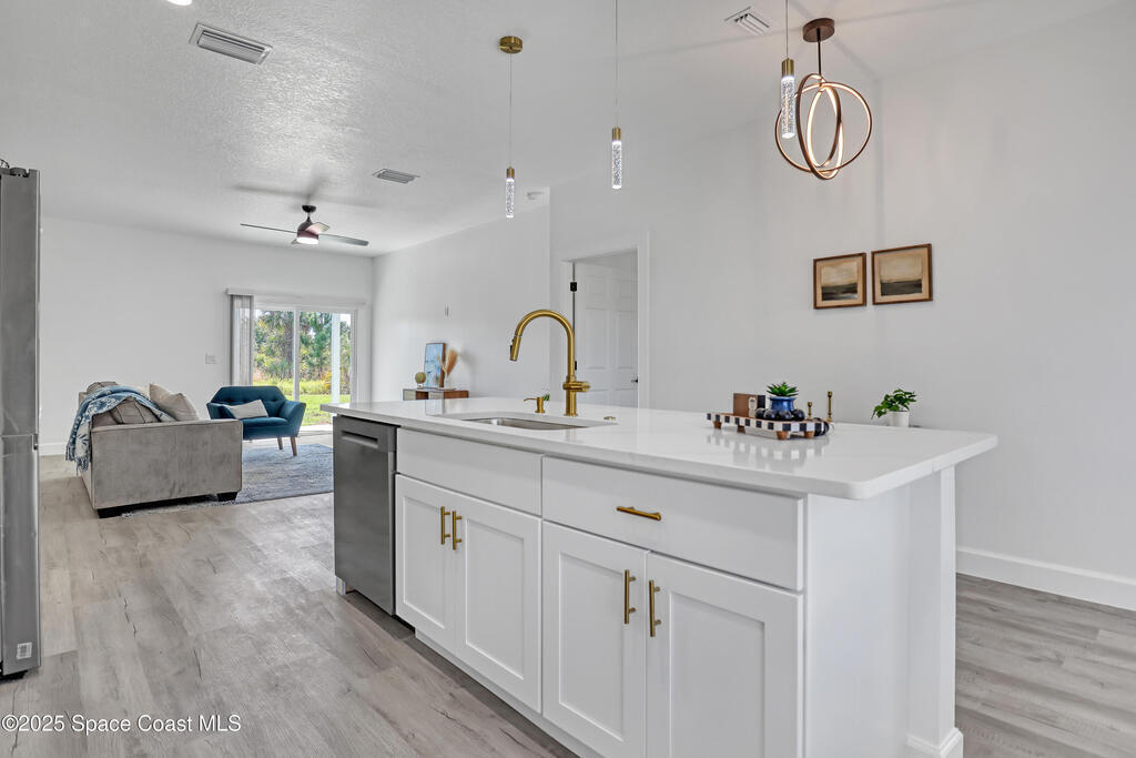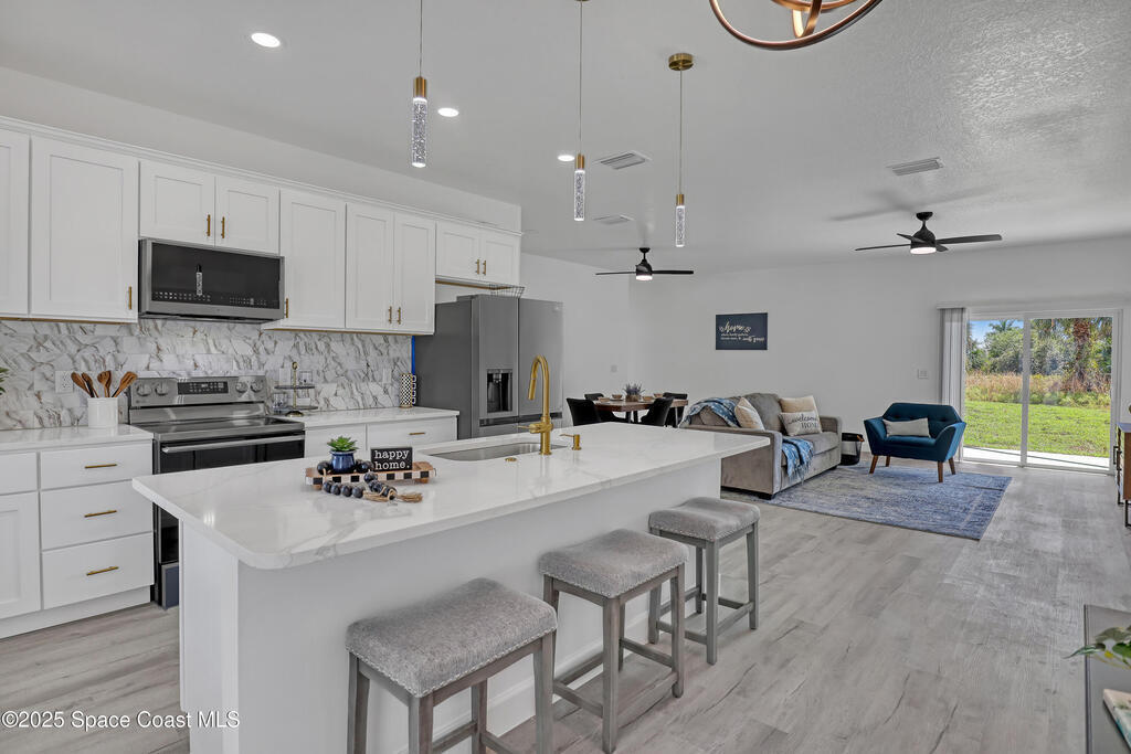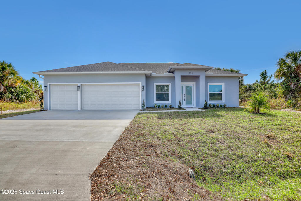 Buyer CLOSING COST CONCESSIONS AVAILABLE!!! Welcome to this beautifully crafted, brand-new single-story home. With 4 spacious bedrooms and 2 full baths 3CAR GARAGE!, this home is perfect for the growing family or those looking to retire in comfort. Full 3-car garage -- a rarity in new construction at this price point. High-end finishes: vinyl plank flooring, tiled showers, all white plywood cabinetry, and a stylish kitchen backsplash. Impact-rated windows and doors provide peace of mind and durability. 10-foot ceilings elevate the open-concept interior space, creating a light and airy feel. Split-bedroom design with an open floor plan gives privacy and flow for everyday living as well as entertaining. Garage floor has epoxy!! Excellent location just minutes away from the Bayside Lakes area, key amenities including a supermarket (Publix), high school and more