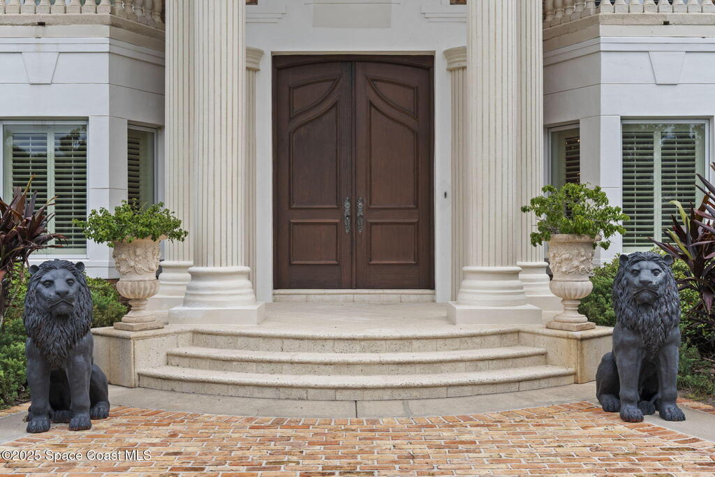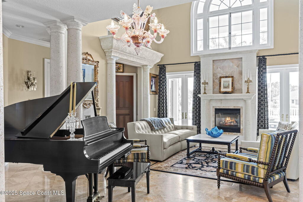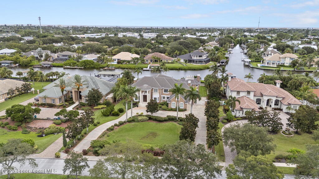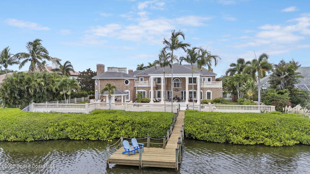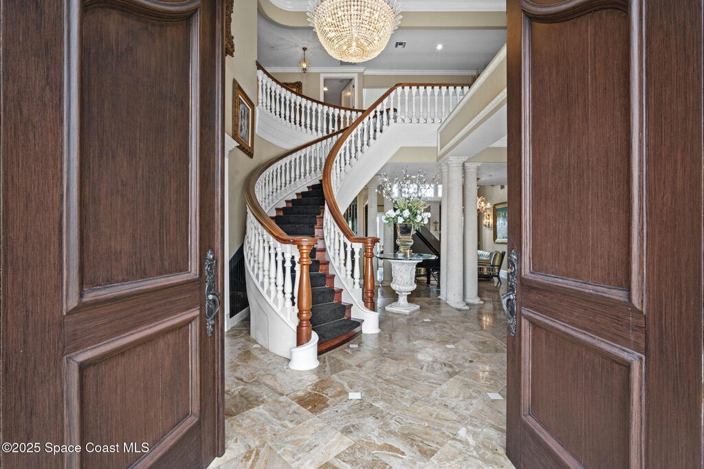A opportunity to own a home in the most exclusive neighborhood on the Space Coast does not come around often. Lansing Island is home to some of Florida's most prestigious waterfront estates. This original owner residence, set on .83 acres along the coveted south side of the island, is now being presented to the market for the very first time. The arrival is unforgettable. Nearly 30 foot ceilings rise above the grand foyer where marble floors, a sweeping staircase, and a dazzling chandelier set the tone for timeless elegance. Just beyond, a breathtaking room is filled with natural light pouring through an antique window salvaged from the historic Brevard Hotel, a piece of history that now gives this estate its warm and inviting character. The layout offers both scale and comfort with six bedrooms, seven bathrooms, a private office, and a sprawling downstairs master suite in its own wing. Nearly every bedroom has its own private bath, and select guest suites open to large balconies with