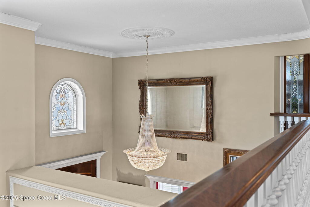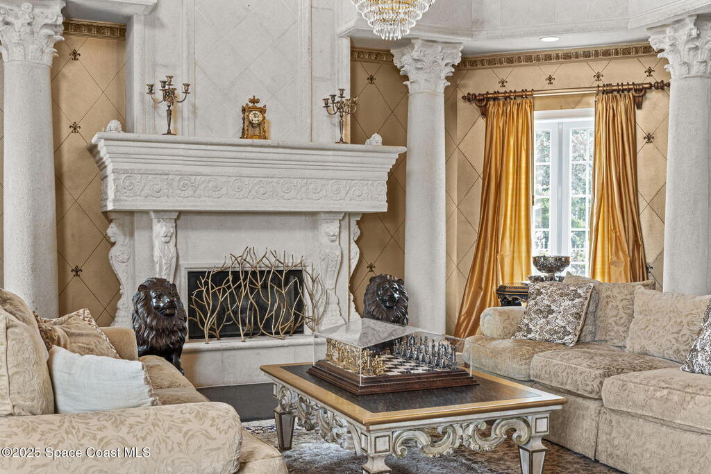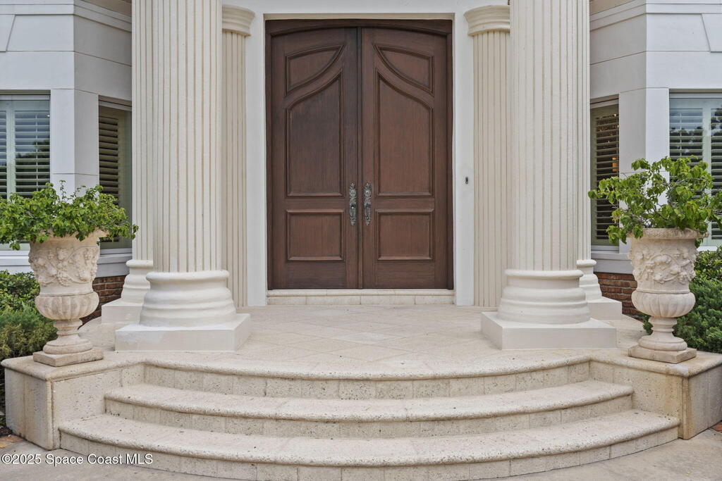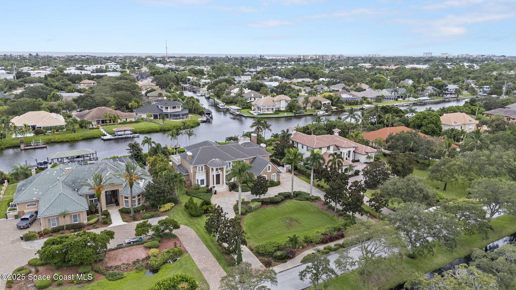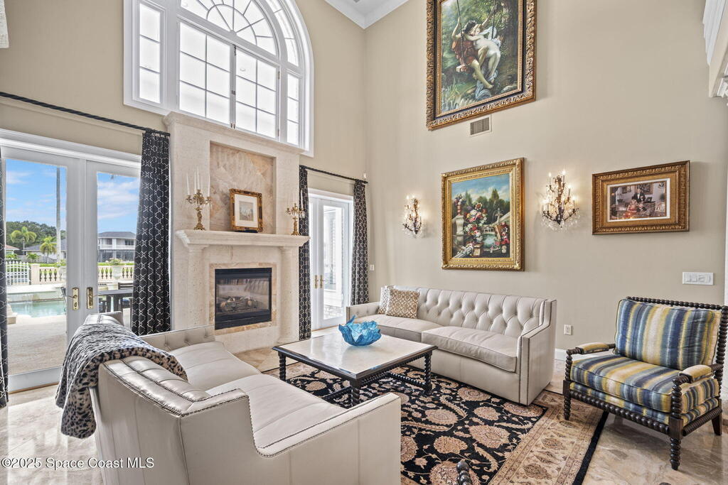 A opportunity to own a home in the most exclusive neighborhood on the Space Coast does not come around often. Lansing Island is home to some of Florida's most prestigious waterfront estates. This original owner residence, set on .83 acres along the coveted south side of the island, is now being presented to the market for the very first time. The arrival is unforgettable. Nearly 30 foot ceilings rise above the grand foyer where marble floors, a sweeping staircase, and a dazzling chandelier set the tone for timeless elegance. Just beyond, a breathtaking room is filled with natural light pouring through an antique window salvaged from the historic Brevard Hotel, a piece of history that now gives this estate its warm and inviting character. The layout offers both scale and comfort with six bedrooms, seven bathrooms, a private office, and a sprawling downstairs master suite in its own wing. Nearly every bedroom has its own private bath, and select guest suites open to large balconies with