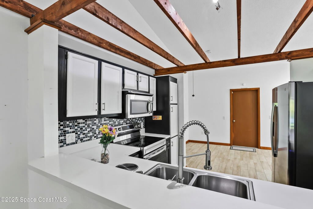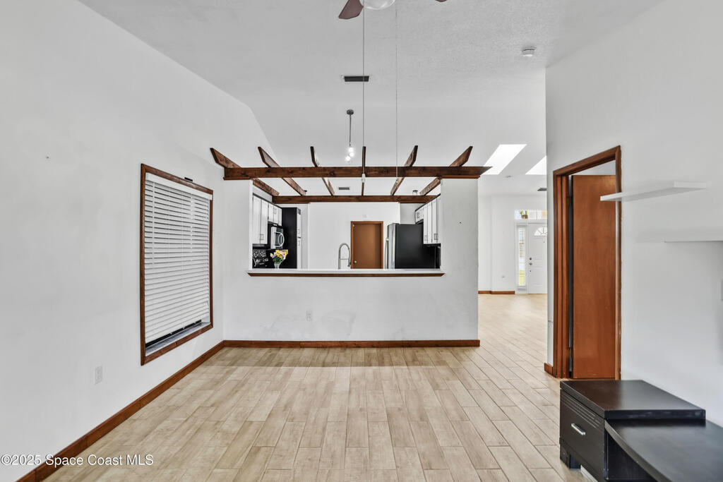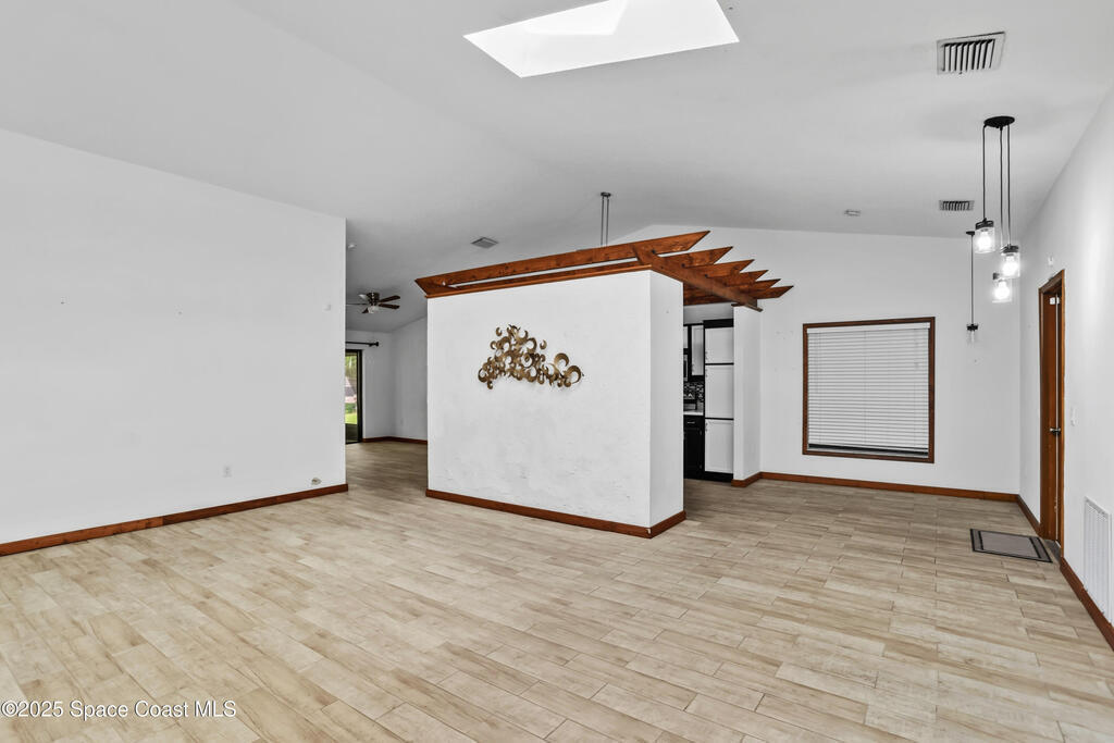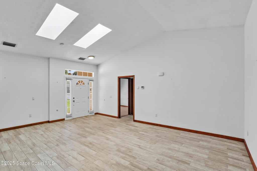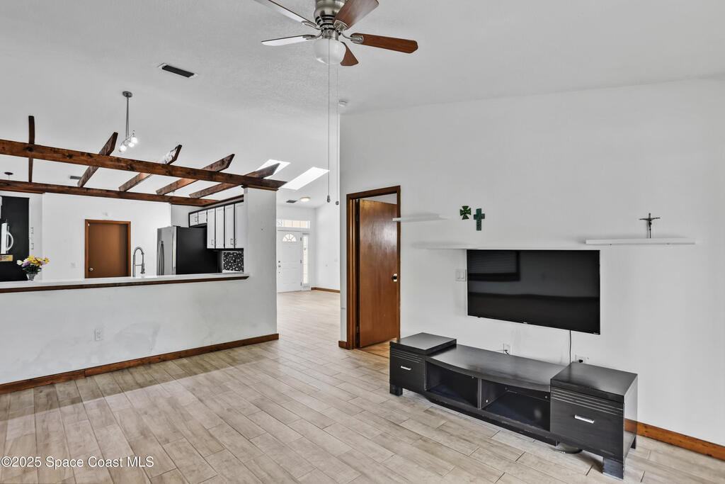 Your waterfront oasis awaits!! This 3 bedroom, 2 bathroom house boasts an open/split floor plan, vaulted ceilings with skylights, and tons of potential to make this home your own!! Enjoy your morning coffee, feed the ducks, or catch an evening sunset on your back porch. All appliances convey- including a wine fridge. Roof 2020You don't want to miss this opportunity to be in the heart of Melbourne!!! Close to shopping, schools, and the beach!!!!