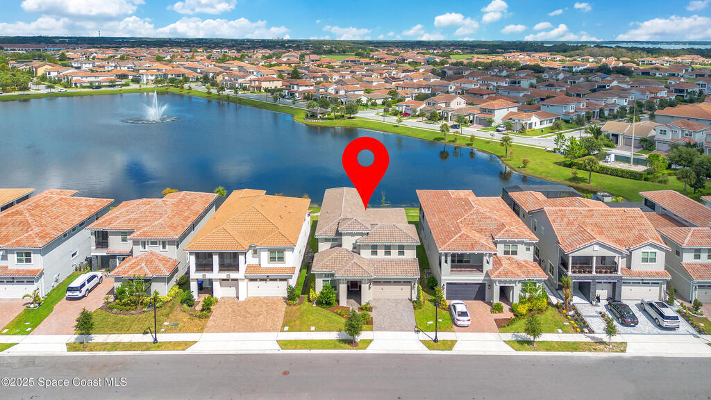 Welcome to luxury living in the heart of Lake Nona's most coveted gated community which includes the Eagle Creek Golf Club. This beautiful home has plenty of room to live and entertain. The chef's kitchen contains a large kitchen island, Quartz countertops and walk in pantry. The open concept living area is perfect for entertaining. The breathtaking view of water outside the expansive sliders lets lots of natural light into the living room, kitchen and dining. The first floor has a huge primary bedroom with large windows with a fabulous view of the water. The primary bathroom includes double sinks, and a huge walk in shower with 2 showerheads. The first floor also has a guest bedroom, guest bathroom and a mudroom. The second floor has 3 bedrooms and 2 bathrooms. The media room and covered porch has fabulous views of the water and fountain. The garage has a separate workshop. Close to Lake Nona, Medical City, theme parks, Orlando airport, shopping, dining and highly rated schools.