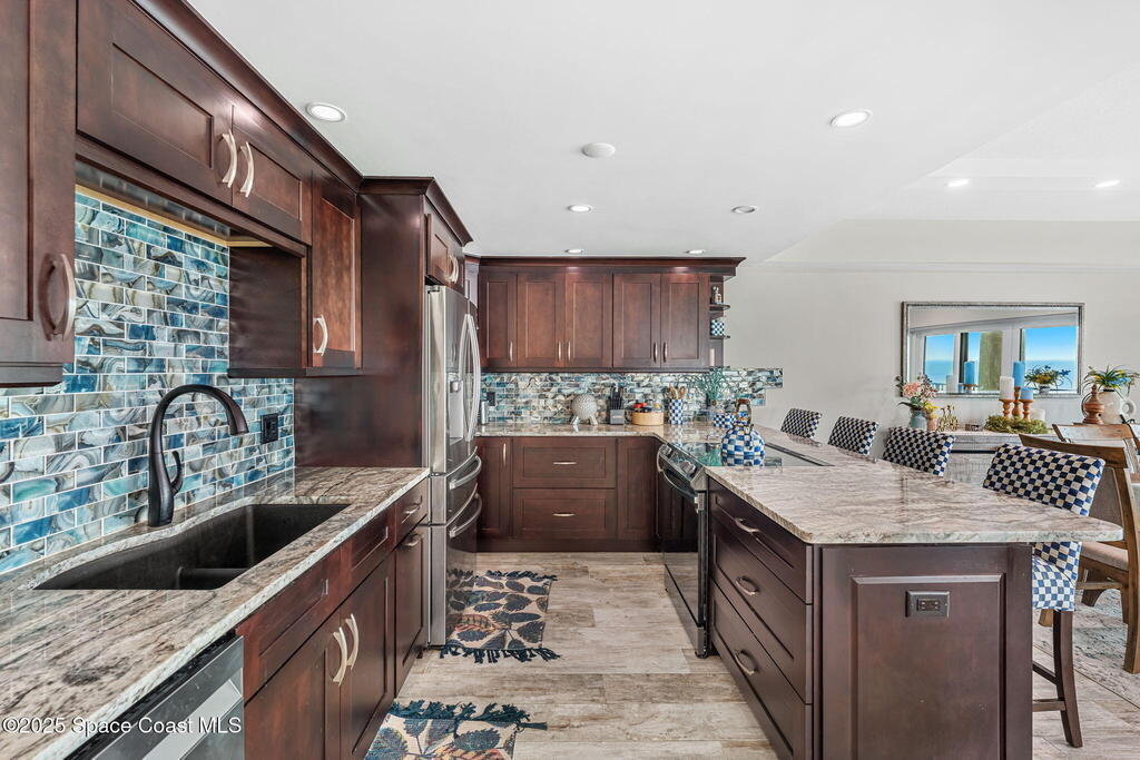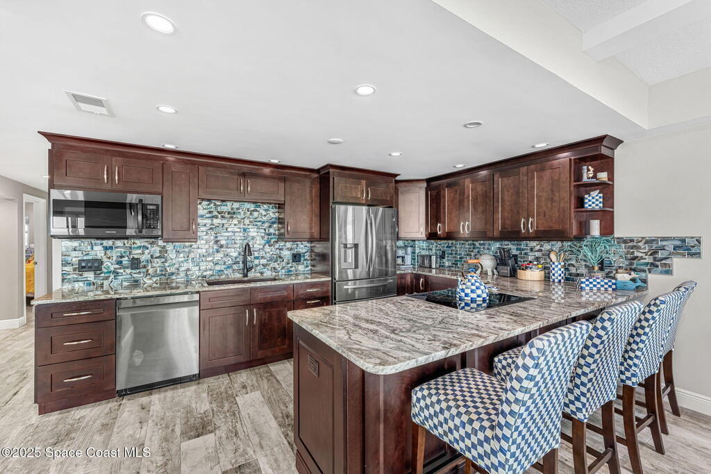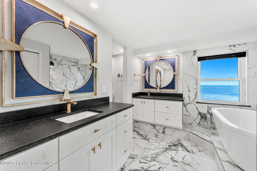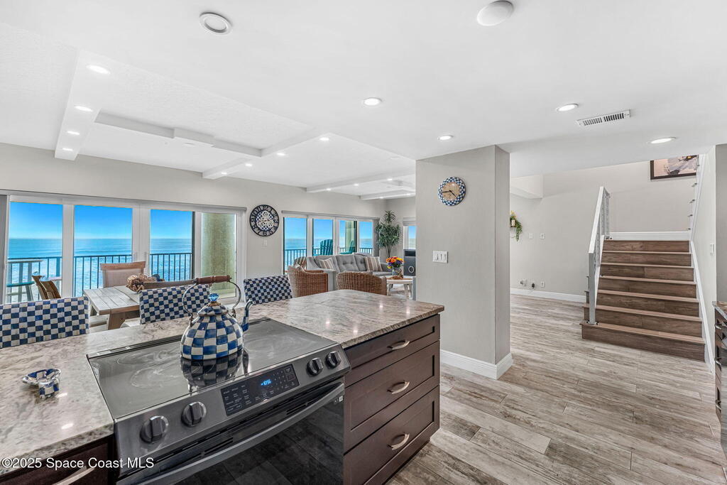 Luxury on a grand scale defines this rare two-story oceanfront penthouse, a showcase of 2,500 sq ft, 5 bed, 3 spa-inspired bath & 4 private balconies framing unforgettable Atlantic to river vistas. The main level impresses w/ soaring 9 ft ceilings, an uncommon feature that amplifies space & light, while showcasing a chef's kitchen & wine bar, where quartz counters, solid wood cabinetry & a glass tile backsplash create a striking centerpiece. Upstairs, a coffee bar serves 3 bed, highlighted by a private oceanfront suite w/ soaking tub. Every detail elevates the home, from impact glass & hurricane shutters to Italian tile, wide plank wood floors & custom window treatments, with both A/C units replaced in 2024. Lifestyle amenities rival a resort w/ an oceanfront pool & spa, secure lobby, elevators, garage parking, & a car wash station. Adding unmatched value, HOA fees are assessed per unit rather than by sq ft, an exceptional savings for the largest residence in the building.