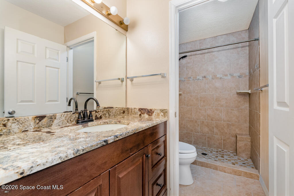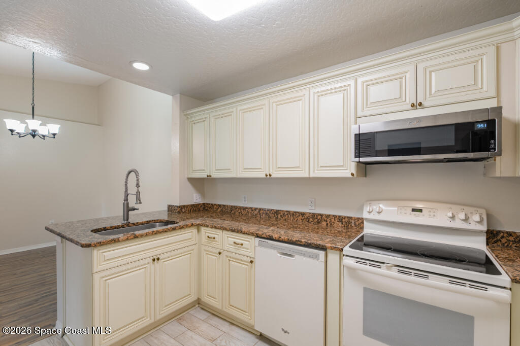 Great location at a great price! This move-in ready 2BR/2BA corner condo features vaulted ceilings, a skylight, and a bright split floor plan with no wasted space. The kitchen shines with wood cabinetry, quartz countertops, and newer appliances. Fresh interior and exterior paint, updated baths, spacious bedrooms, and oversized walk-in closets with attic storage add comfort and style. Major updates include a 2024 water heater and roof, plus a 2019 AC--buy with confidence. Relax on the screened-in patio overlooking a large green space, and enjoy a private courtyard perfect for grilling and a fire pit. Amenities include two pools and clubhouses. Close to EFSC, beaches, Publix, Walmart, Orlando attractions, and KSC jobs. A fantastic opportunity for first-time buyers, downsizing, or investment.