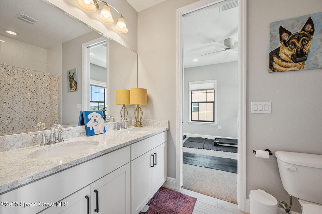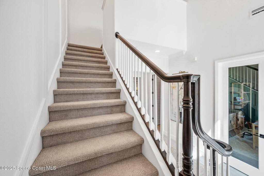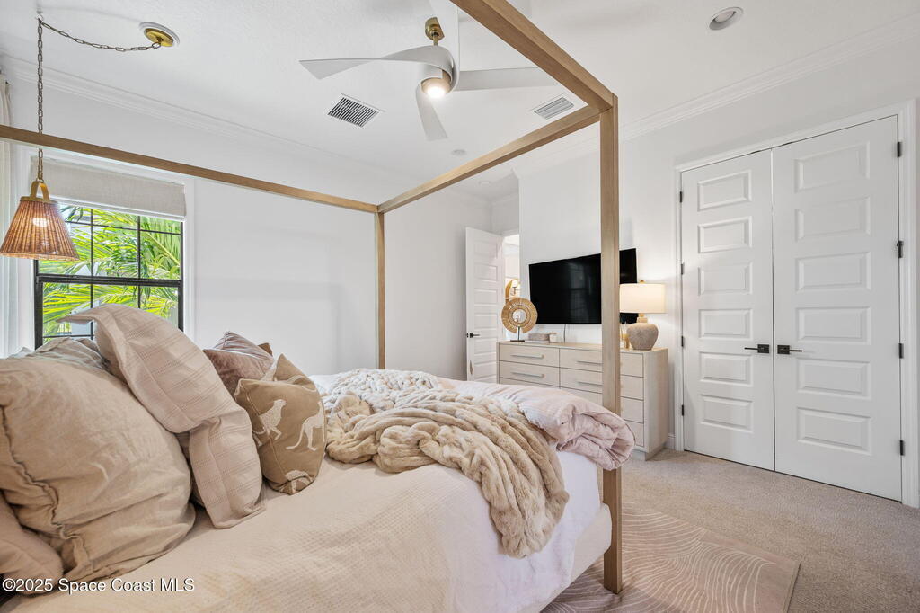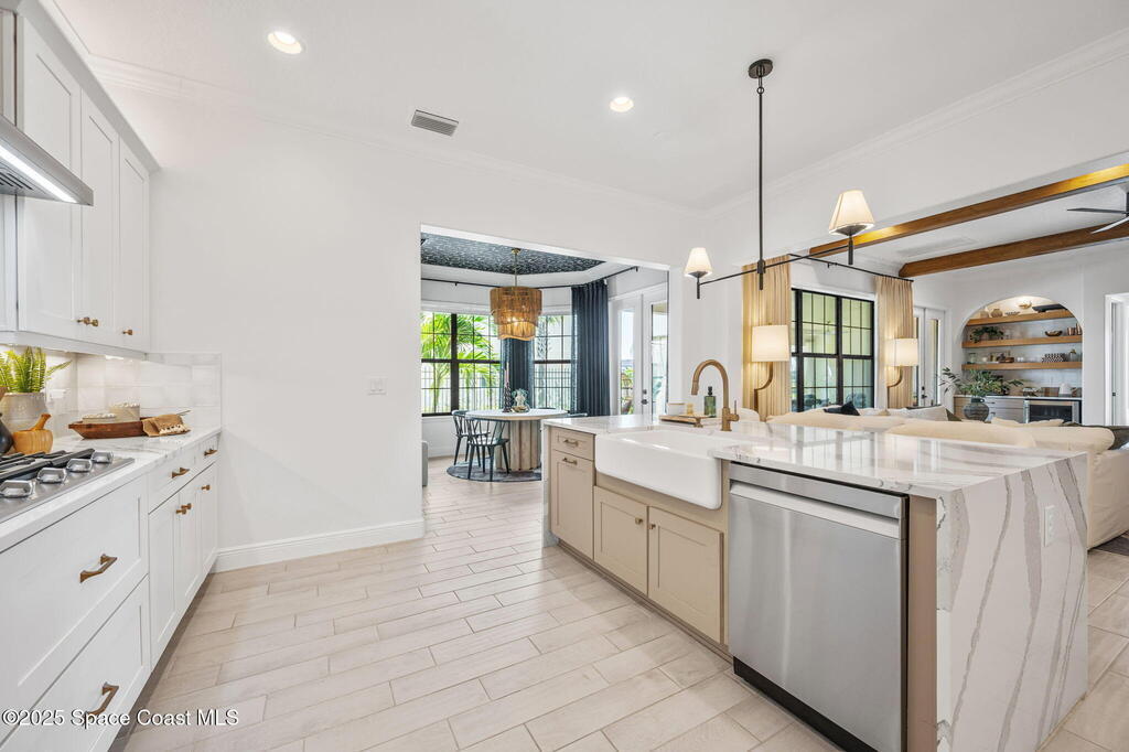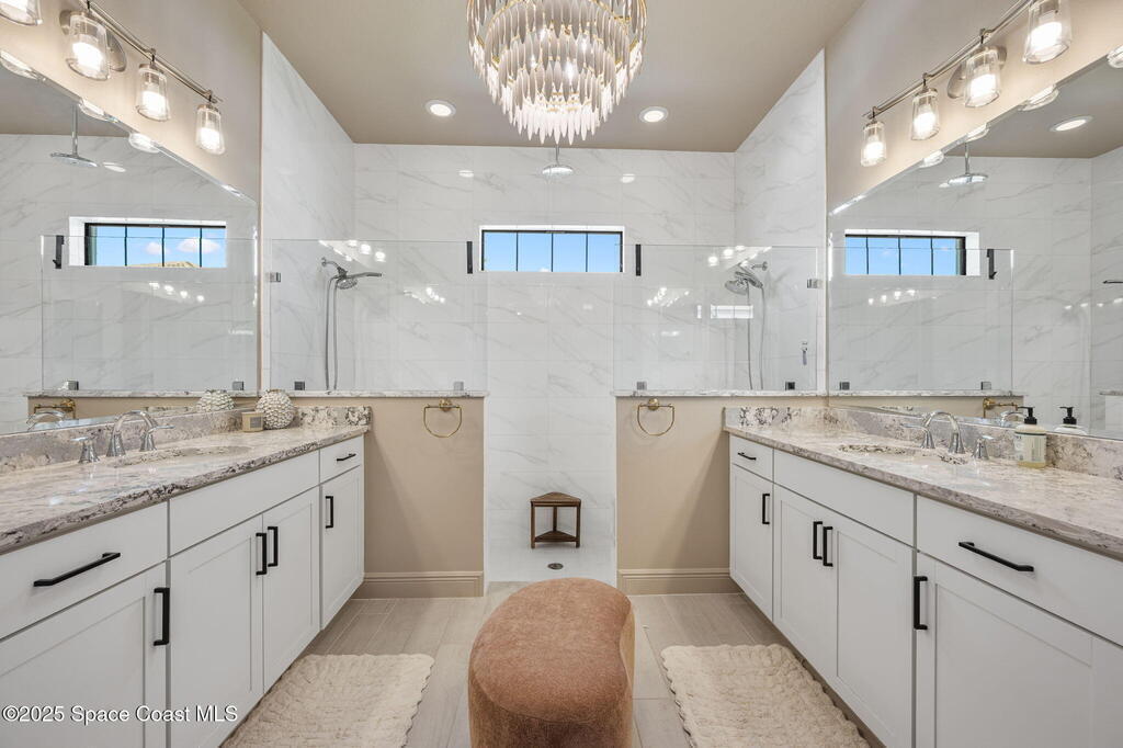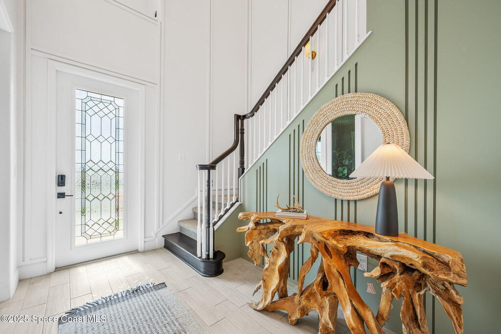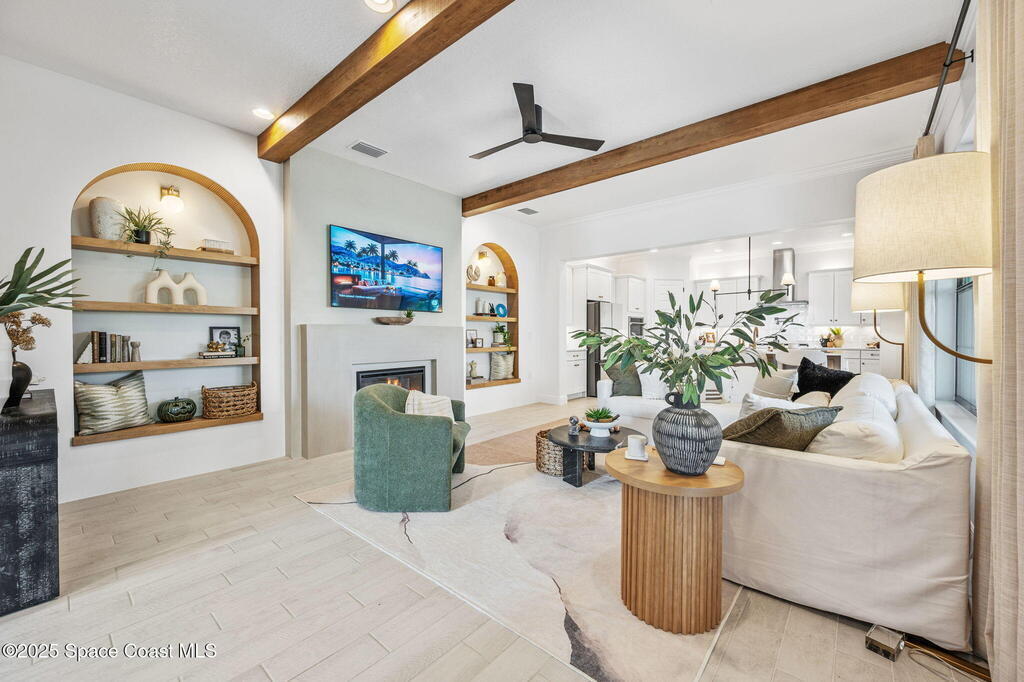 MOTIVATED SELLER ✨ Welcome to 2444 Addison Drive -- Where Luxury Meets Lifestyle! ✨ This 5-bedroom, 5-bathroom masterpiece with a dedicated office in the coveted Addison Village community of Viera redefines modern luxury living. With over $85,000 in upgrades after purchase, no detail has been overlooked. Step inside and be captivated by the open-concept design featuring soaring ceilings with exposed wood beams, an elegant electric fireplace, and a custom beverage bar with wine fridge -- perfect for entertaining. The chef's kitchen is a showstopper with quartz countertops and a dramatic waterfall island, gas range with pot filler, farmhouse sink, large walk-in pantry, and eat-in dining area. The master suite is privately tucked on the main floor, offering dual closets including a massive walk-in, dual vanities, and a spa-like walk-in shower. Upstairs, two separate staircases lead to private guest retreats, including a Jack-and-Jill bathroom connecting two spacious bedrooms.