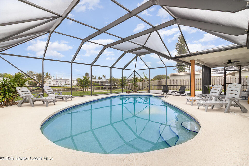 Beautifully updated canal front pool home in the ideal location! 3 bedrooms 2 baths with an open plan. Updated quartz countertops in the kitchen scream beauty. Enjoy breezy evenings on the waterfront overlooking your sparkling screened in pool. All new paver driveway and patio with new irrigation and landscaping. Brand new seawall and dock. Navigable canal leads directly to the Banana River. No fixed bridges! Updated electrical panel and a complete plumbing re pipe! Did we mention the new Trane AC system? Gas appliances and water heater bring maximum efficiency! For additional piece of mind throw in new hurricane shutters and a garage door! Move in and start enjoying all world famous Cocoa Beach has to offer. . A rated schools are walking distance Short bike ride to the beach, downtown restaurants and bars. Not ready to retire? Would make an excellent short term rental investment! Come discover the salty life now!