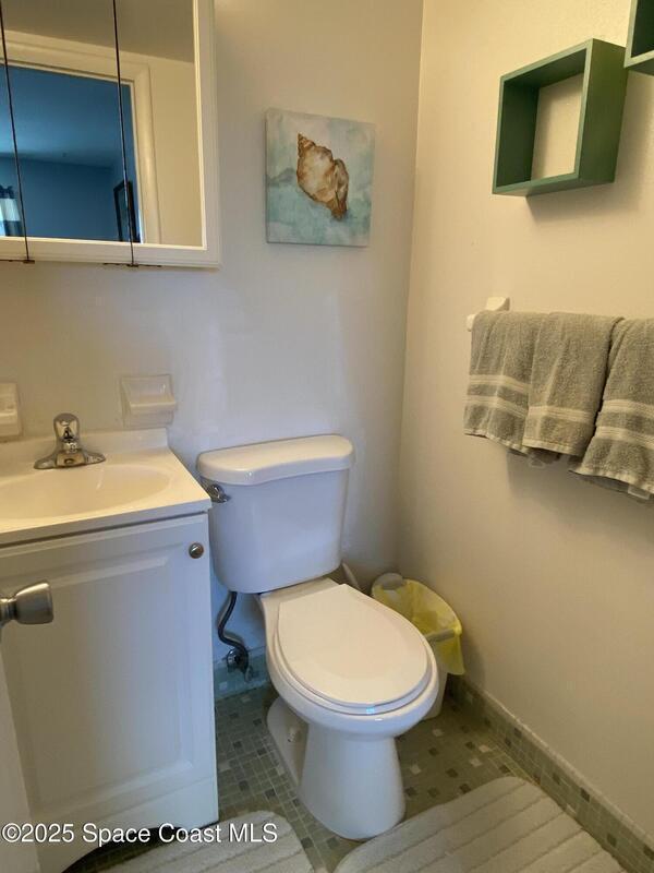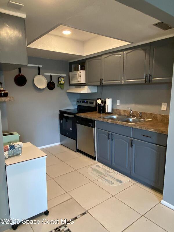 This charming top floor end unit overlooking the sparkling pool is wrapped in sunshine from three sides. Fully furnished and move-in ready, it is ideal as your full-time home, weekend escape, or a vacation rental. The primary suite features a roomy walk-in closet and a convenient attached half bath. The unit is just steps away from the laundry room and stairway exit. Great location near the beach, Port Canaveral and the Beachline Expressway (528) for easy access to the airport and various attractions in Orlando.