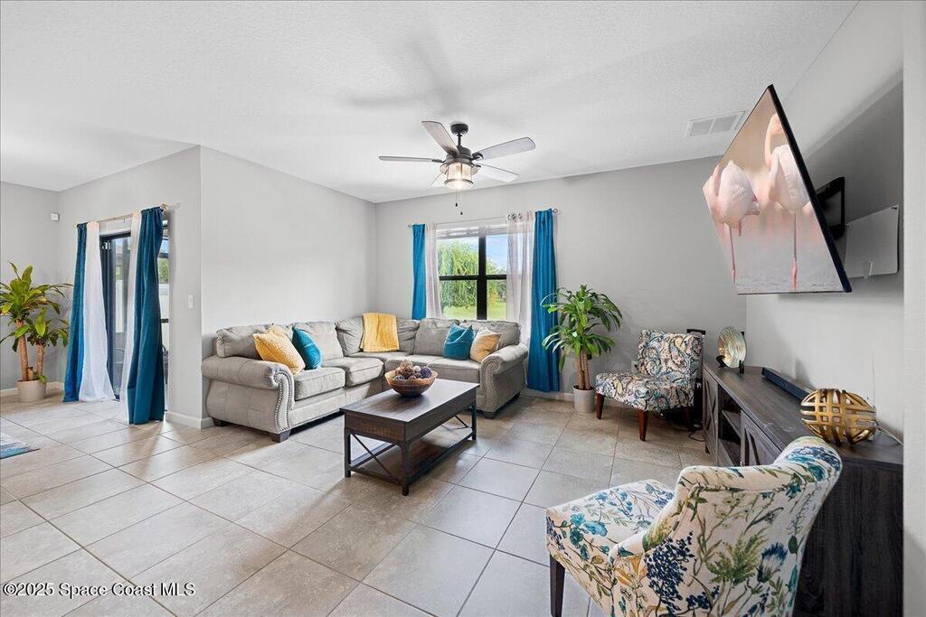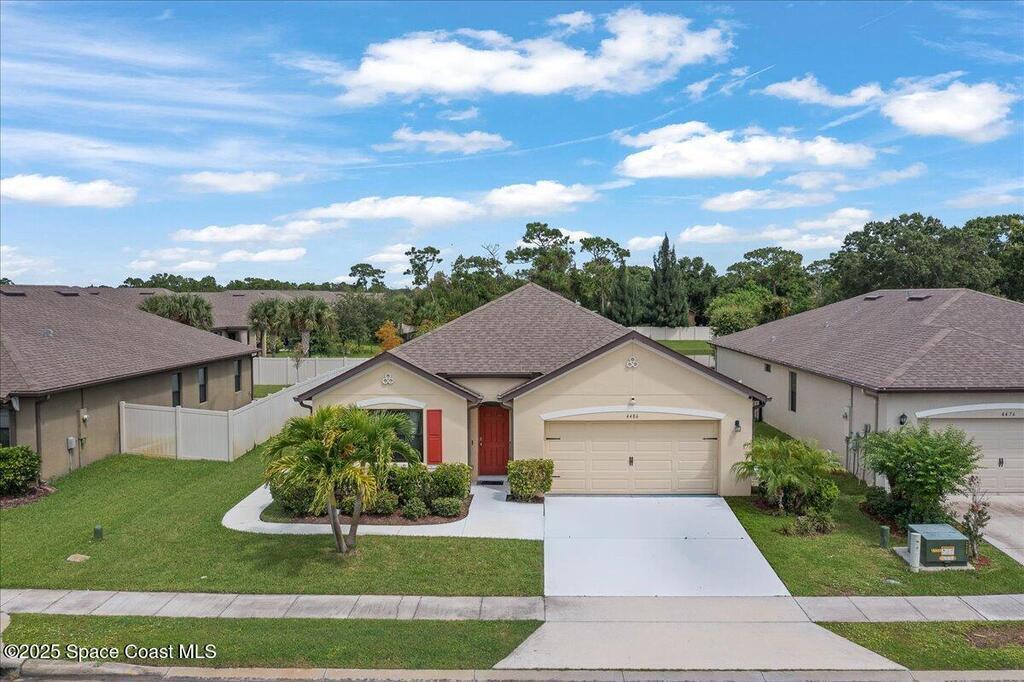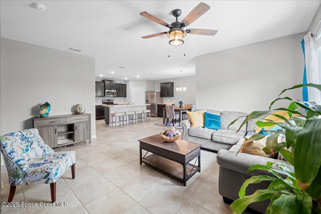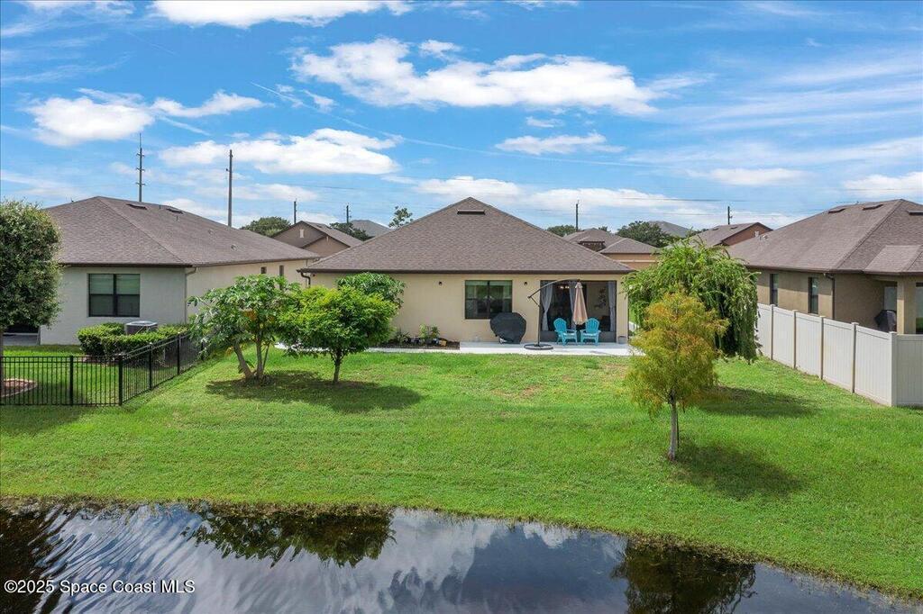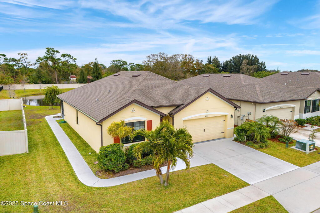 A meticulously maintained 2019 Built 4-bedroom, 2-bathroom residence offers the perfect blend of modern elegance and functional design.Filled with natural light, This spacious living area flows effortlessly into the gourmet kitchen, stainless steel appliances, a large island, and a convenient breakfast bar. A nearby dining nook provides the perfect setting for casual meals while overlooking your water view.Upgraded flooring 2021, A newly added concrete walkway along the side of the entire home and extended concrete back patio 2023, Screened Patio 2022, Smart Home Technology & security cameras. Playground & walking path in community. Conveniently located just minutes from I-95, this home provides easy access to shopping, dining, and top-rated schools, as well as Melbourne's vibrant downtown and pristine beaches. Schedule your private tour ooday and discover what makes this home truly special!
