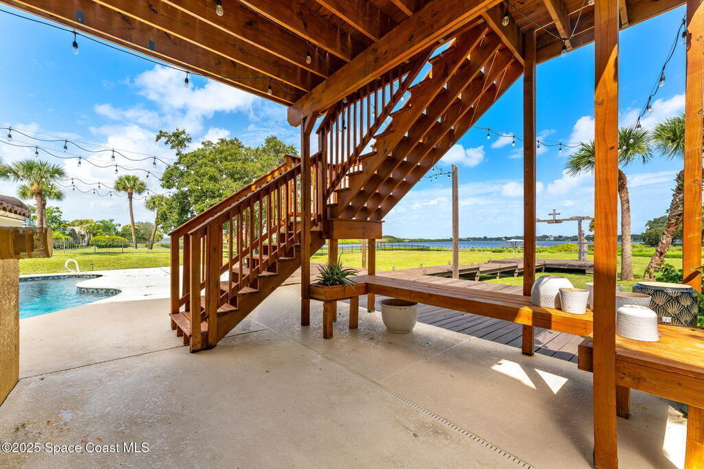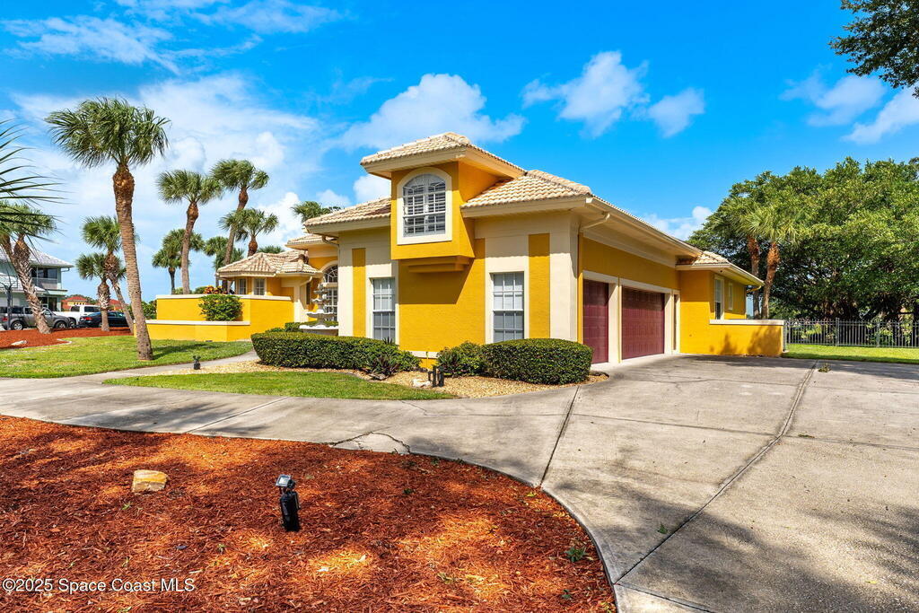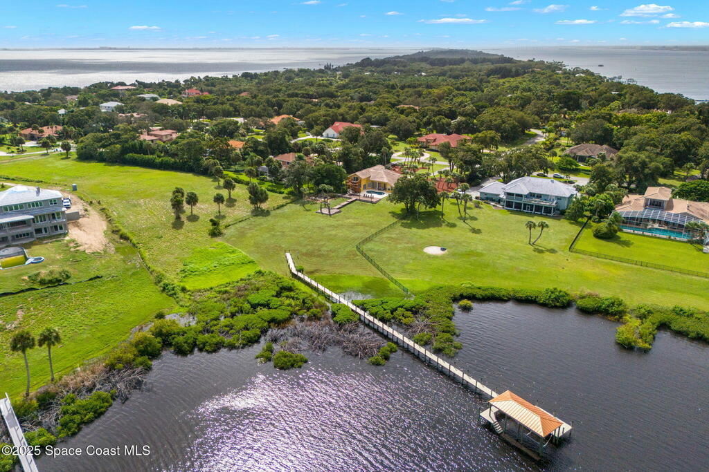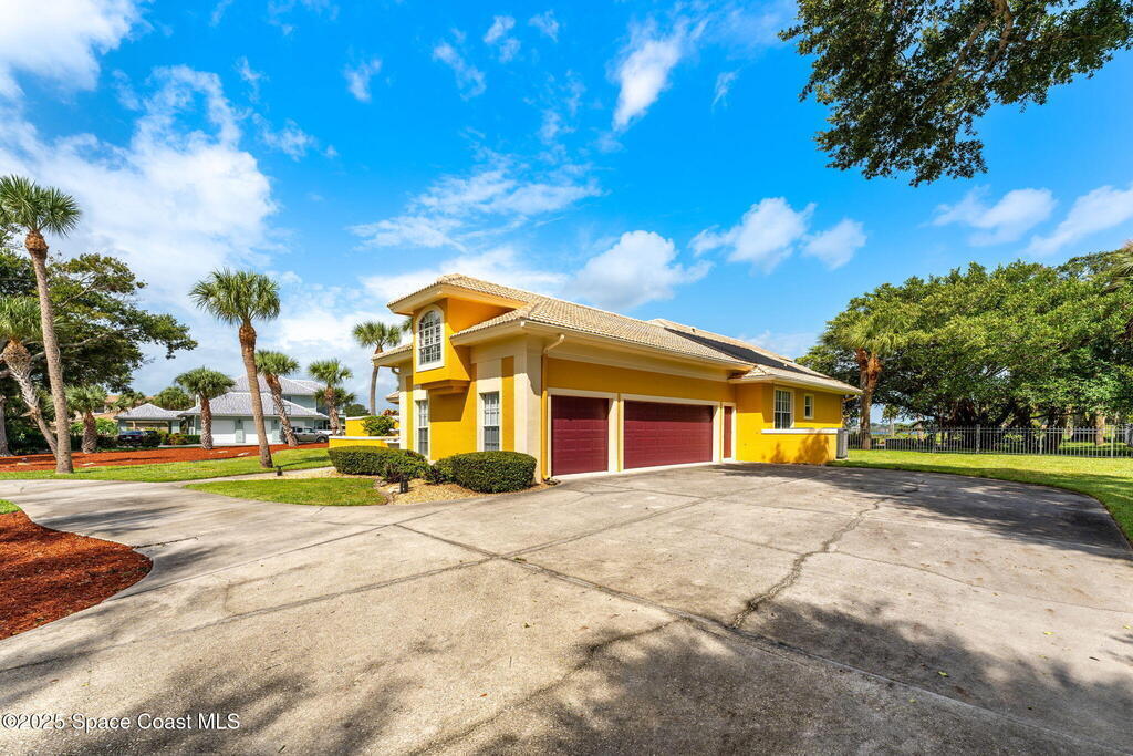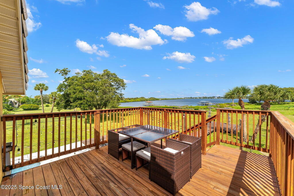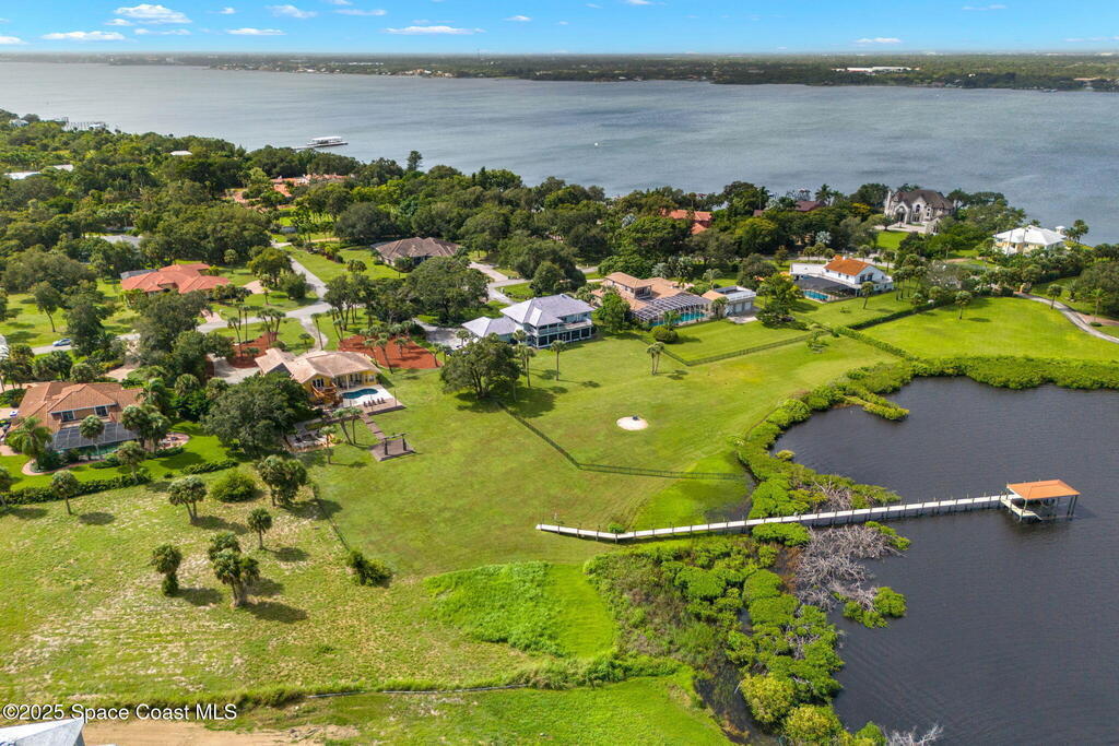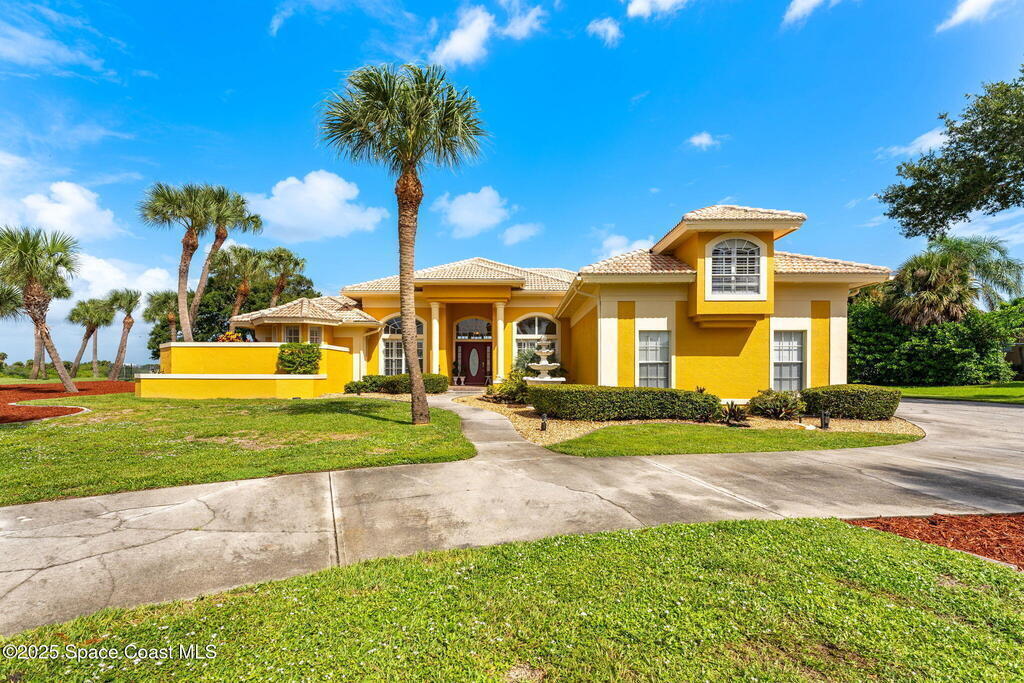 Luxury living awaits you in this one-of-a-kind Merritt Island Estate. Boasting over 2 acres of property, this pool home is situated on Honeymoon Lake, providing breathtaking views and direct access to the Indian River. The owner's suite is complete with double walk-in closets, separate tub & shower, and dual vanities. Tall white cabinets, granite countertops & backsplash, and stainless steel appliances give the kitchen a bright and sleek look while the breakfast bar, kitchen island, and ample countertops make it perfect for hosting. Two separate upstairs areas provide flexibility for your lifestyle, allowing you to use them as extra bedrooms, gyms, or bonus rooms. Whether from the balcony or from the solar-heated pool, the backyard's northern exposure allows for stunning views of sunrise and sunset. With 2018 barrel tile roof, two new HVACs, and a boat lift already in place, this home is truly turnkey, all you need to do is pull up in the boat!