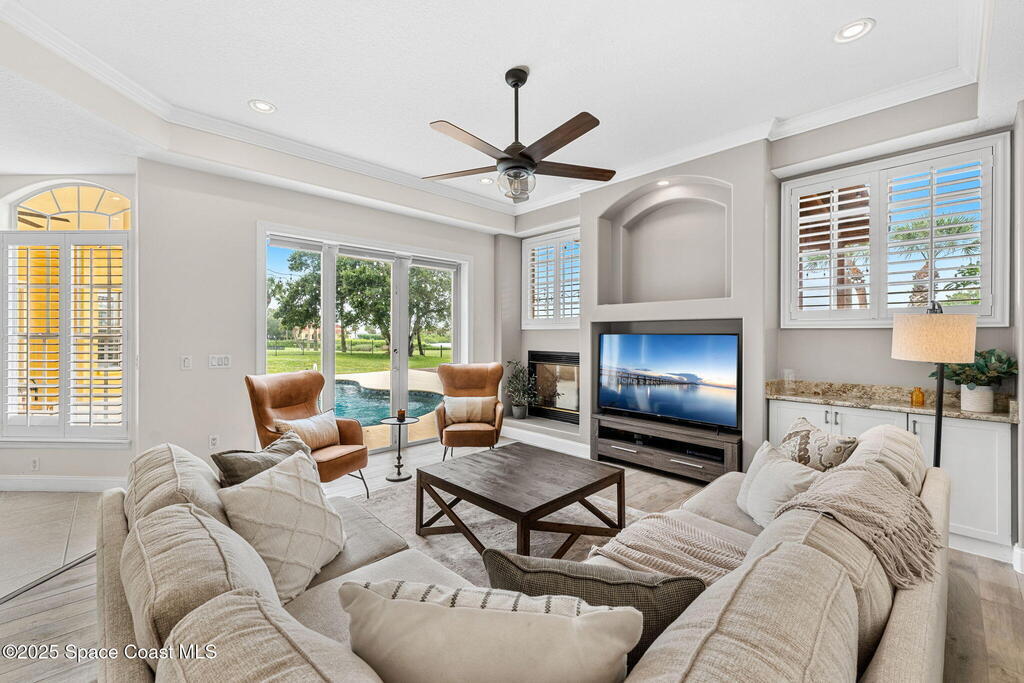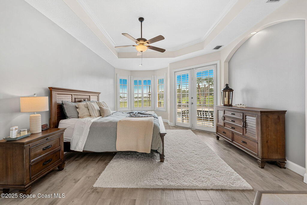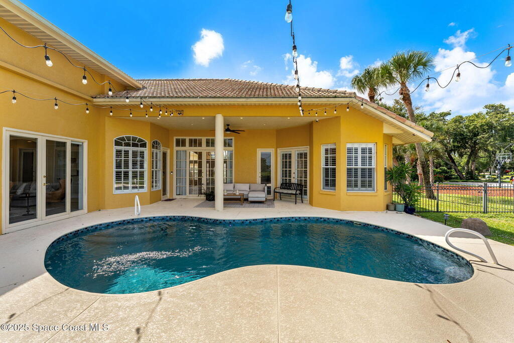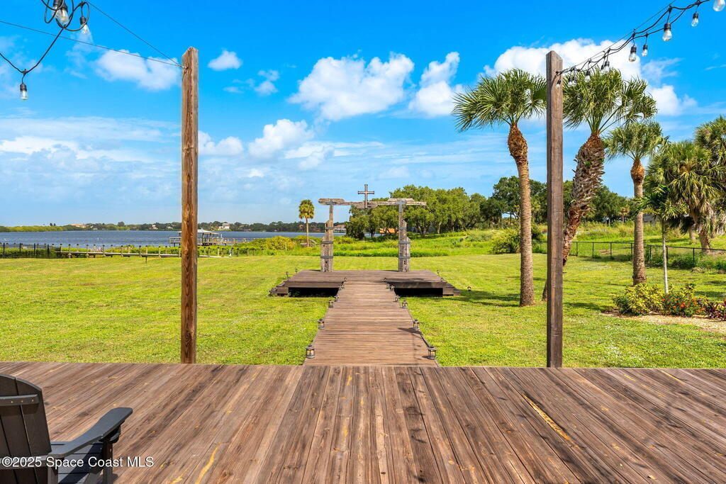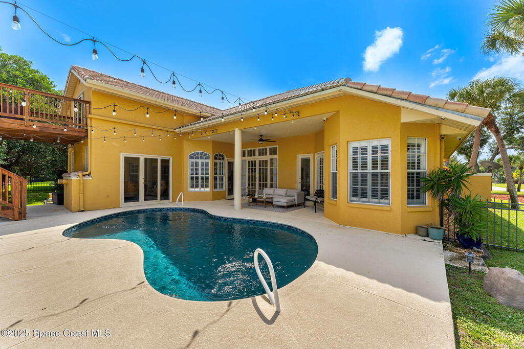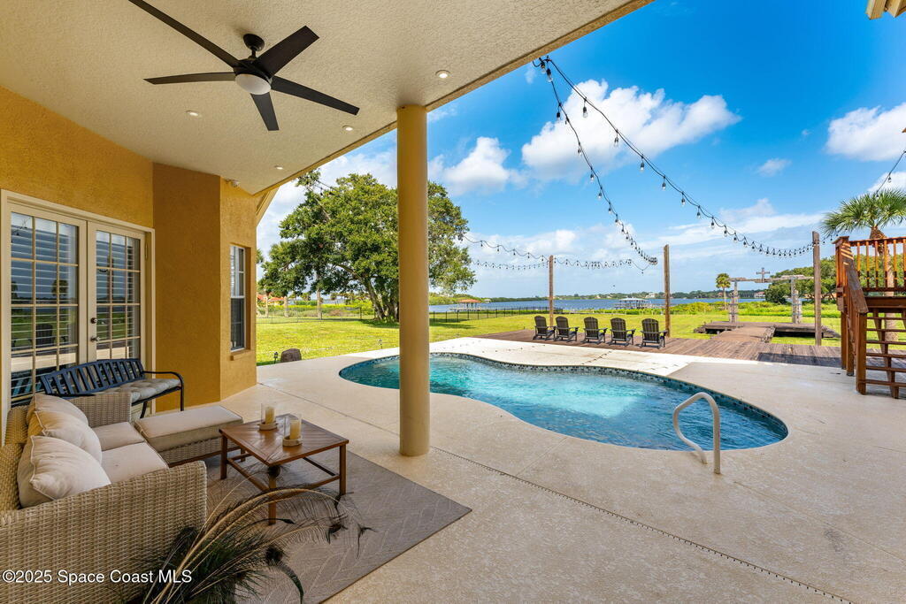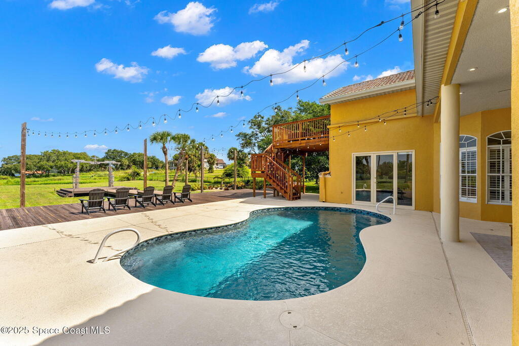 Luxury living awaits you in this one-of-a-kind Merritt Island Estate. Boasting over 2 acres of property, this pool home is situated on Honeymoon Lake, providing breathtaking views and direct access to the Indian River. The owner's suite is complete with double walk-in closets, separate tub & shower, and dual vanities. Tall white cabinets, granite countertops & backsplash, and stainless steel appliances give the kitchen a bright and sleek look while the breakfast bar, kitchen island, and ample countertops make it perfect for hosting. Two separate upstairs areas provide flexibility for your lifestyle, allowing you to use them as extra bedrooms, gyms, or bonus rooms. Whether from the balcony or from the solar-heated pool, the backyard's northern exposure allows for stunning views of sunrise and sunset. With 2018 barrel tile roof, two new HVACs, and a boat lift already in place, this home is truly turnkey, all you need to do is pull up in the boat!
