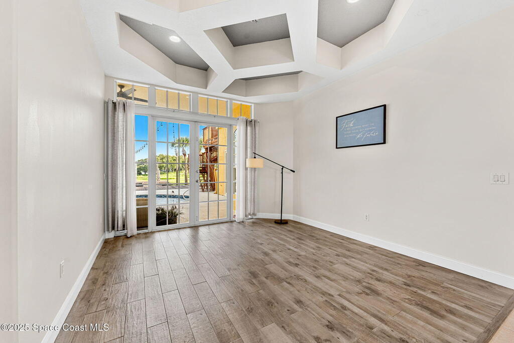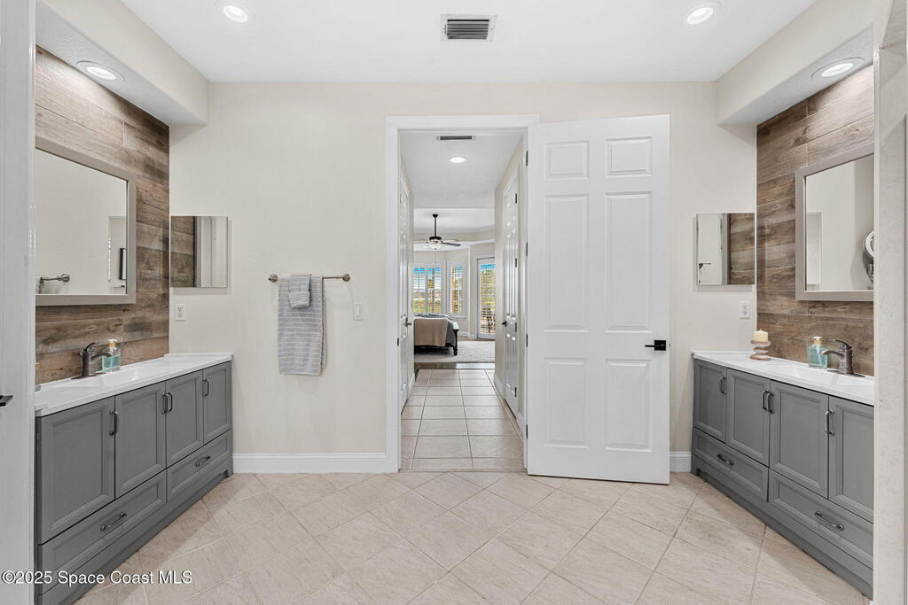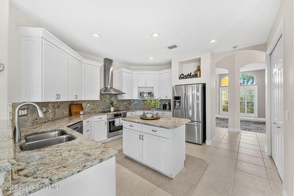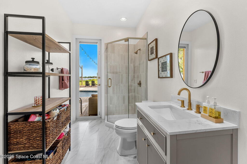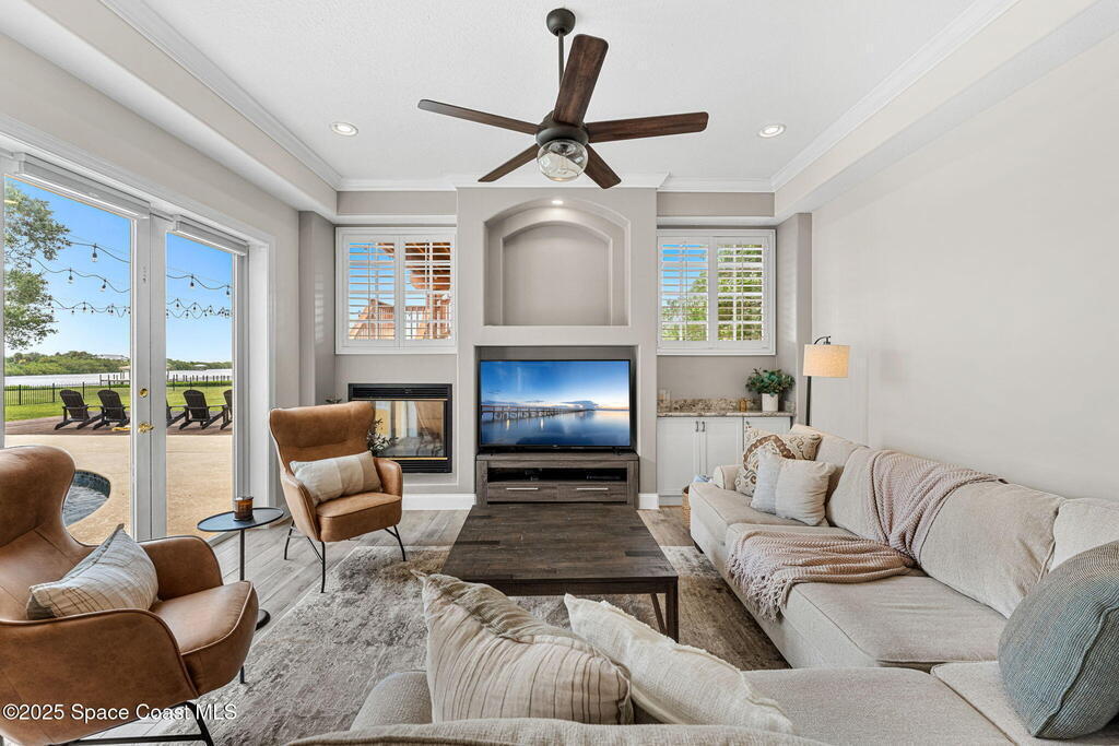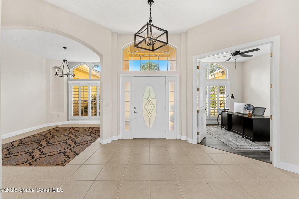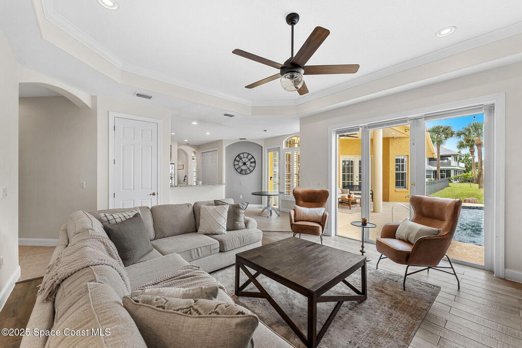 Luxury living awaits you in this one-of-a-kind Merritt Island Estate. Boasting over 2 acres of property, this pool home is situated on Honeymoon Lake, providing breathtaking views and direct access to the Indian River. The owner's suite is complete with double walk-in closets, separate tub & shower, and dual vanities. Tall white cabinets, granite countertops & backsplash, and stainless steel appliances give the kitchen a bright and sleek look while the breakfast bar, kitchen island, and ample countertops make it perfect for hosting. Two separate upstairs areas provide flexibility for your lifestyle, allowing you to use them as extra bedrooms, gyms, or bonus rooms. Whether from the balcony or from the solar-heated pool, the backyard's northern exposure allows for stunning views of sunrise and sunset. With 2018 barrel tile roof, two new HVACs, and a boat lift already in place, this home is truly turnkey, all you need to do is pull up in the boat!