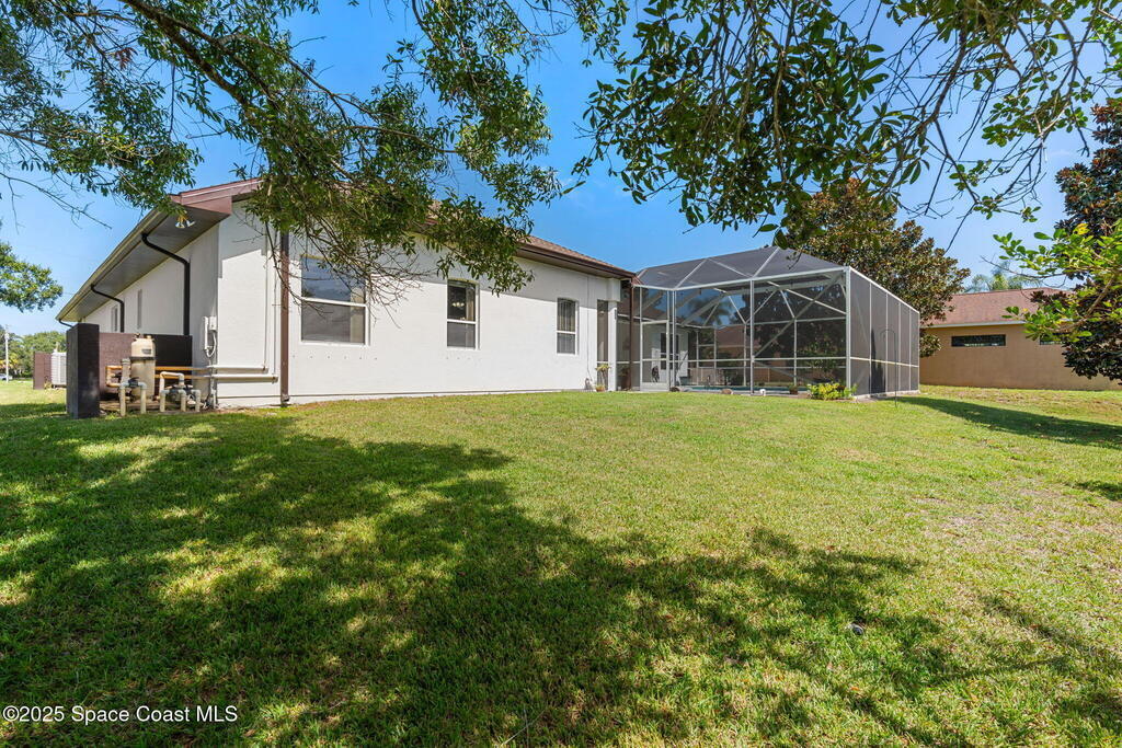 Beautiful One-Owner Pool Home in the Highly Desirable Windover Farms Community!This well-maintained concrete block home offers nearly 2,500 sq. ft. of comfortable living space on a spacious 0.51-acre lot. The open, split floor plan features 4 bedrooms and 3 full baths, ideal for modern living and entertaining.Step outside to your private screened pool and lanai overlooking a serene preserve and backyard, pre-plumbed for a summer kitchen, perfect for outdoor gatherings and Florida living at its best.Enjoy peace of mind with a new roof (2024), A/C (2017), and gas water heater (2022). Hurricane shutters are also included for added protection.Pride of ownership shines throughout this single-owner home, located in the sought-after neighborhood of Windover Farms, known for its large lots, scenic surroundings and convenient access to top schools, shopping, dining, and major roadways.