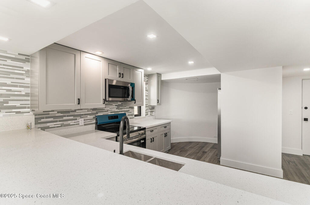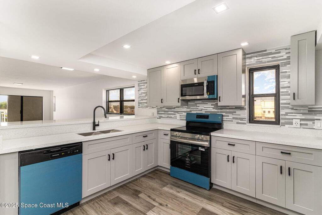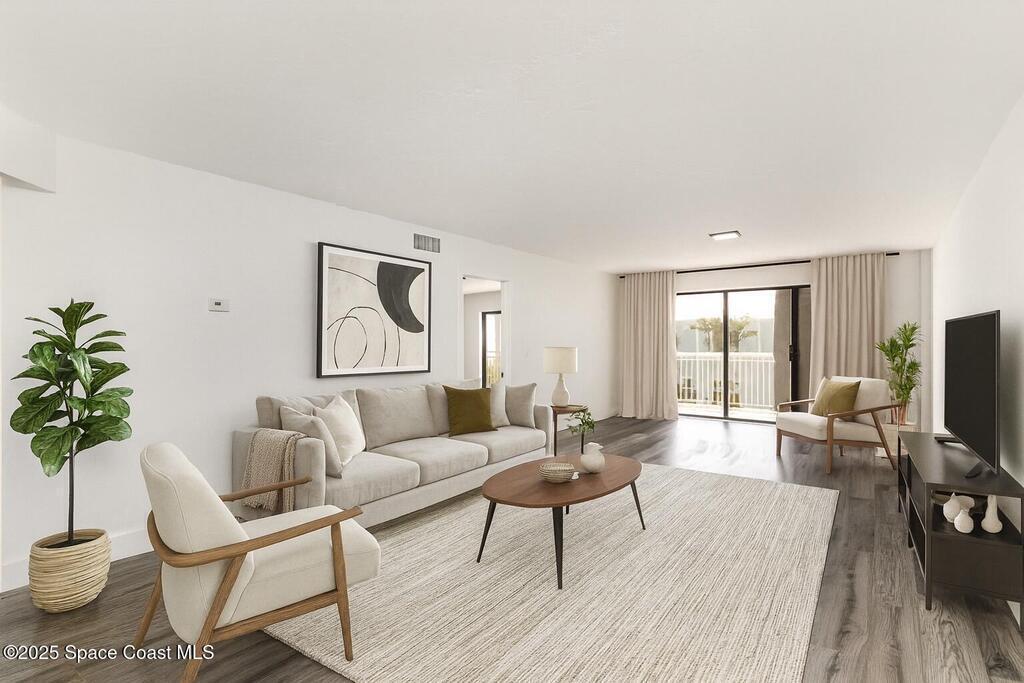 Welcome to your coastal retreat, this beautifully remodeled end-unit condo offers the perfect blend of modern style and beachfront relaxation. Bright and spacious, the open-concept layout flows effortlessly from the brand-new kitchen, featuring solid-surface countertops, new appliances, and a coastal-chic backsplash, to the open living area and oversized balcony with stunning ocean views.Wake up to sea breezes and enjoy your morning coffee at the breakfast bar or outside with the sound of the waves. Both bedrooms are generously sized with more than enough storage, and the updated bathrooms feature sleek, contemporary finishes. An in-unit washer and dryer add everyday convenience.Located just steps from everything downtown Cocoa Beach has to offer, local dining, shops, live music, the iconic pier, and, of course, miles of sandy shoreline, you're perfectly positioned to enjoy the best of beachside living.