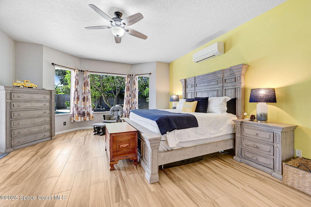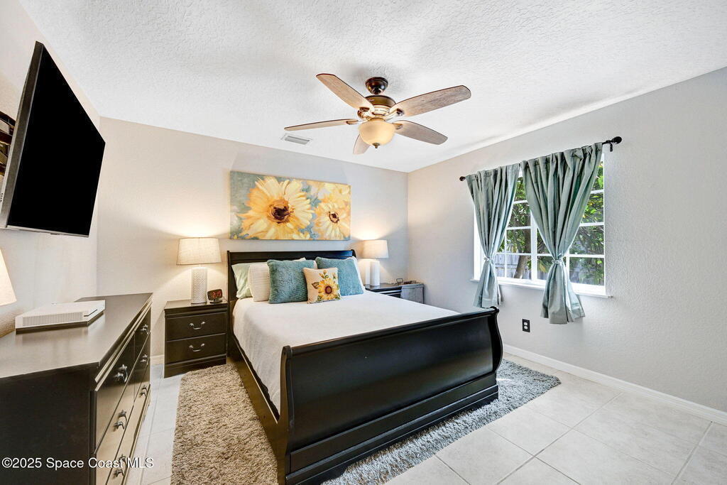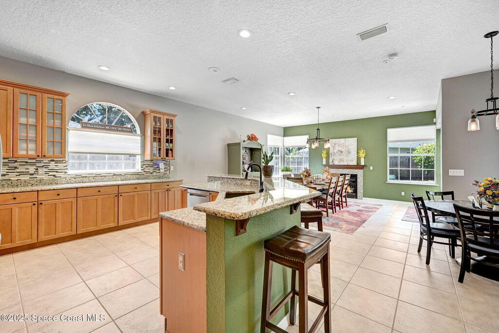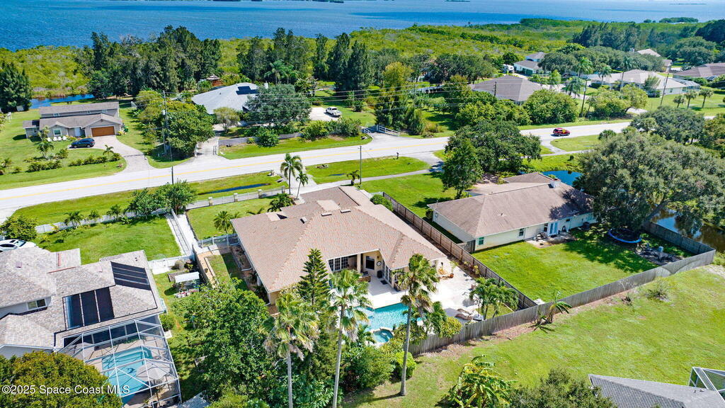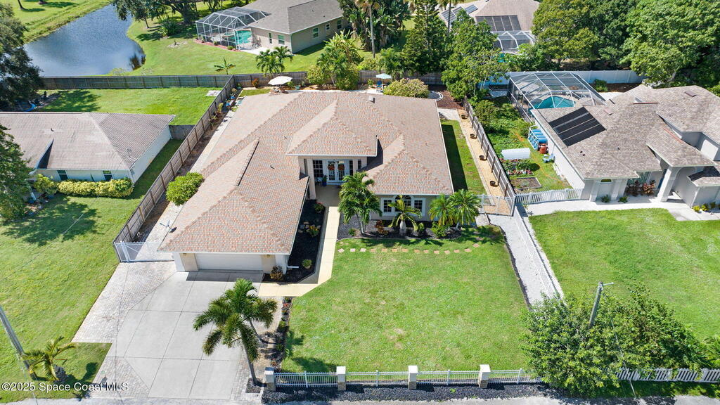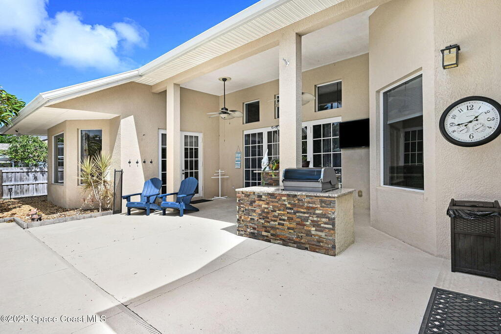 Gorgeous Merritt Island Pool Home! NO HOA! Step inside to soaring ceilings and abundant natural light. The open layout flows from the bright living area to elegant French doors leading to a stunning pool deck. The kitchen boasts granite countertops, bar seating, and ample cabinet space. A spacious family room is perfect for entertaining. The backyard oasis features a sparkling salt water pool and spa with LED lighting, waterfall and jets, a gas fire pit, and fenced yard. Enjoy peace of mind with hurricane-rated windows and garage door, plus a new roof and gutters (2019). AC and water heater, 2022. Gated paver space for your RV or boat. Prime Merritt Island location with easy access to shopping, dining, and entertainment. Nearby water access for boating and fishing. Easy turnaround driveway. Your home search ends here!