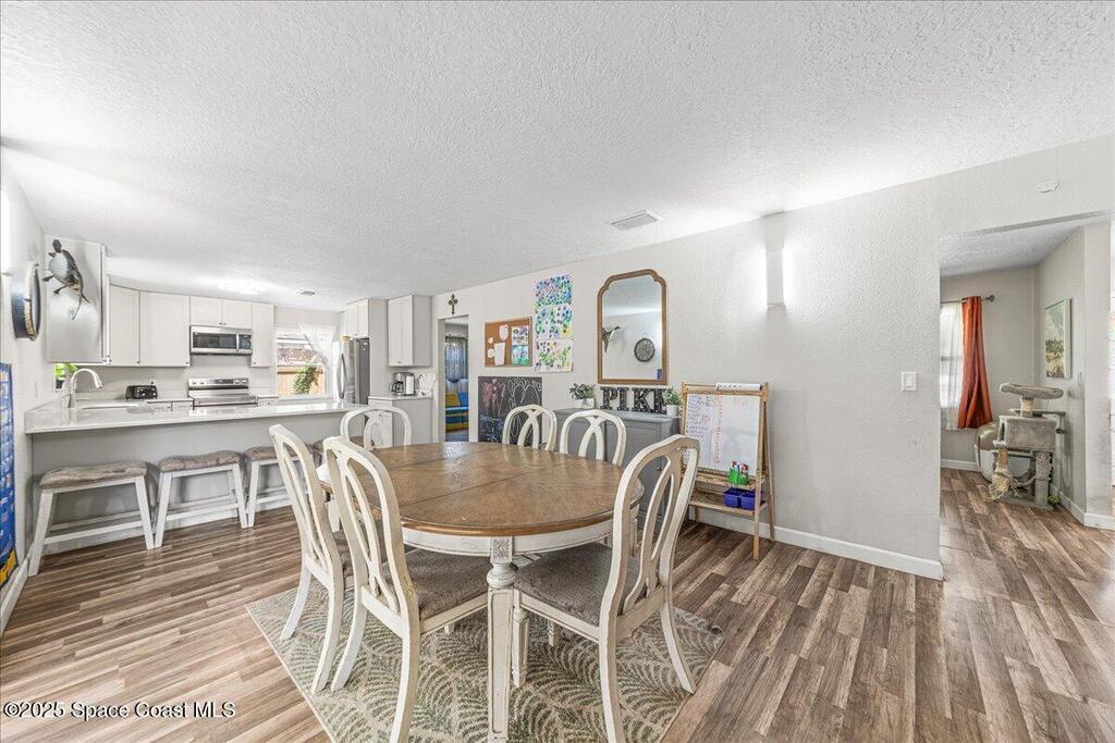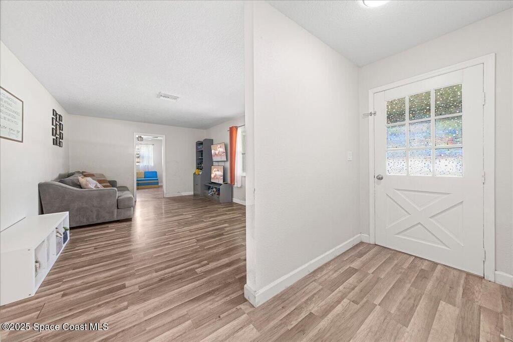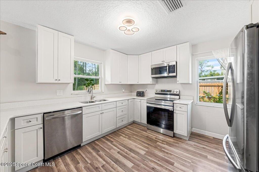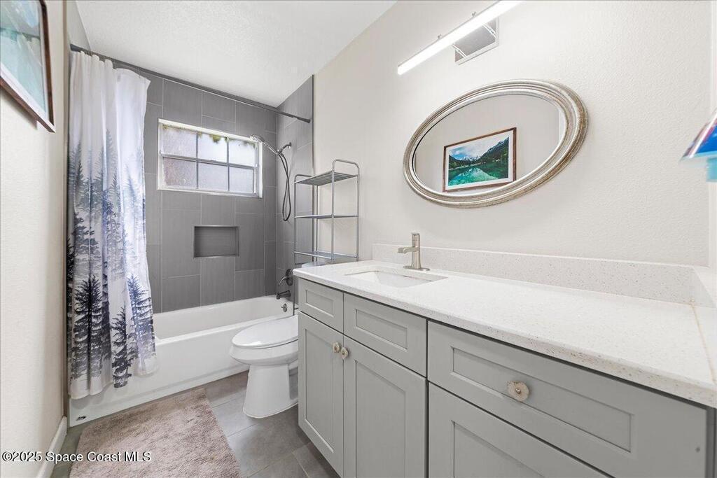 This beautifully updated four-bedroom, two-bath home offers the perfect blend of mid-century charm and modern comfort. Step inside to find an open, airy layout filled with natural light and stylish updates throughout. The heart of the home is the remodeled kitchen--featuring sleek two tone cabinetry, quartz countertops, a coffee bar, and an oversized island that opens to the family room, creating a true gathering space for family and friends. Both bathrooms have been tastefully renovated with thoughtful touches like built-in shower niches and modern light fixtures. Enjoy peace of mind with major upgrades already done for you: a brand-new roof, new AC system, hurricane-rated low-E windows, and a newer electrical panel. Every detail has been refreshed, from six-panel doors and baseboards to smooth wall textures and LED recessed lighting that brightens every corner. Nestled in a desirable neighborhood and complete with a two-car garage. Excellent location in the heart of Titusville.