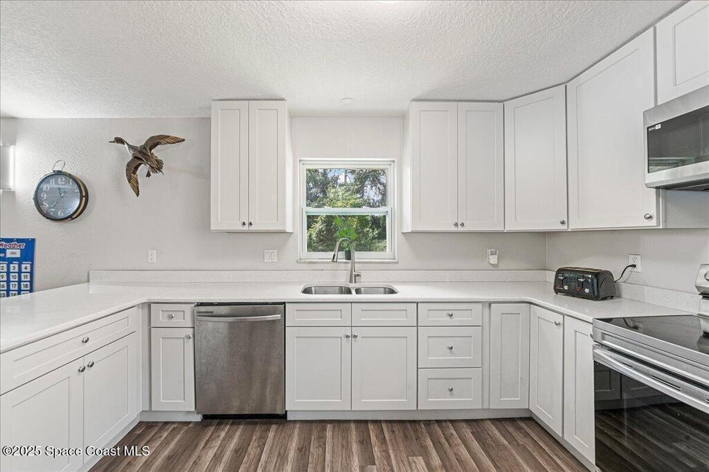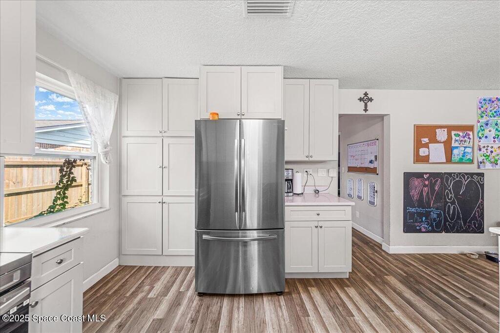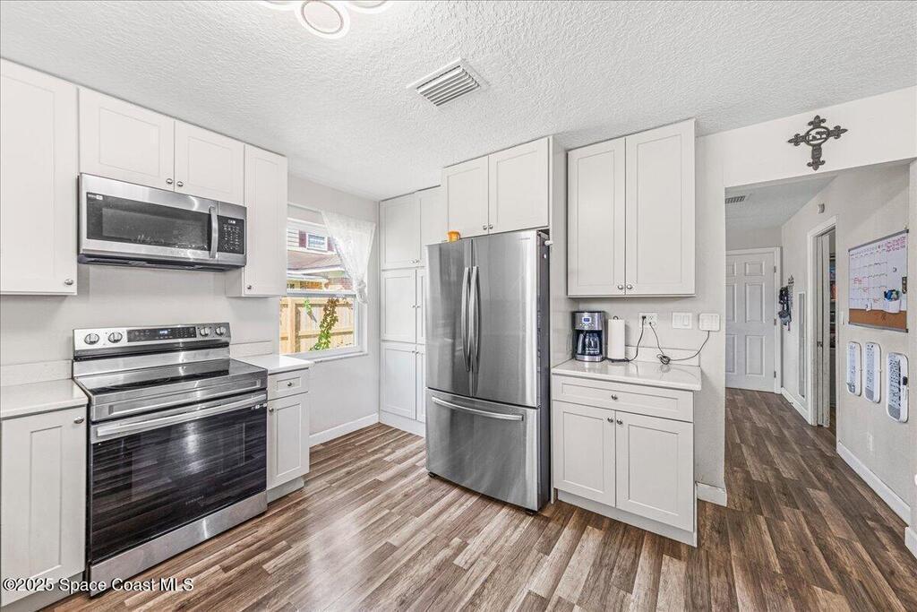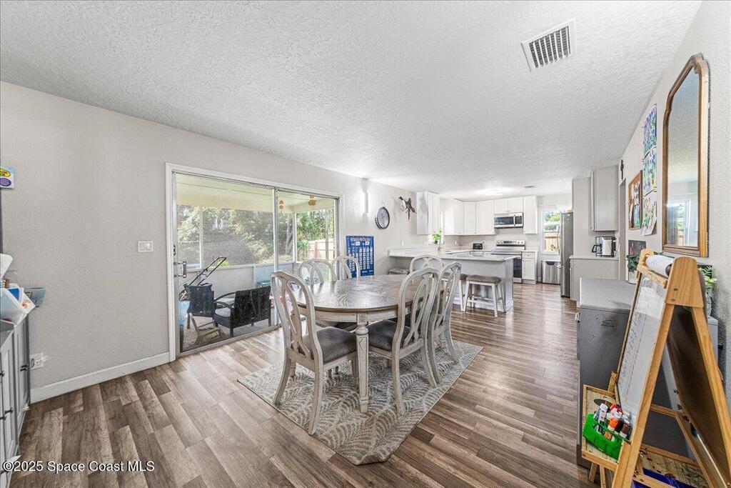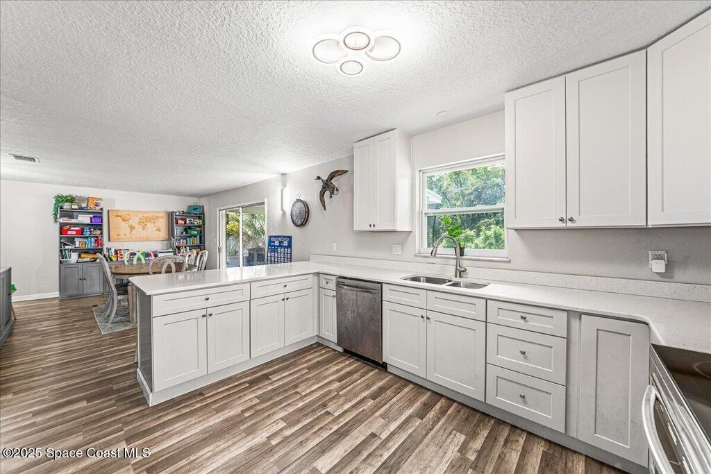 This beautifully updated four-bedroom, two-bath home offers the perfect blend of mid-century charm and modern comfort. Step inside to find an open, airy layout filled with natural light and stylish updates throughout. The heart of the home is the remodeled kitchen--featuring sleek two tone cabinetry, quartz countertops, a coffee bar, and an oversized island that opens to the family room, creating a true gathering space for family and friends. Both bathrooms have been tastefully renovated with thoughtful touches like built-in shower niches and modern light fixtures. Enjoy peace of mind with major upgrades already done for you: a brand-new roof, new AC system, hurricane-rated low-E windows, and a newer electrical panel. Every detail has been refreshed, from six-panel doors and baseboards to smooth wall textures and LED recessed lighting that brightens every corner. Nestled in a desirable neighborhood and complete with a two-car garage. Excellent location in the heart of Titusville.